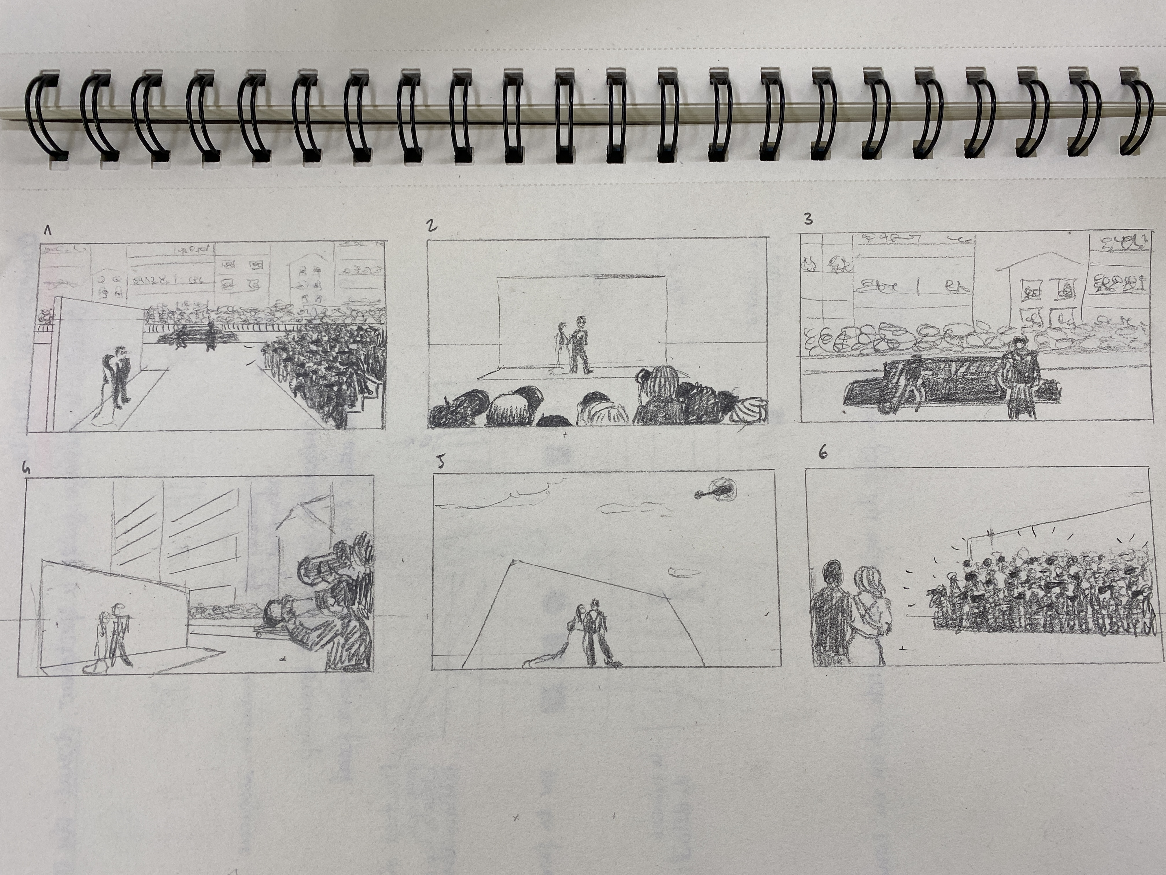 Bonjour Marionblush, tes propositions sont super, tu prends des risques dans tes prises de vue, différents angles c'est top.Attention cependant au placement de tes éléments et à la composition de ton image. Évite à tout prix de placer tes persos dans les coins de ton cadre ou collés au bord. Place tes personnages pricipaux sur des points chauds, ça aura bien plus d'impact ;)