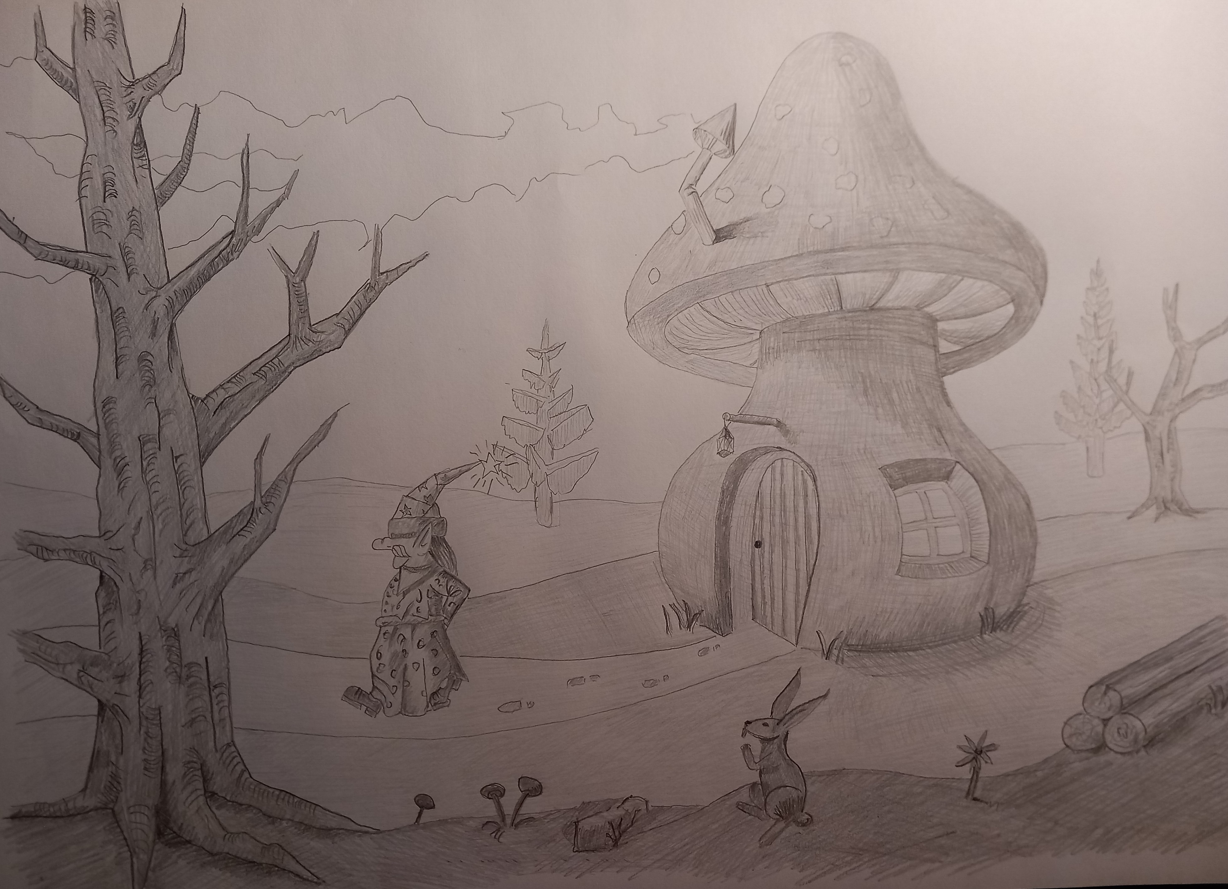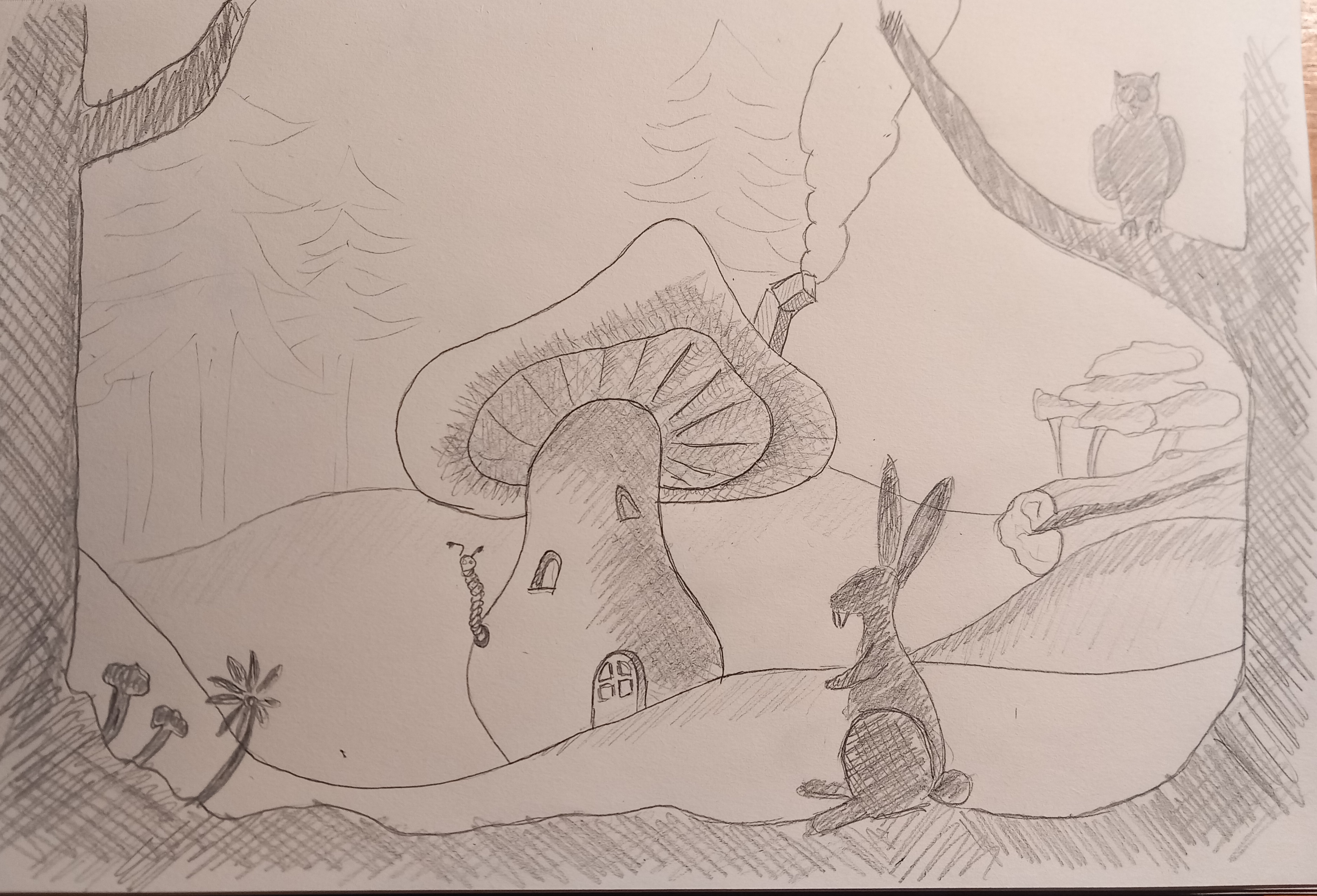 Bonsoir Yves61, désolé pour l'attente... Vraiment super ce dessin! En ajoutant quelques éléments supplémentaires dans ta composition et dans les différents plans, je pense qu'il y a moyen d'élever ton illustration encore un cran au dessus! Dans des décors de nature comme ça, un peu magique, tu peux y aller sur la végétation, les herbes folles, les roches, etc... Le ver qui sort de la maison manque un peu de présence, tu peux lui donner un peu plus de dynamisme en lui donnant une position bien courbe et ondulée. Attention à ton arrière plan qui manque de présence, il est fort estompé... Il y a aussi un petit souci de noeud graphique avec la branche sur la droite de ton dessin, essaie de positionner les éléments pour qu'ils ne se mangent pas les unes les autres entre les différents plan. En tout cas, c'est du bon boulot!