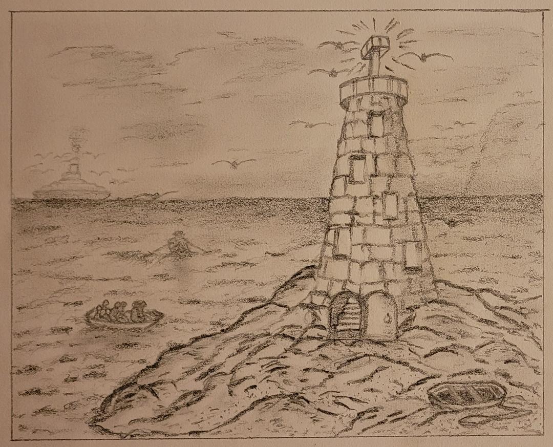 Bonsoir Mariouchka, il est vraiment cool ce dessin! Au niveau de la composition, en décalant juste le phare sur la droite et en éloignant la seconde barque, je trouve que ça renforce l'effet global! Les éléments d'arrière plan peuvent être plus assombri également... Beau boulot à toi!