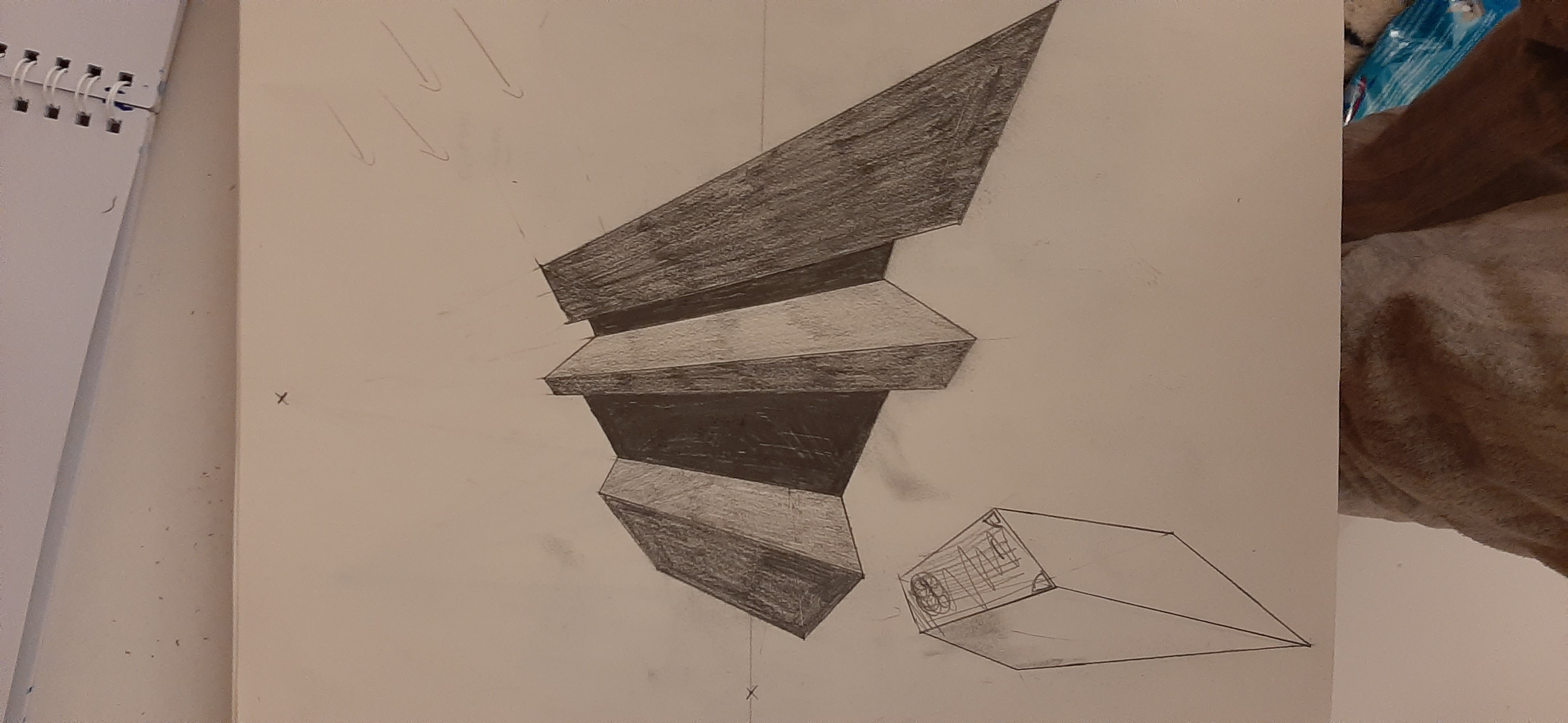 Ihre Übungen sind super cool, auch wenn ich einen Fehler in diesem Fall feststelle: Der kleine Würfel, der auf den großen Würfel platziert ist, verstehe ich nicht, wo und wie er positioniert ist. Angesichts der Schatten, die Sie platziert haben, ist es darauf positioniert, aber ich sehe seine Basis nicht so, als ob es teilweise im Würfel direkt unten wäre.