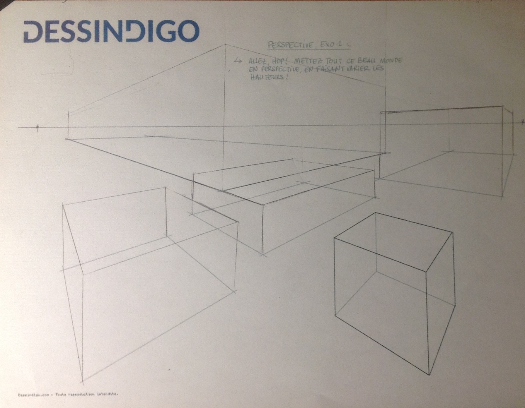 Je crois que j'avais tout faux... de un, effectivement le bloc d'en dessous a été fait avec un second point de fuite et celui du dessus avec un seul ce qui ne correspond pas à l'exercice demandé. Je l'ai quand même refait suite à vos commentaires ce que j'apprécie énormément, merci. N'hésitez surtout pas à noter mes exercices c'est très formateur.