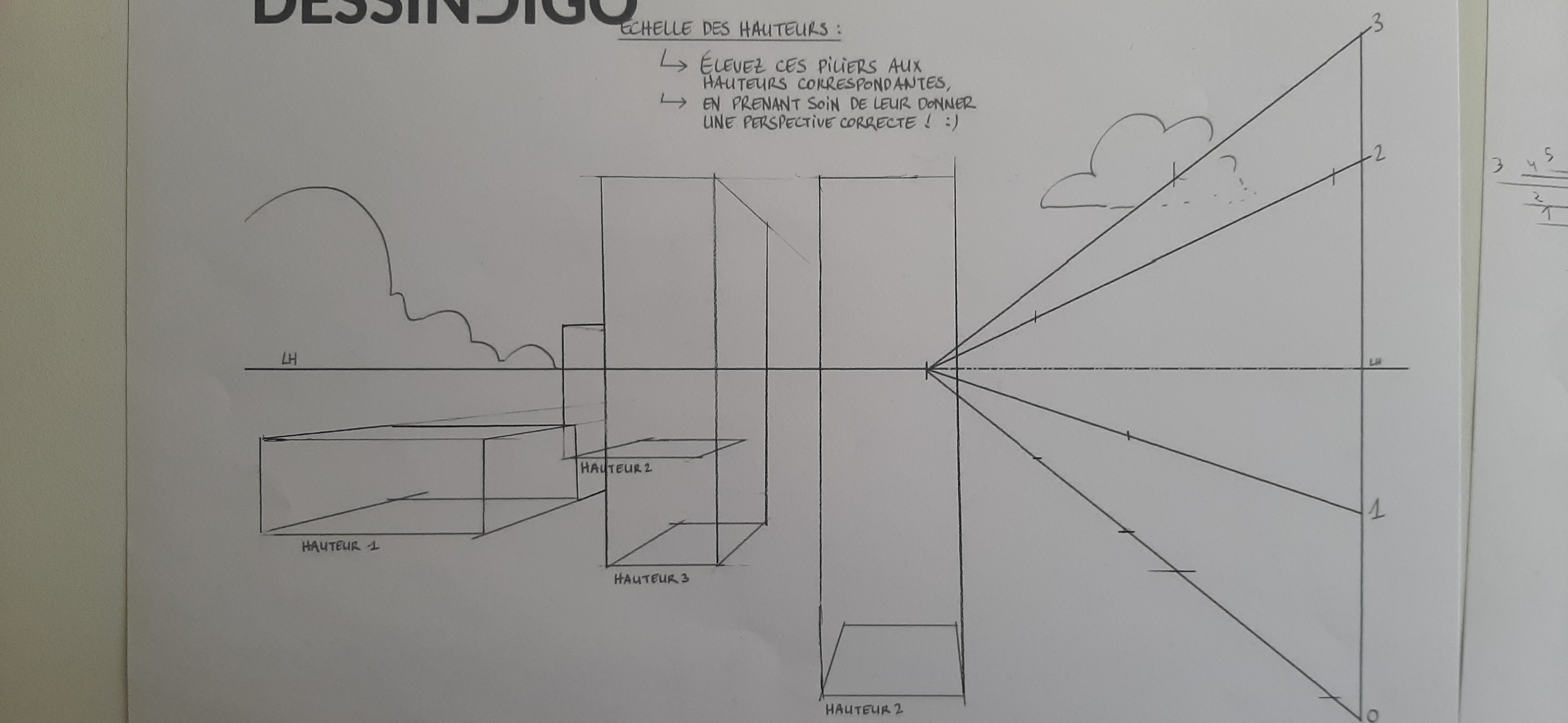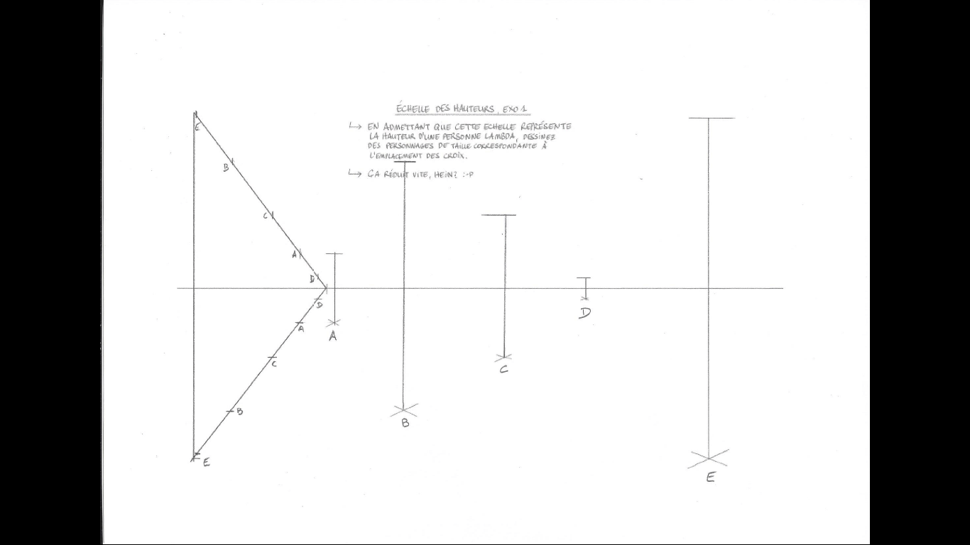 Dis-moi si j'ai compris. Je trouve ces exercice formateurs car j'ai de la difficulté à me repérer dans l'espace. et l'échelle des hauteurs est très intéressant. Merci pour les conseils.