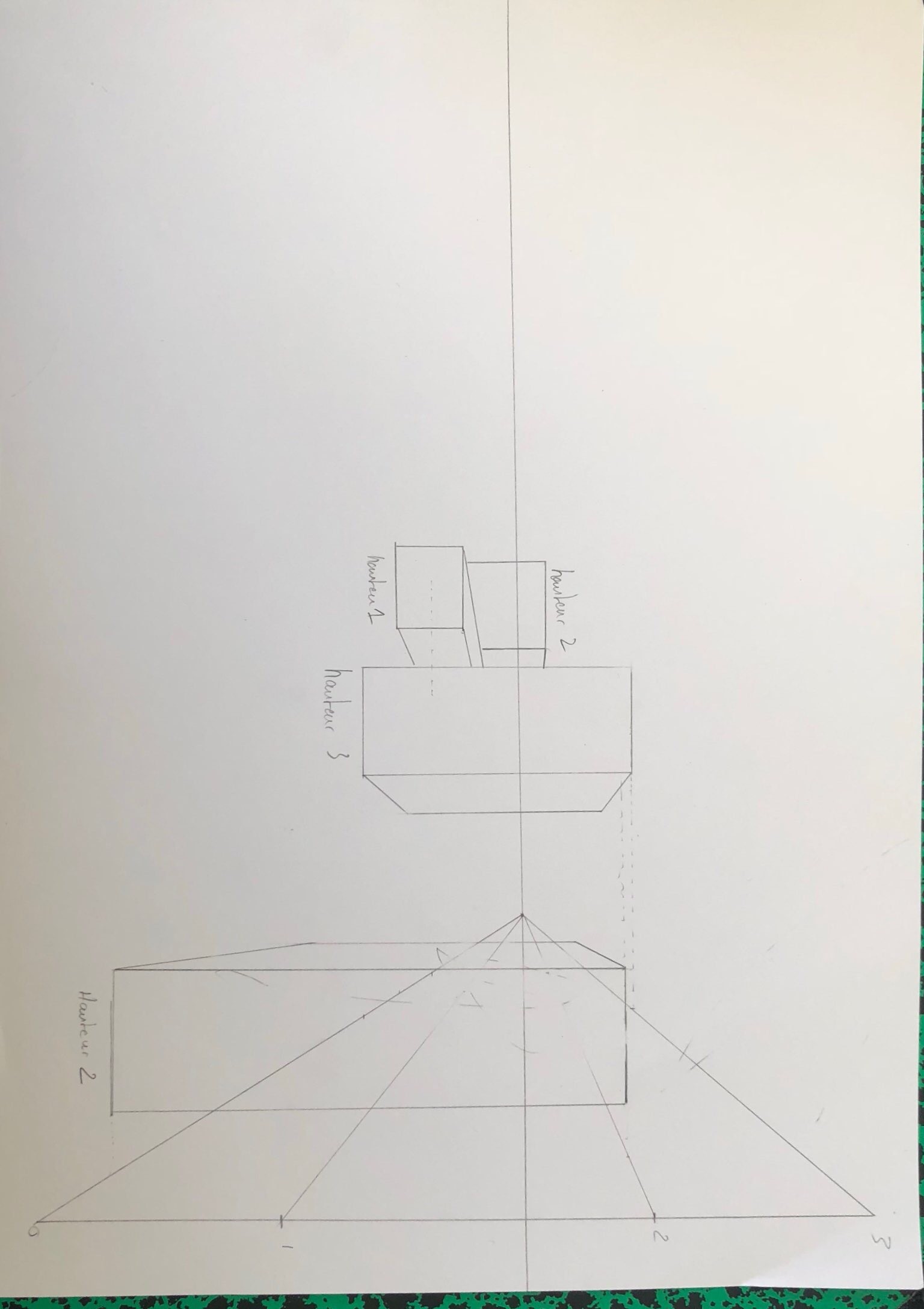 Je poste mes exos pour mes exercice 1 et 2 par contre le 3 eme avec les deux point de fuite j’ai beau essayer je n’arrive pas. Avec une seul hauteur Sava mais dès que je veut mettre dès bâtiment avec des formes et des hauteurs différentes je bloque. Du coup je vais regarder la correction.