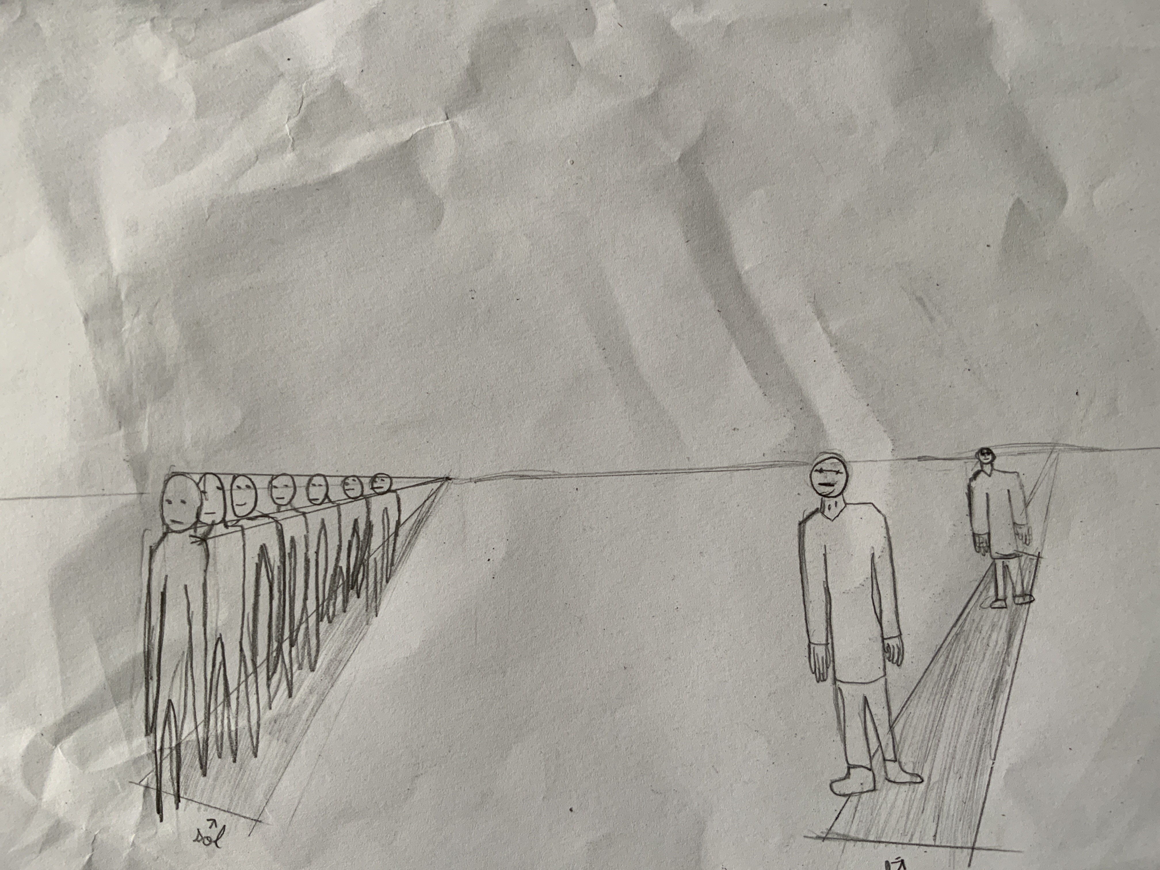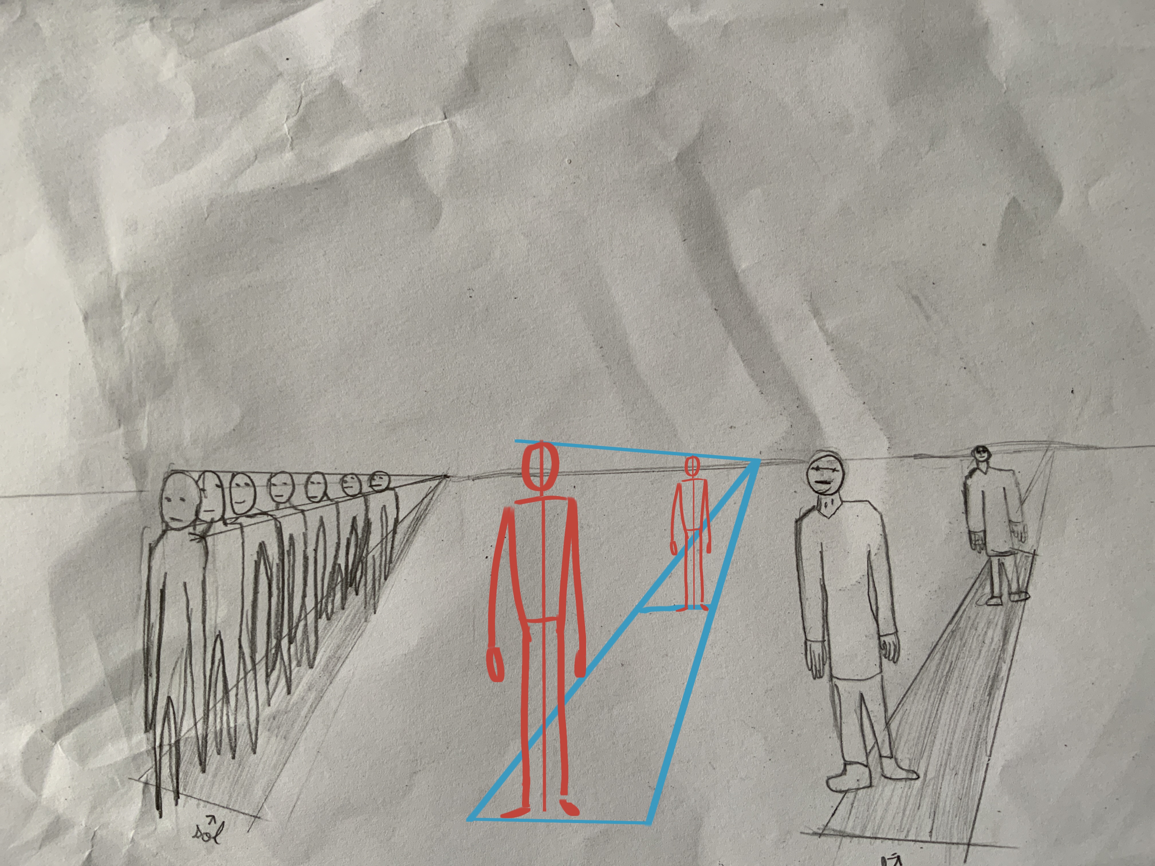 Tu as totalement compris l'idee mais ton dessin manque peu être un peu de minutie. Essaye de bien dessiner tes personnages verticaux et d'avoir une belle ligne d'horizon droite, cela te permettra d'etre plus précis et donc plus juste, surtout quand cela va commencer à se complexifier 😀