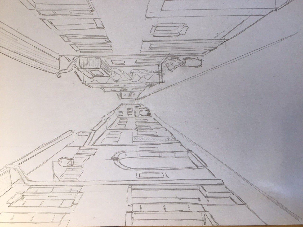 Hallo, hier sind meine Übungen zur Perspektive. Ich habe auch eine Landschaft, tatsächlich eine Straße, mit einem Flugpunkt gestellt. Die Hintergrundhäuser waren nicht parallel zur Straße, ich habe ein wenig improvisiert. Vielen Dank im Voraus für Ihre Kommentare. Guten Tag, Sandra