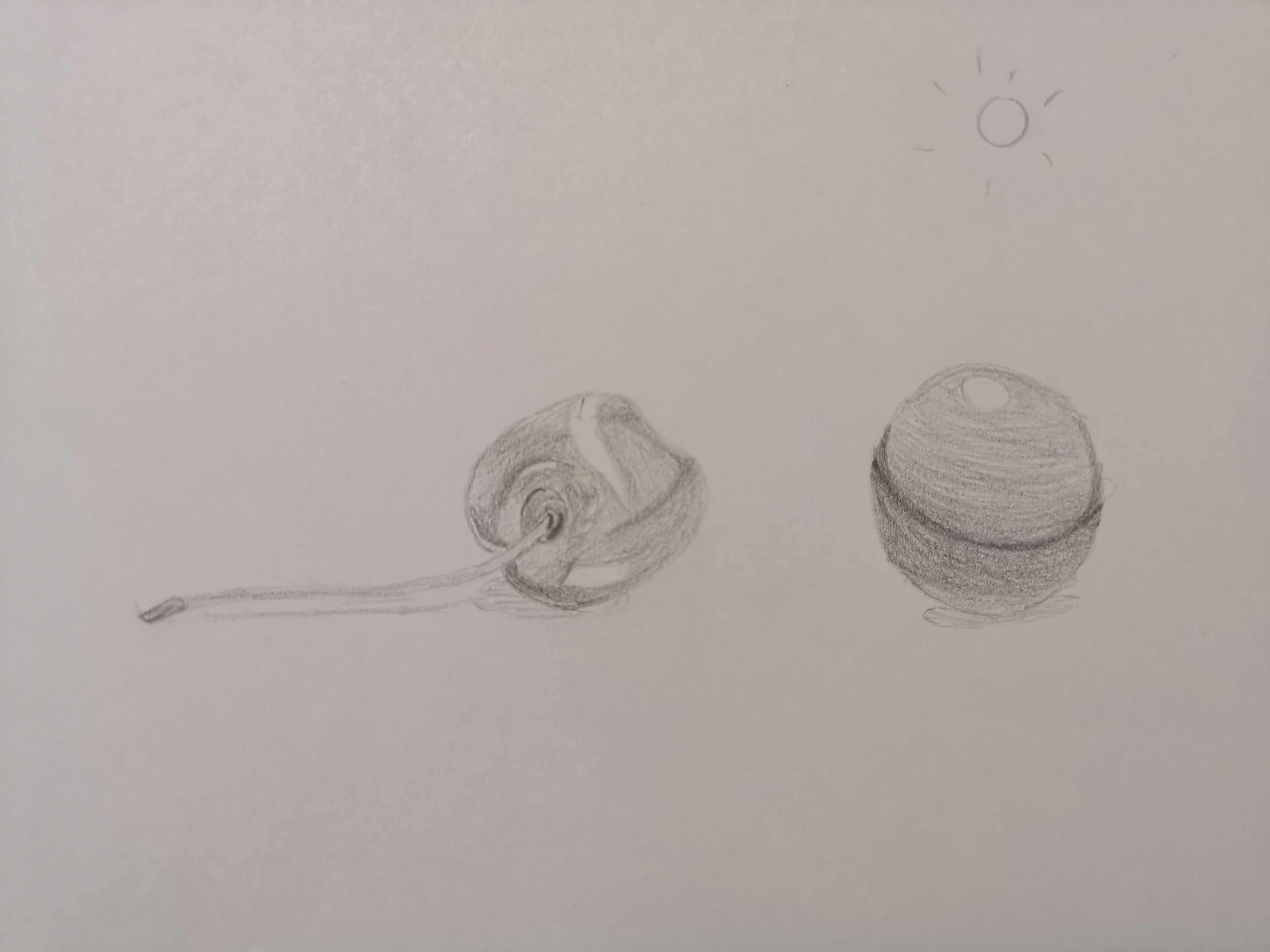 Je t'encourage à choisir un autre objet à dessiner pour pouvoir vraiment travailler l'exercice des ombres et lumières :)