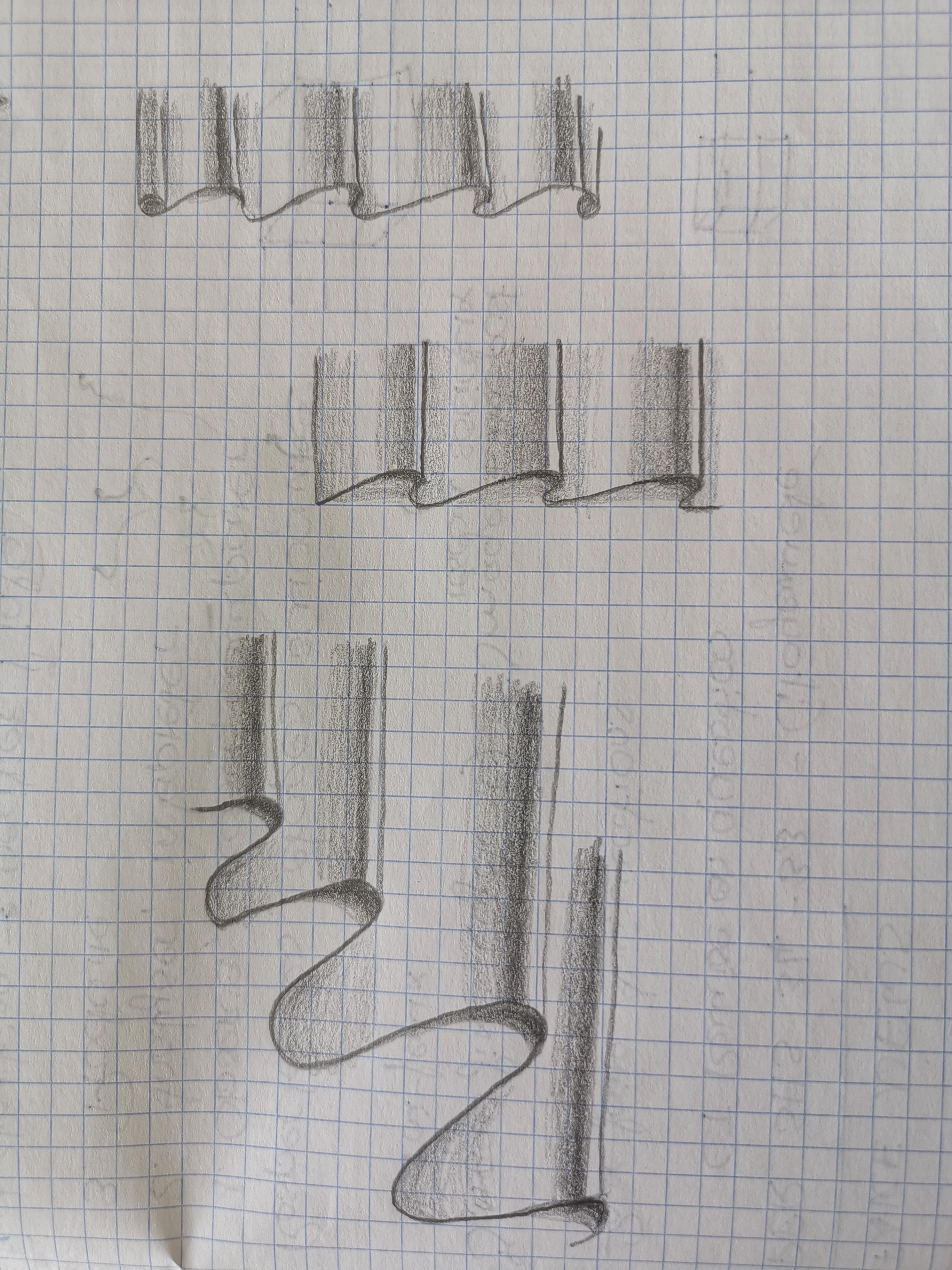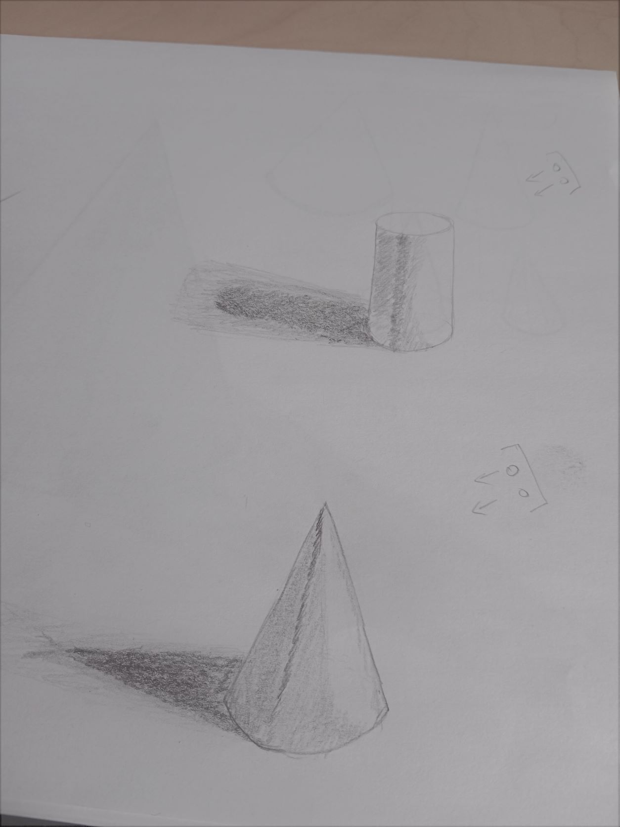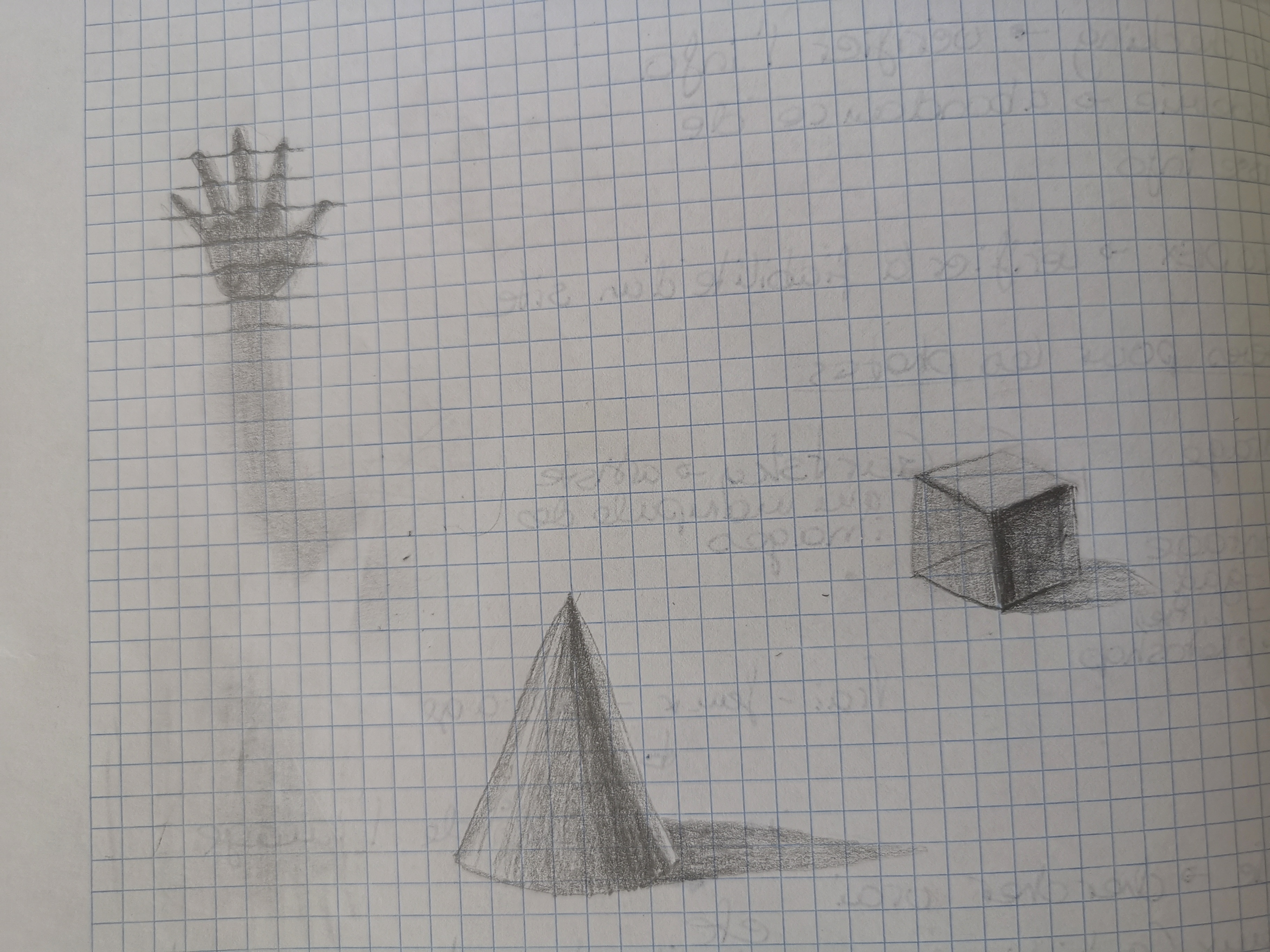 Bonjour Malynka, Bravo c'est déjà mieux :) Ton cône et tes ondulations sont bien, attention à ton cube, avec le tracé en transparence ça casse un peu le volume :)