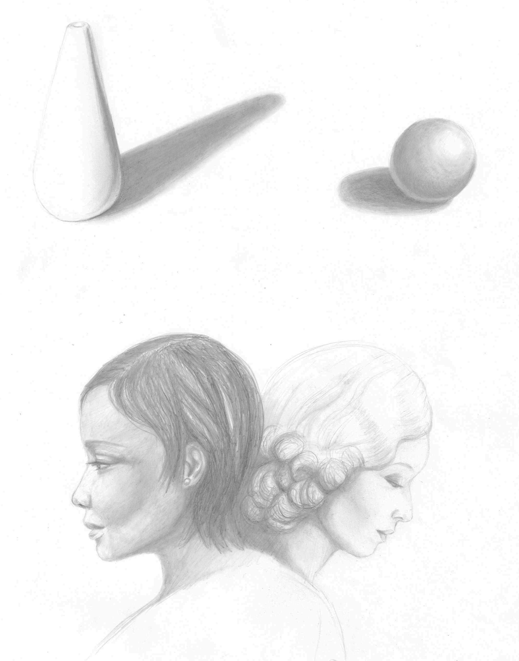 Hallo Marie-Avril; Sie haben die Übung ziemlich gut verstanden und Ihre Porträts sind wirklich sehr schön! Seien Sie jedoch vorsichtig mit Ihren Schatten auf dem Boden, die vom Objekt verblassen sollten. Ihr Schatten unter dem Ball ist auch etwas verzerrt. Die Schatten und Lichter Ihrer Porträts sind sehr leicht, wir verstehen nicht, woher das Licht kommt. Denken Sie daran, die Position Ihrer Lichtquelle zu definieren (es muss auch einen Unterschied am Haar geben)