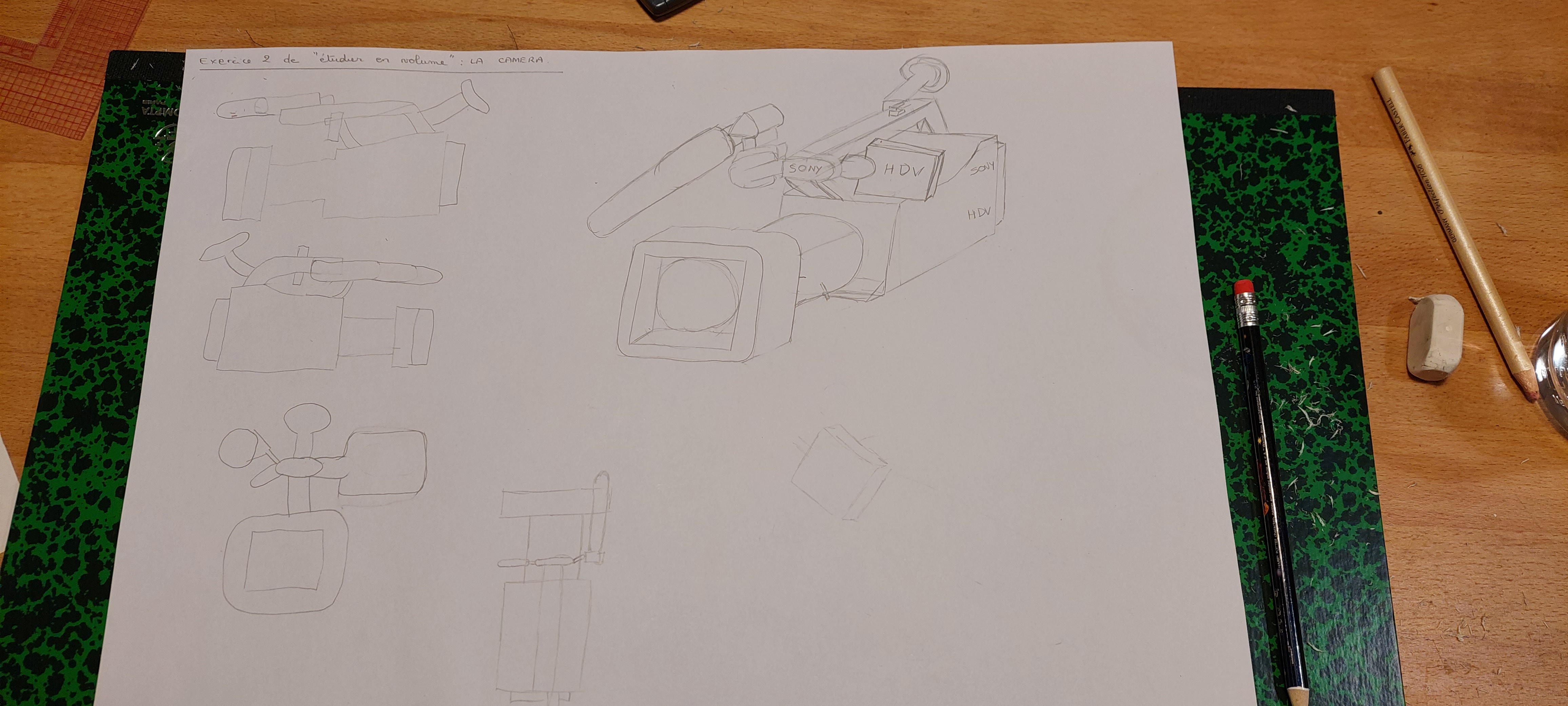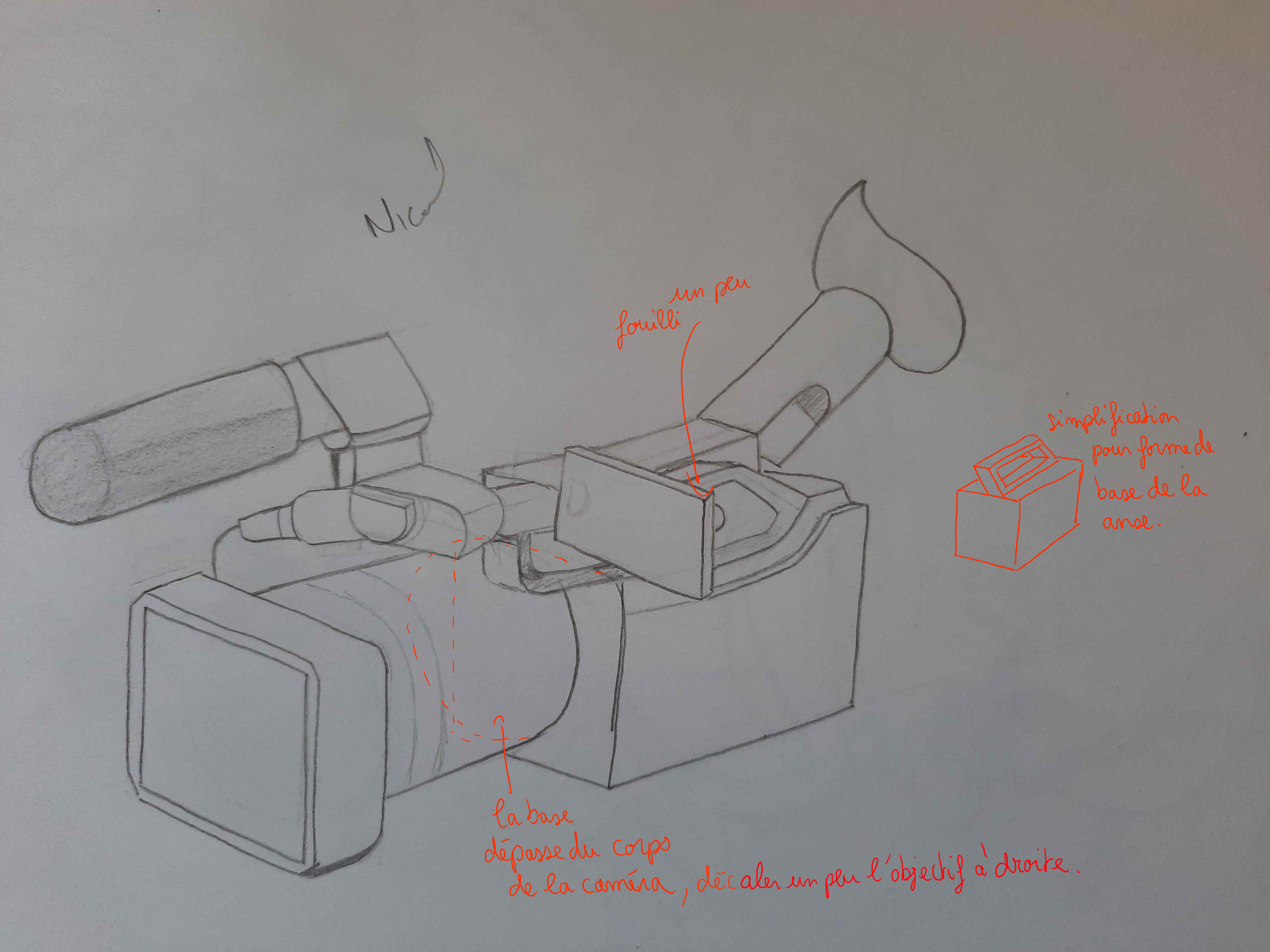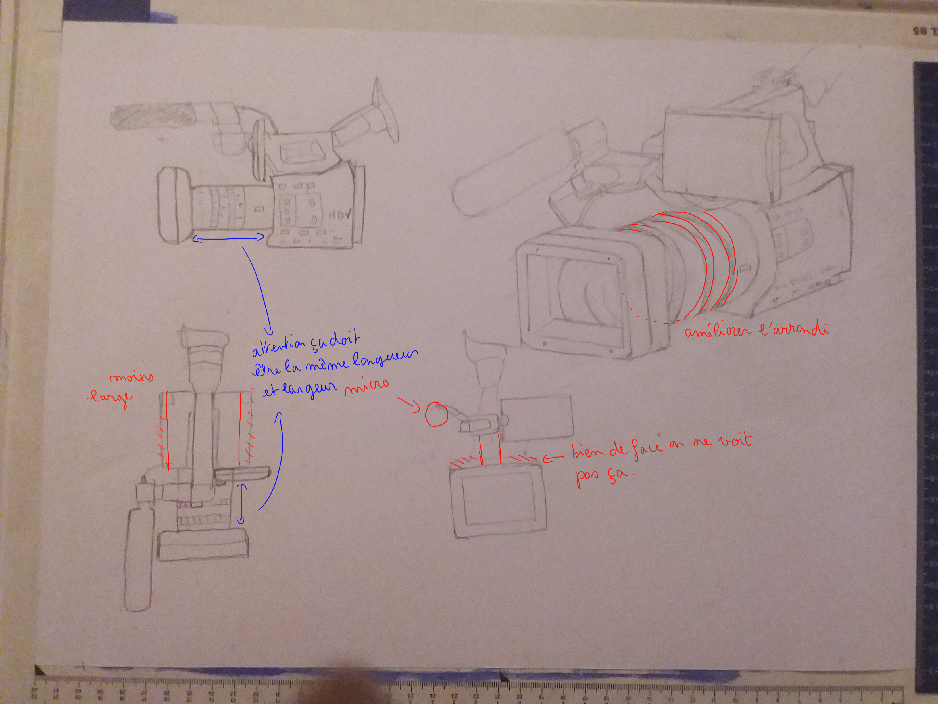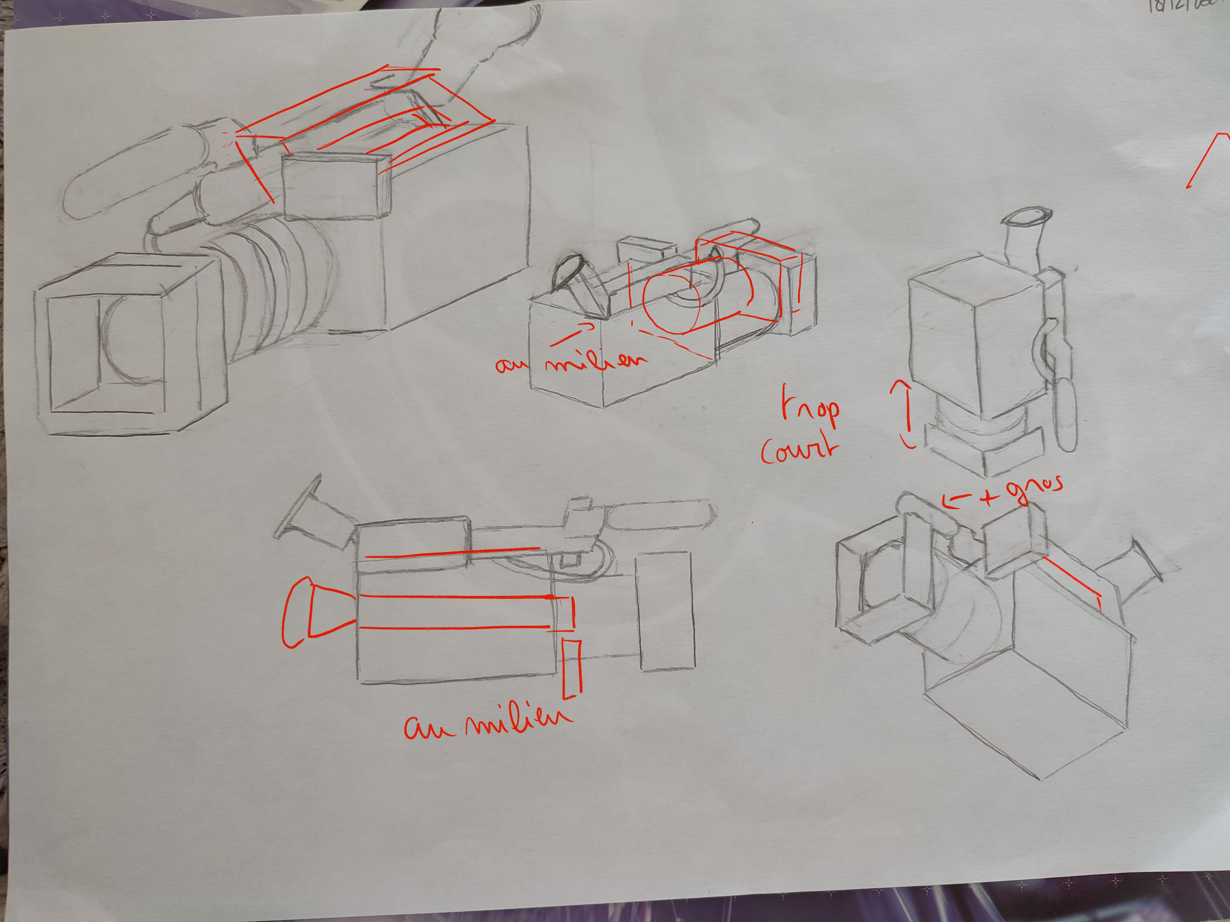 Voici mon travail sur la caméra, image 1/2, j'ai dessiné en grand donc deux images !