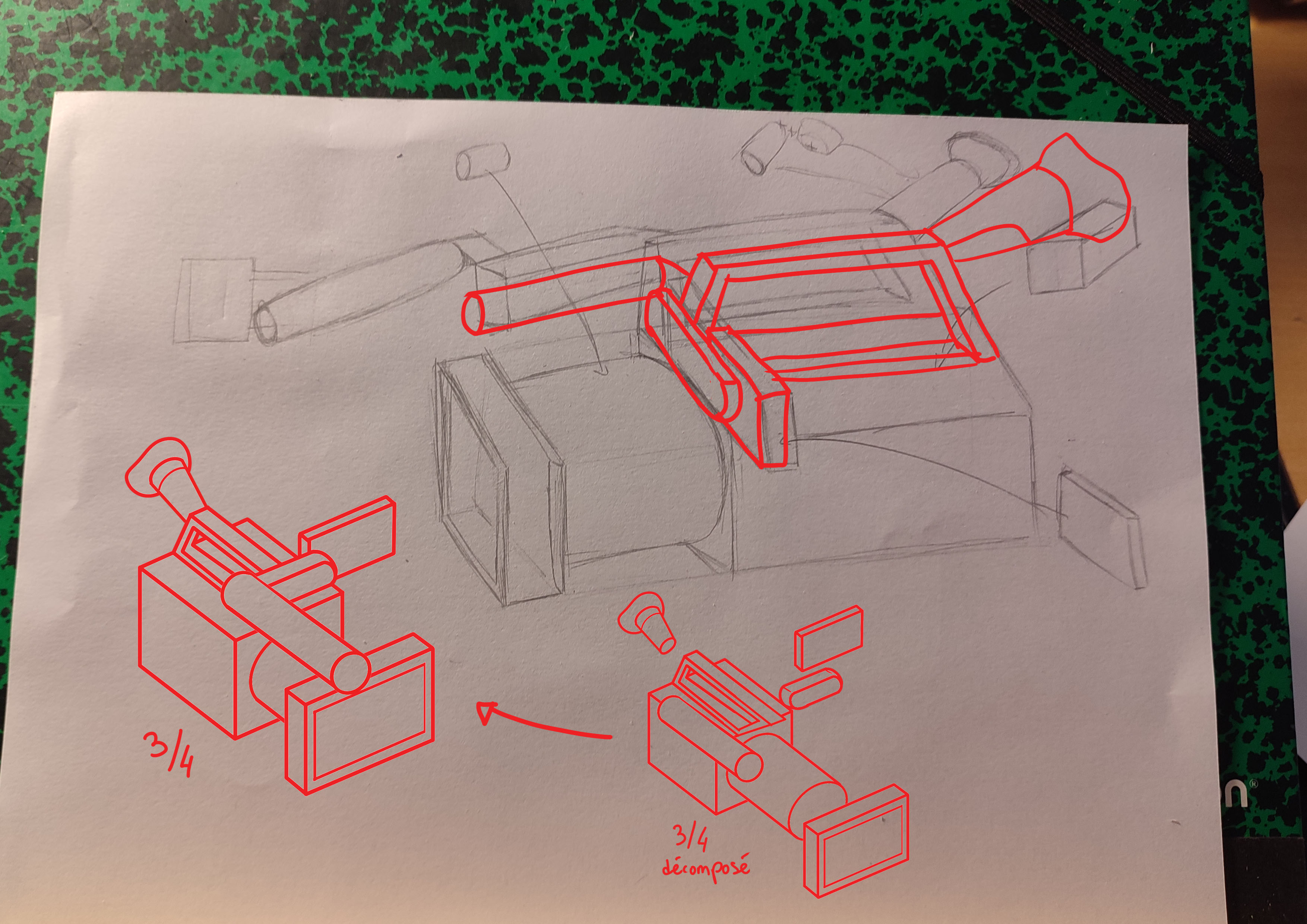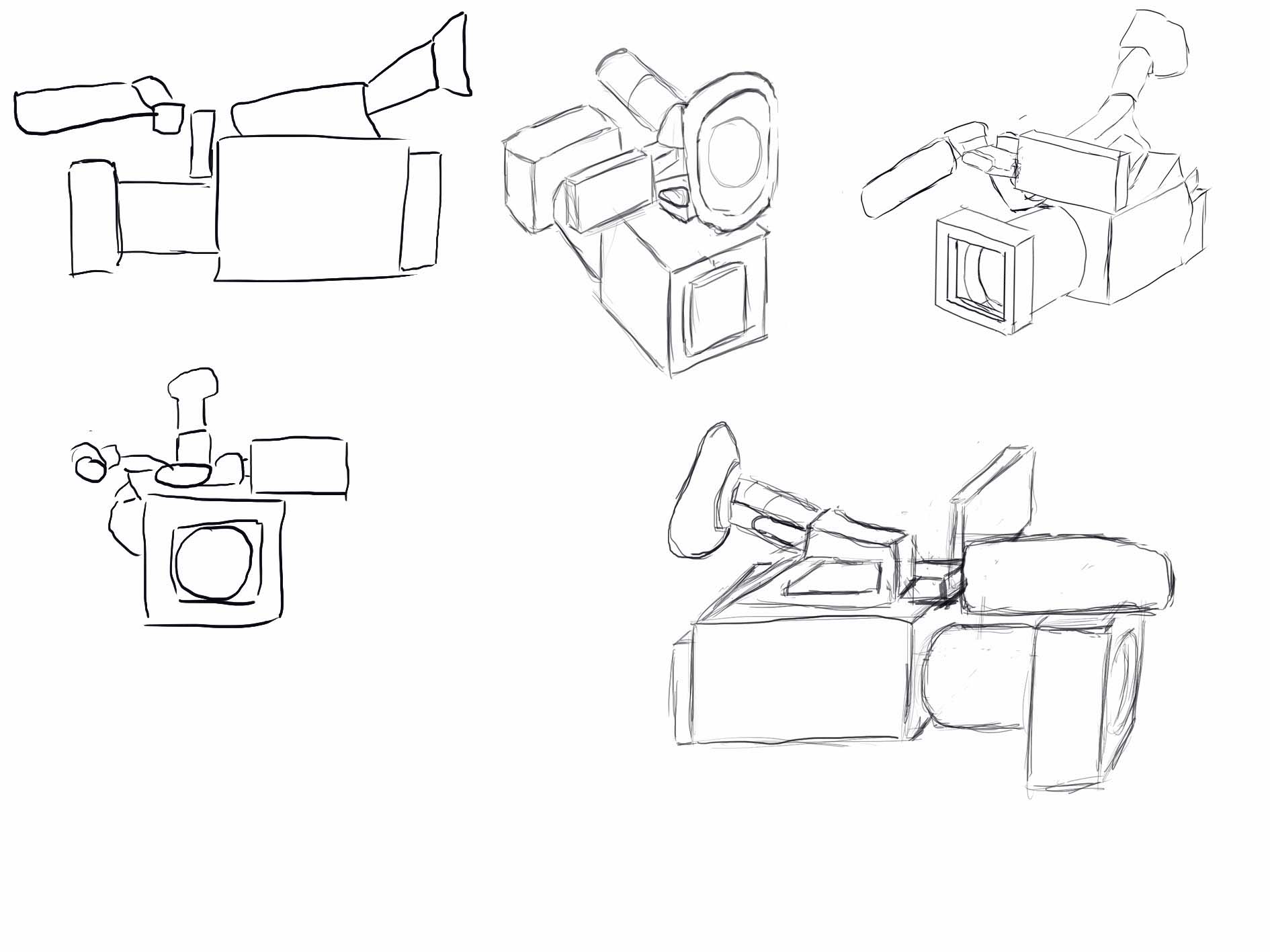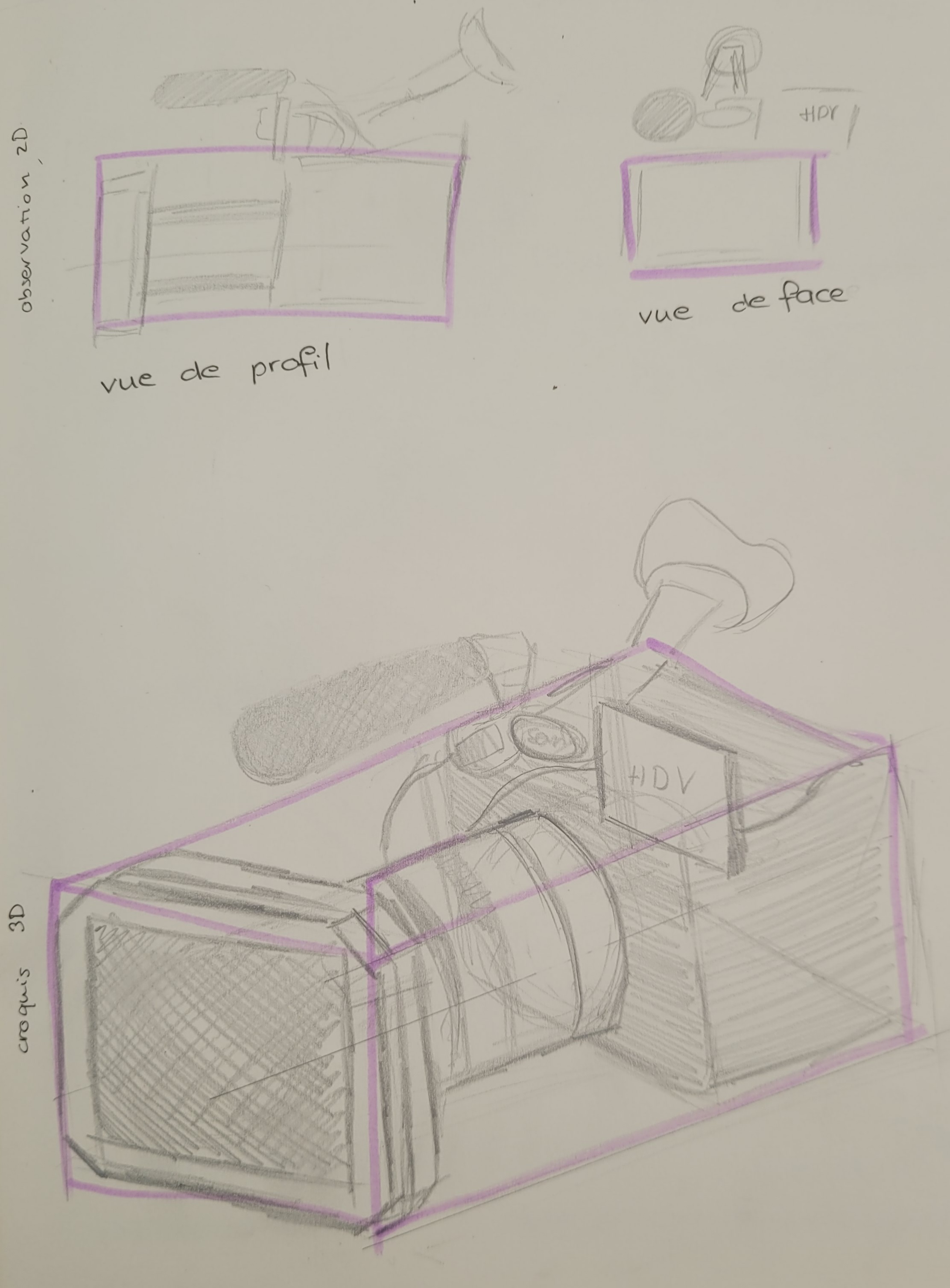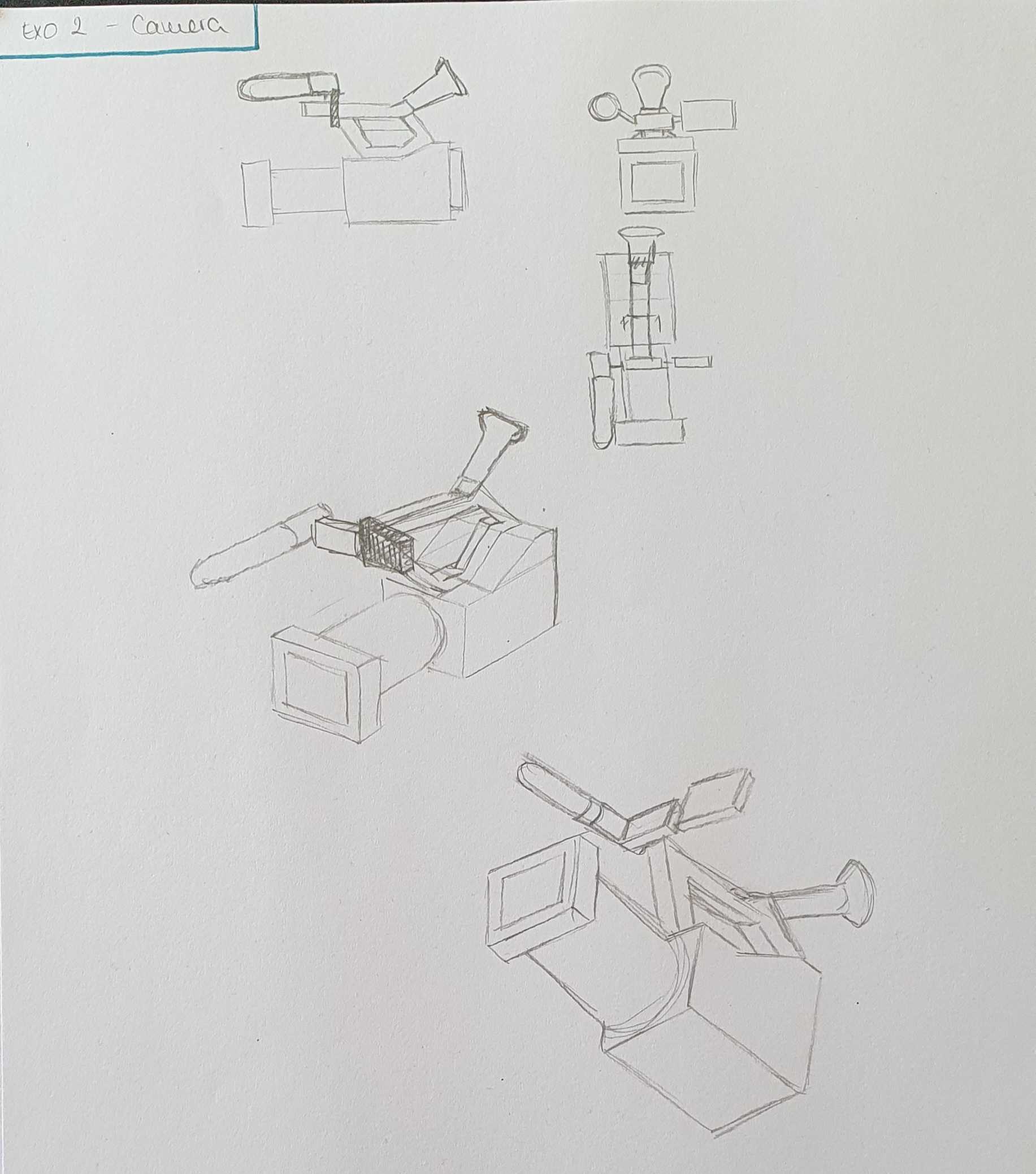 Pour ce 2e exercice, j'ai essayé de simplifier au mieux la caméra en restant sur des volumes si possible simple. Pas évident pour les proportions. Pour l'instant, j'ai l'impression de ne pas réussir à tout maîtriser. Je suis donc ouverte à tout bon conseil pour m'améliorer!