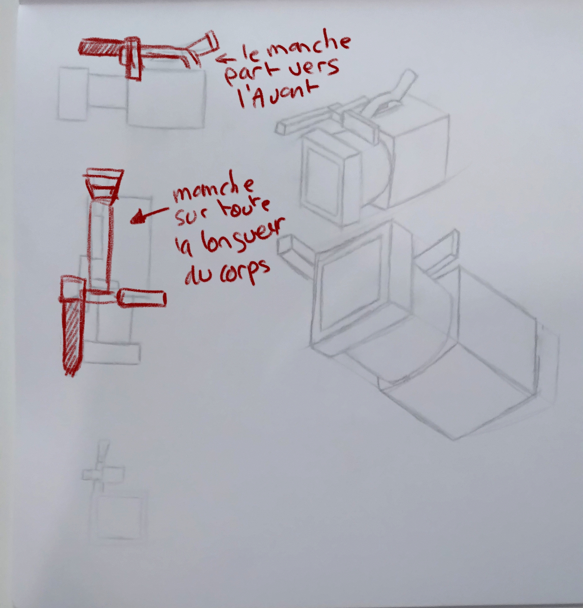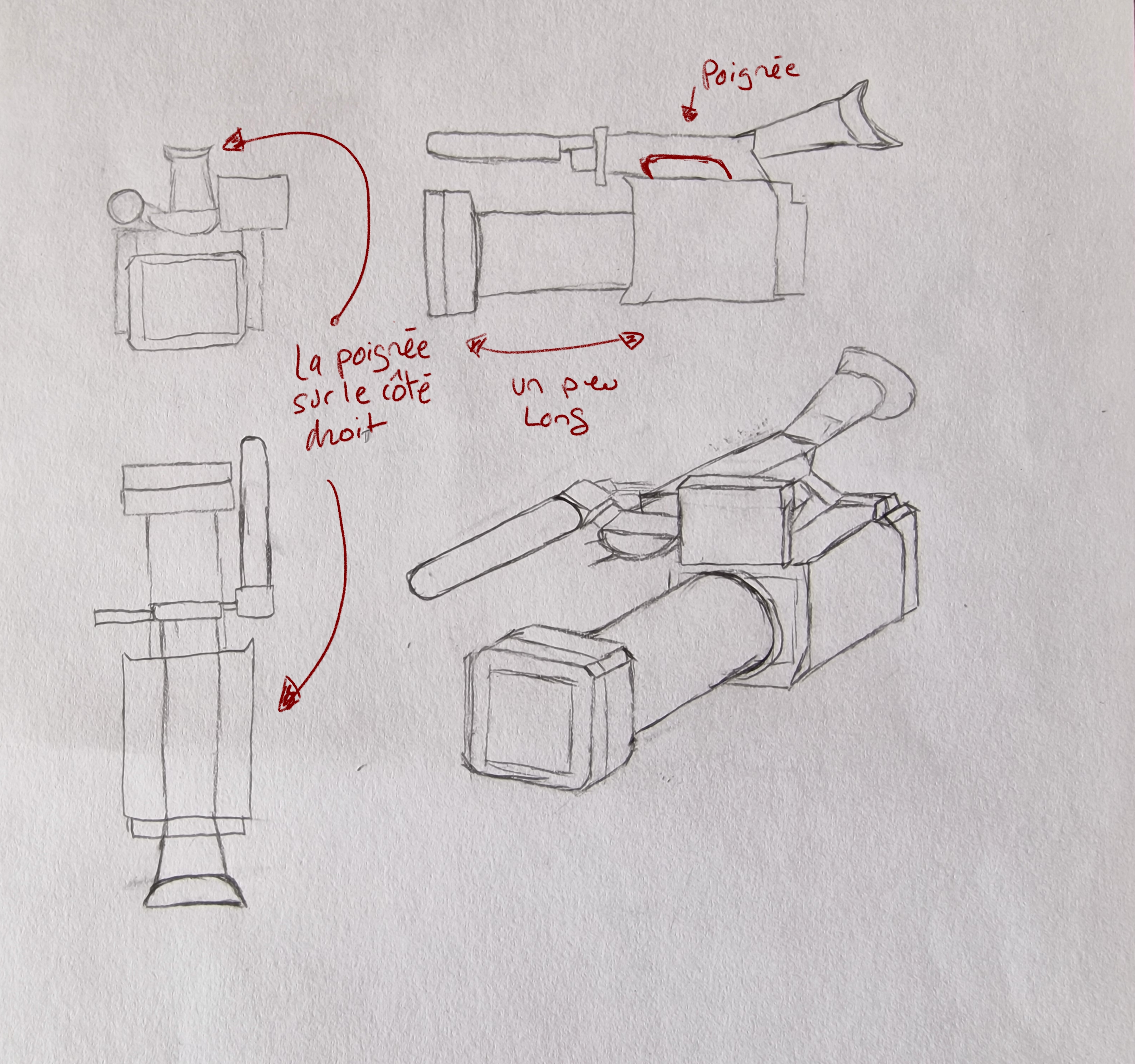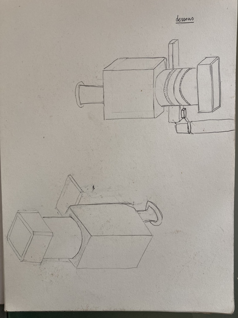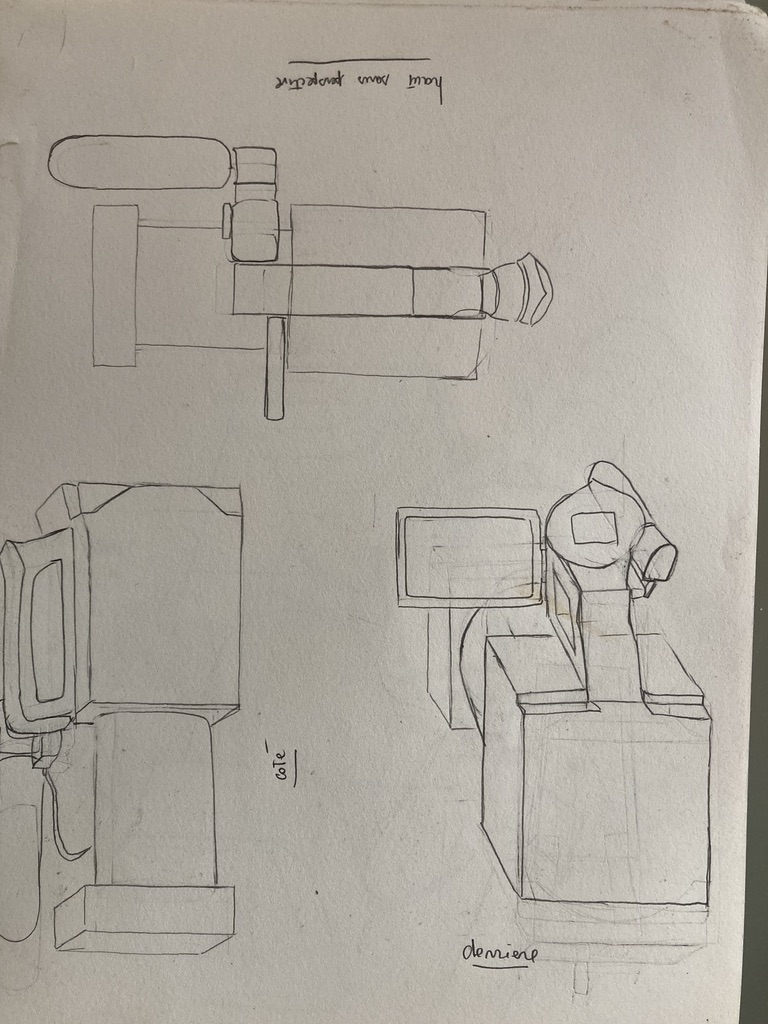 bonjour voici la camera... j'avais pas compris à l'observation que la poignée était vers un coté. je l'ai bien placé au centre dans tous mes dessins!!!