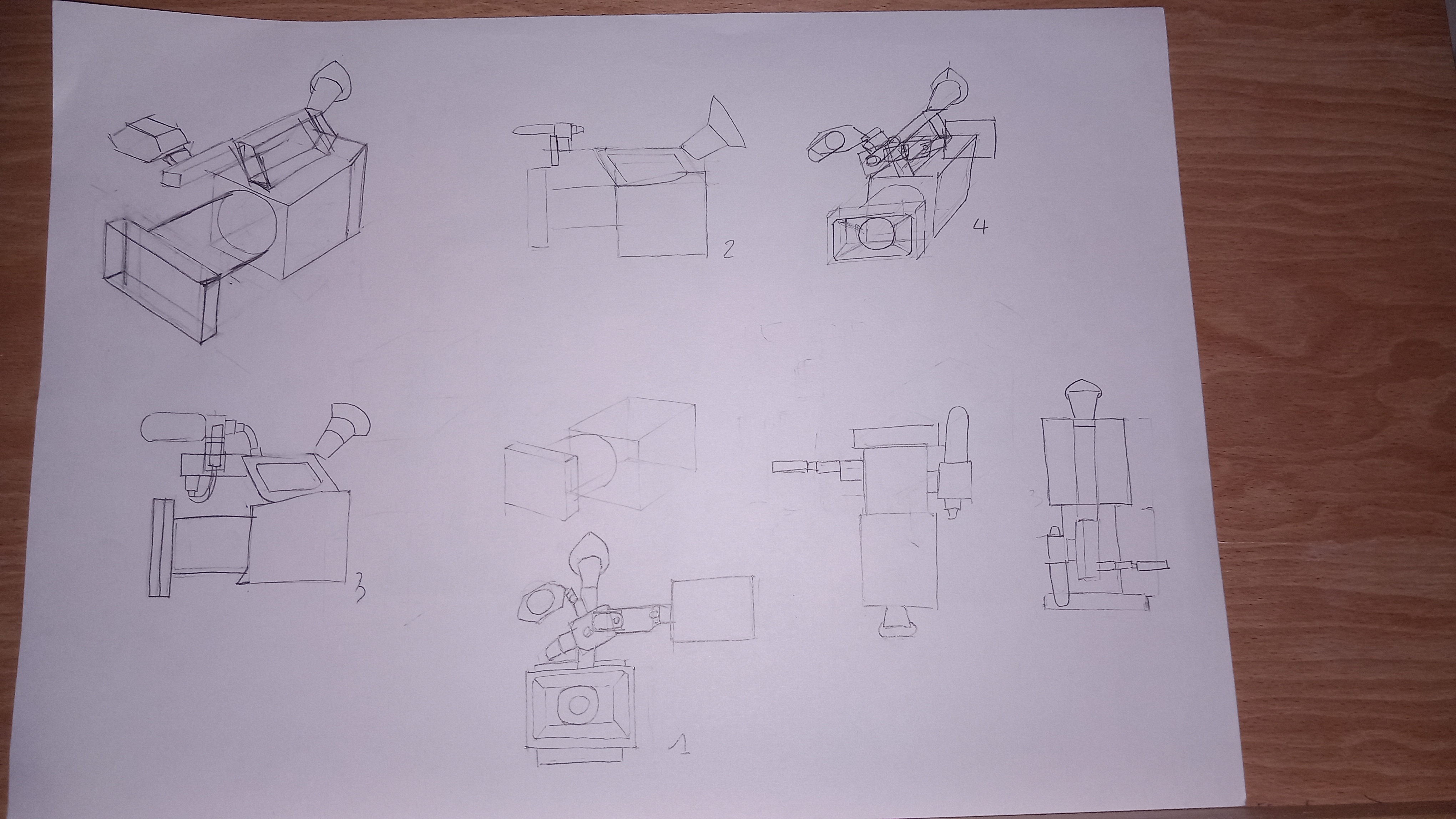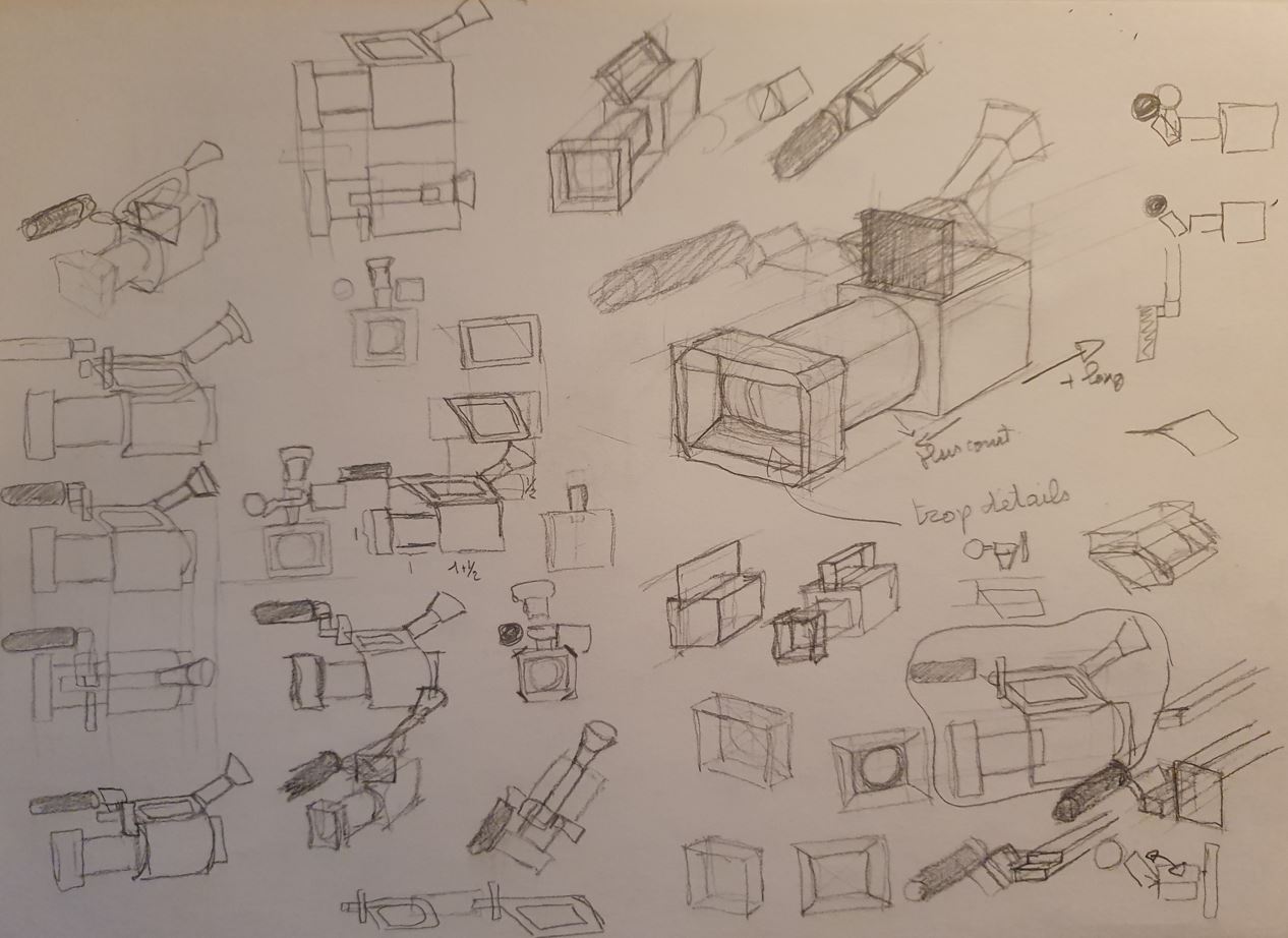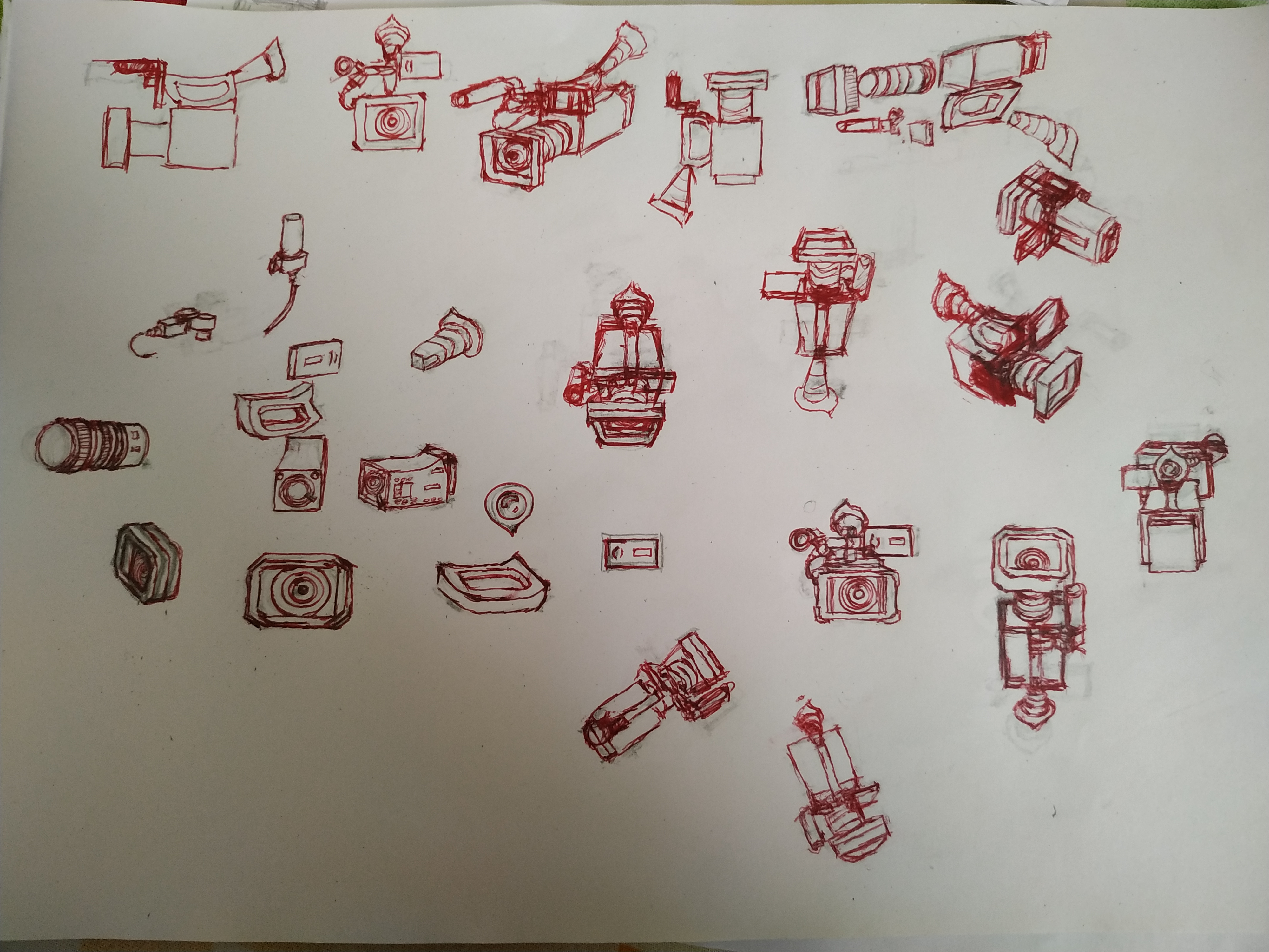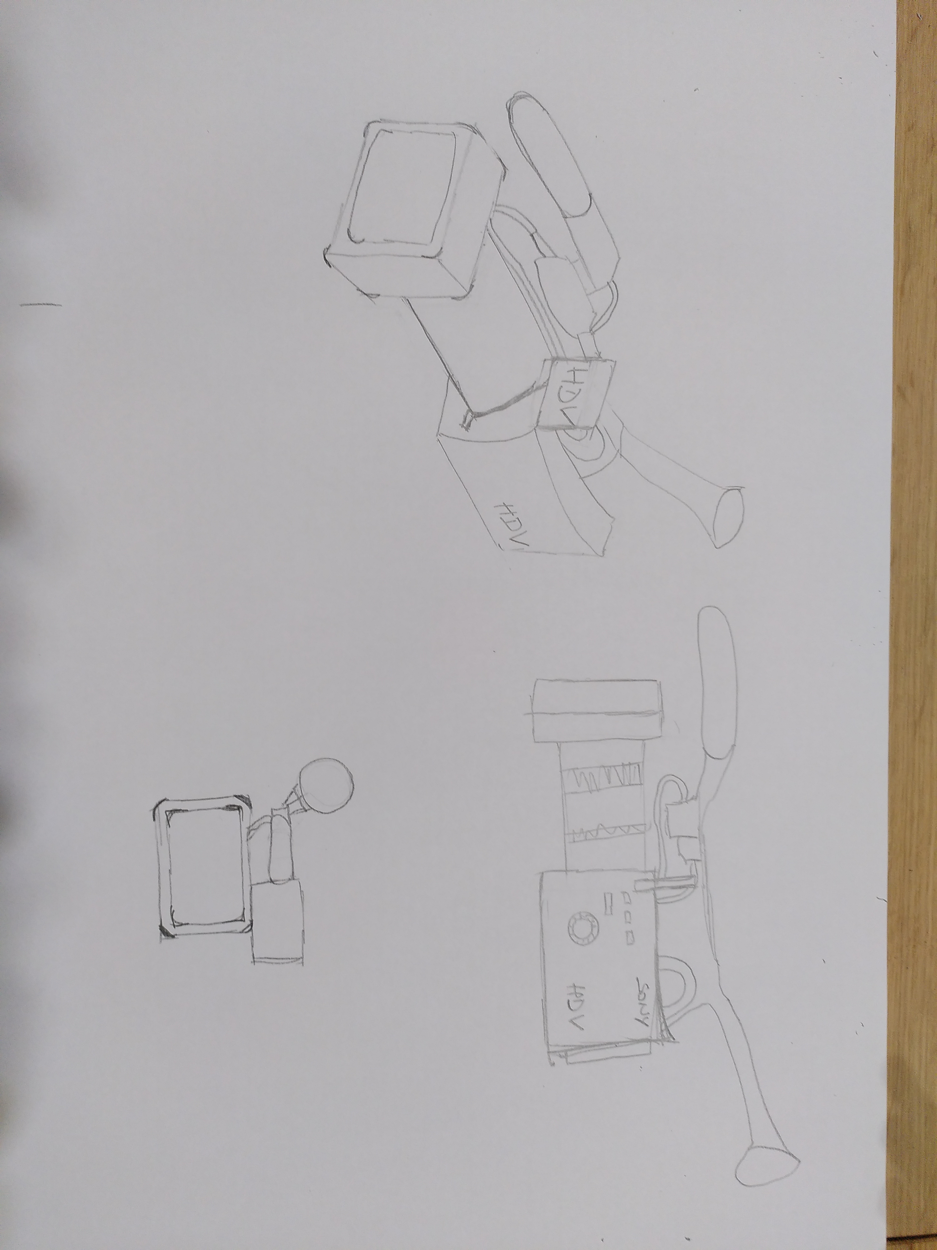 Hello Saperlipopette, je comprends ce que tu veux dire, la caméra est un peu plus complexe... Mais tu as bien retranscrit les éléments principaux et leur connexion (même la partie poignée/micro/écran qui est la plus "casse-gueule"), donc c'est super! Comme sur les autres correctifs, je te dirais de tenter d'autres vues en plus ( de dos, de dessus...). Sinon, attention à l'oculaire qui est un peu trop allongé.