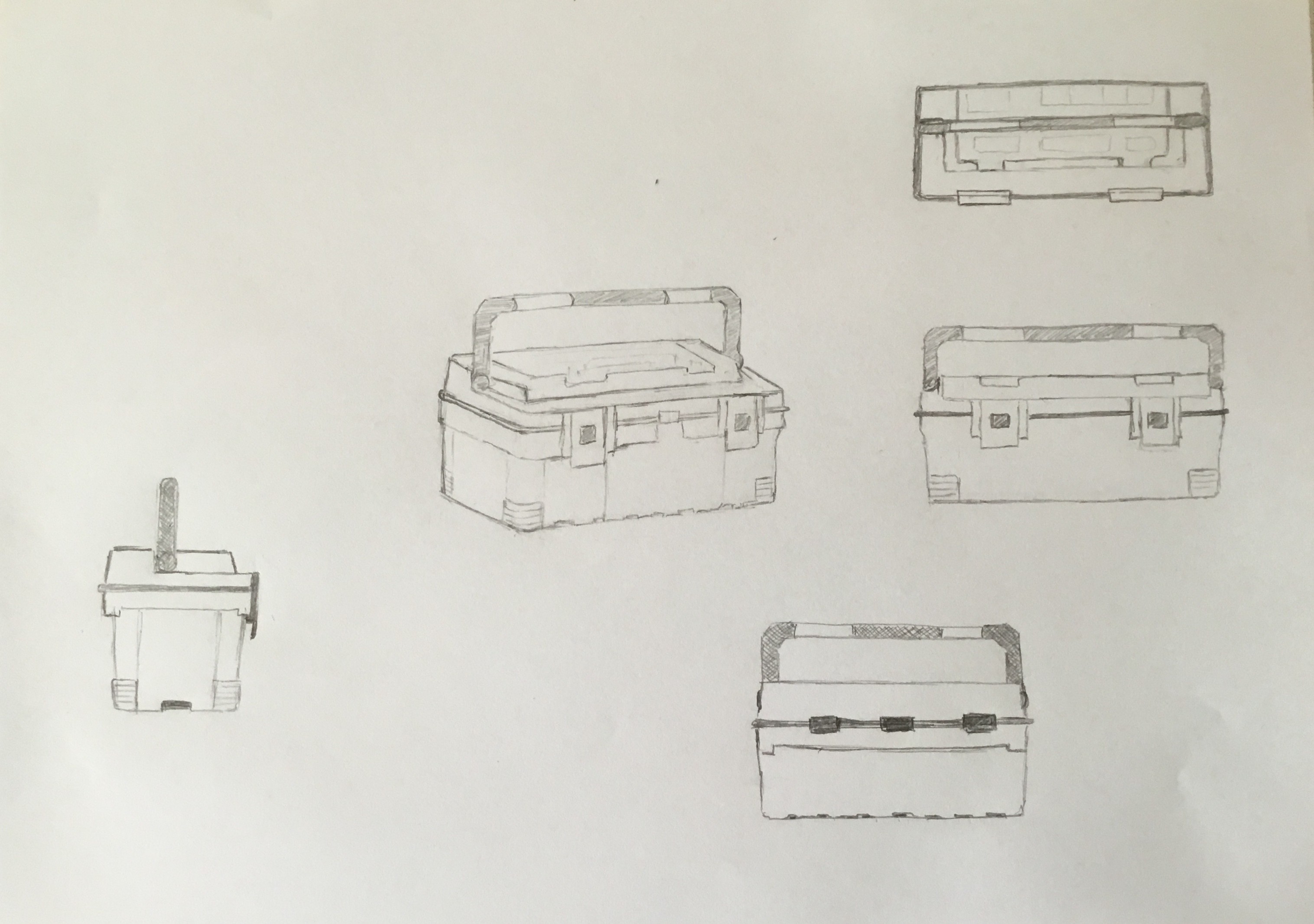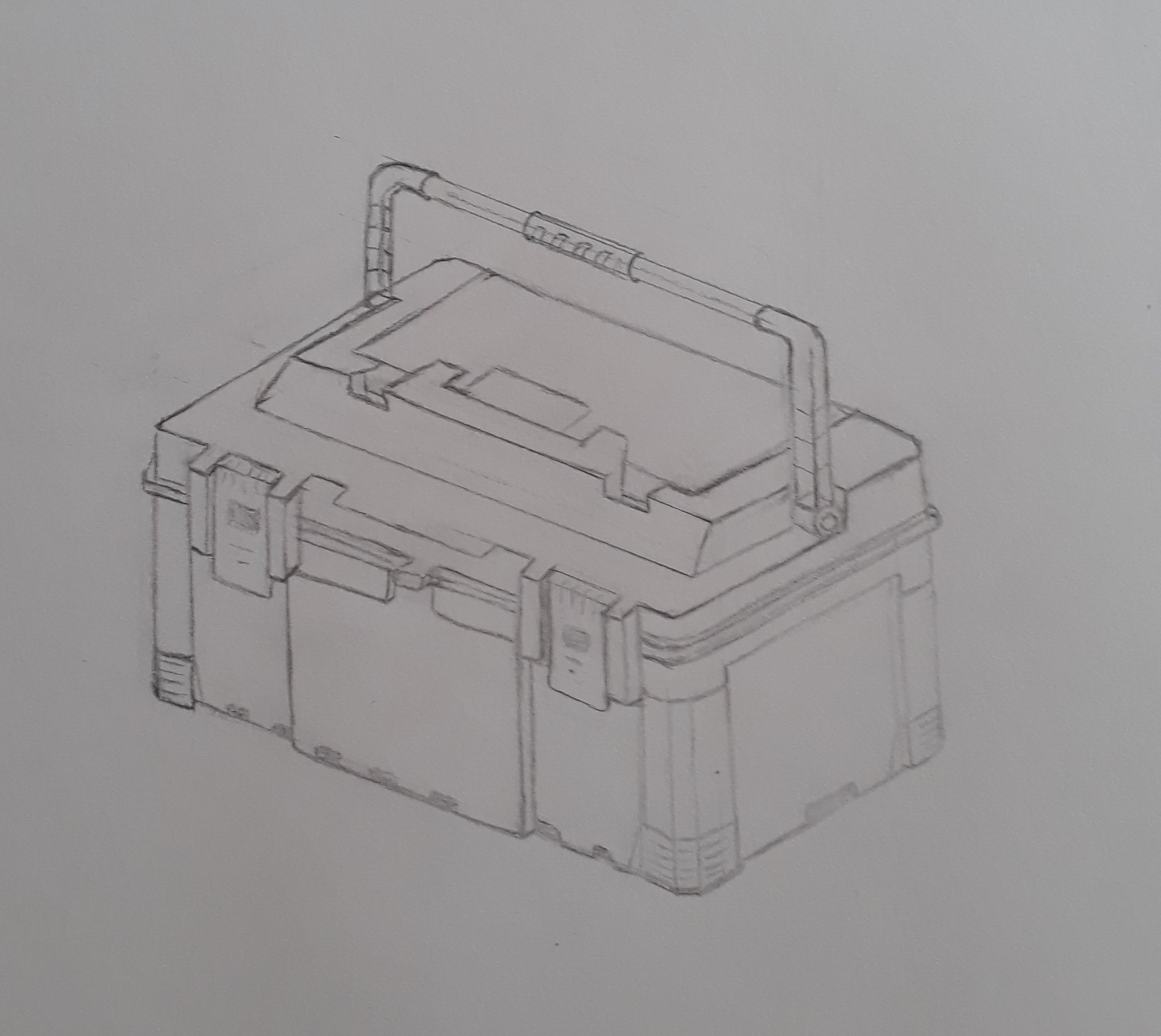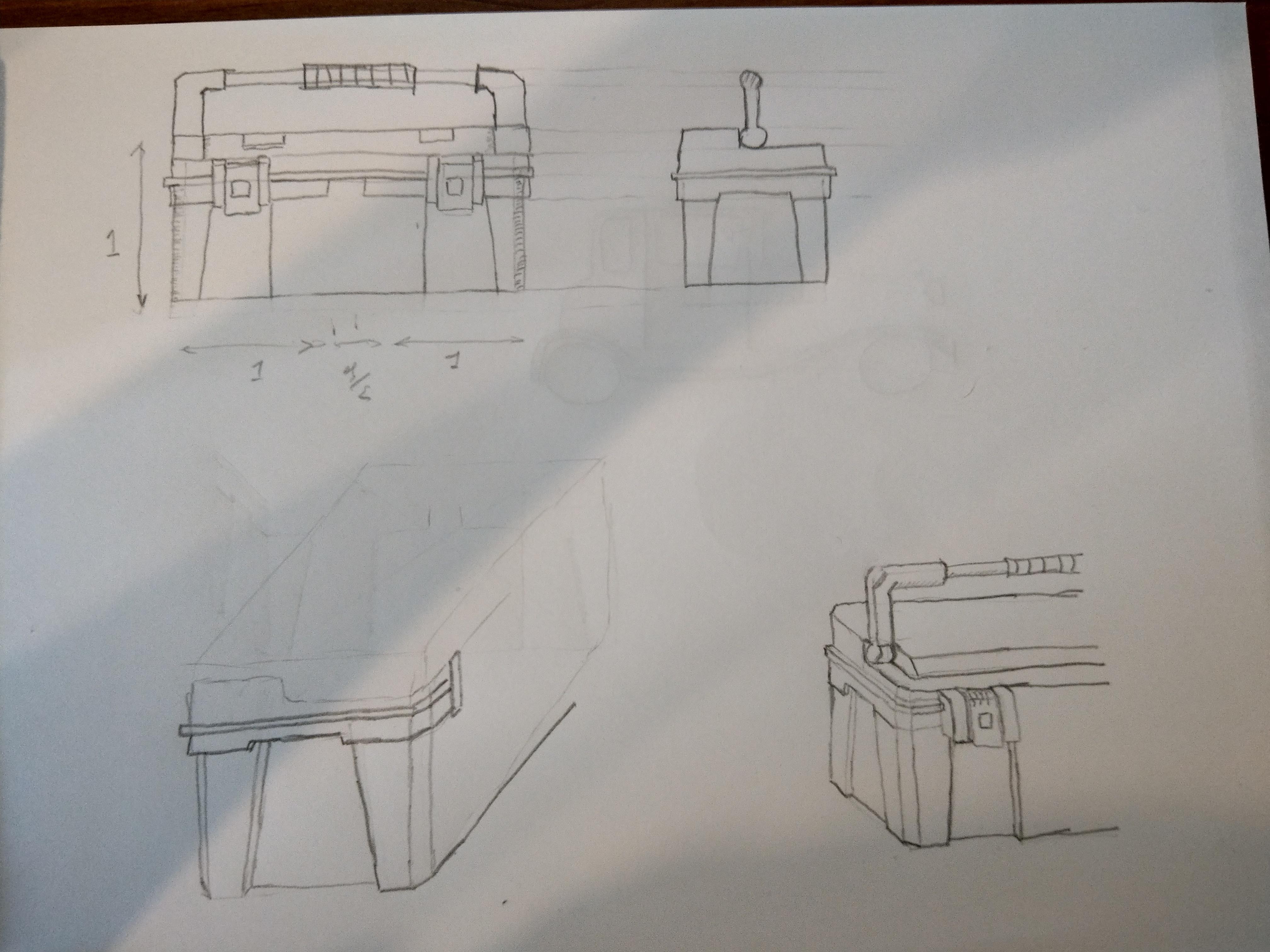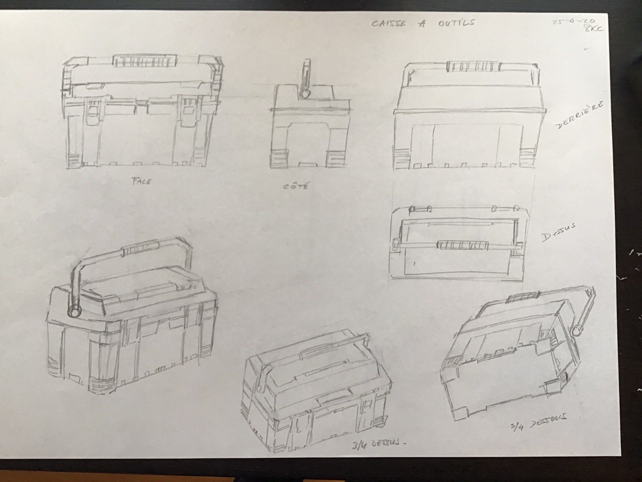 Attention à certains petits détails comme sur la caisse à outils par exemple, des fois tu fais le couvercle plus droit, parfois qui se rétrécit vers le haut et parfois qui s'évase. Idem pour le bas de la boite, plus ou moins incliné ou vertical.
