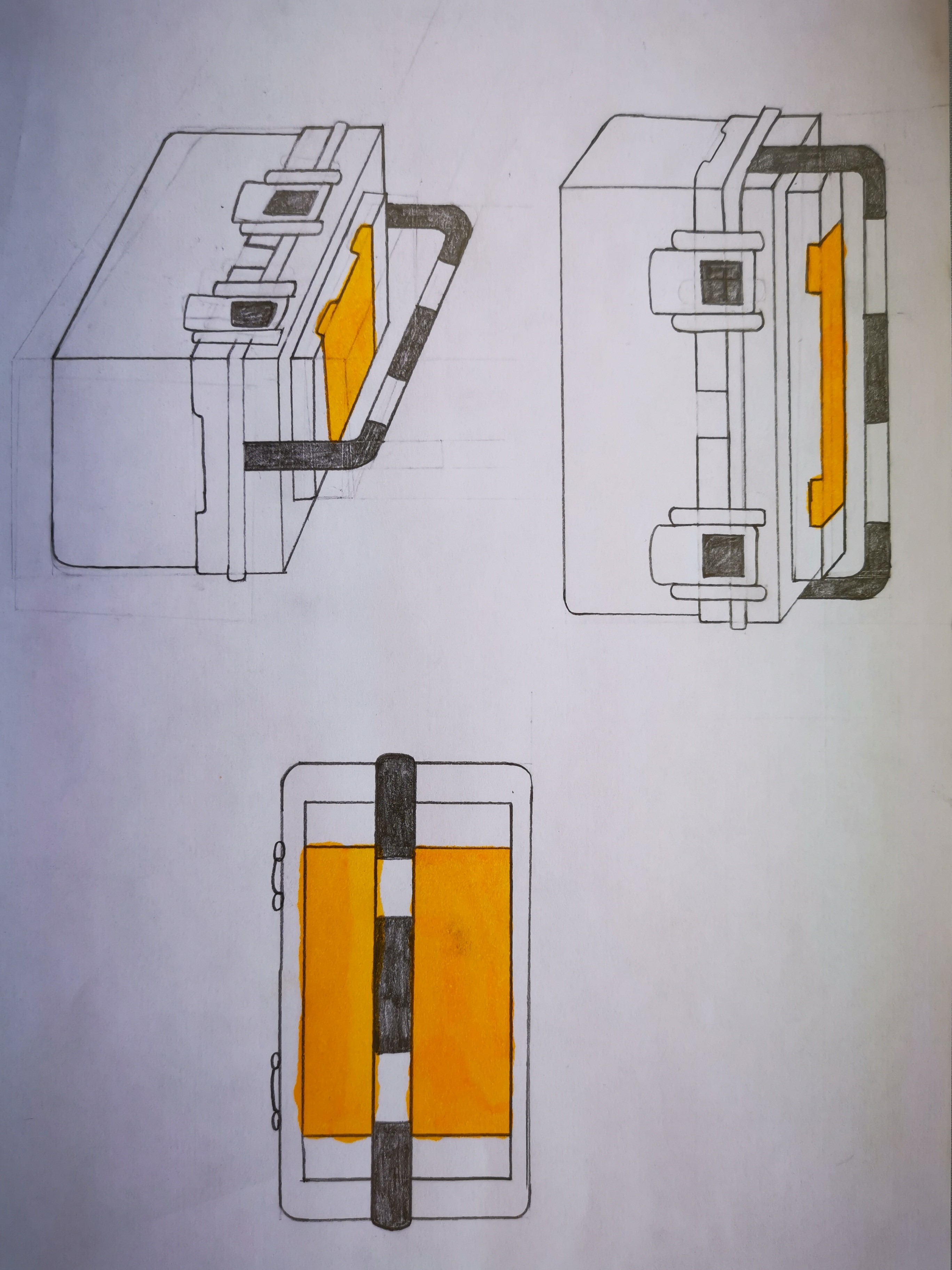 Hier sind die Zeichnungen für die Toolbox und die Kamera.