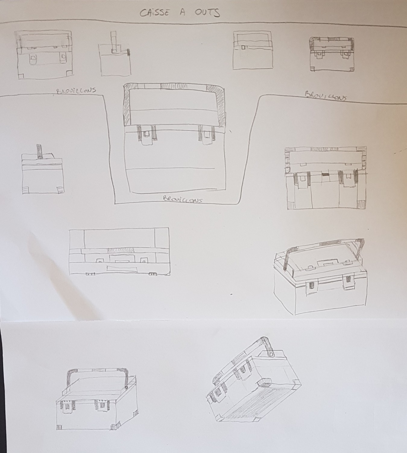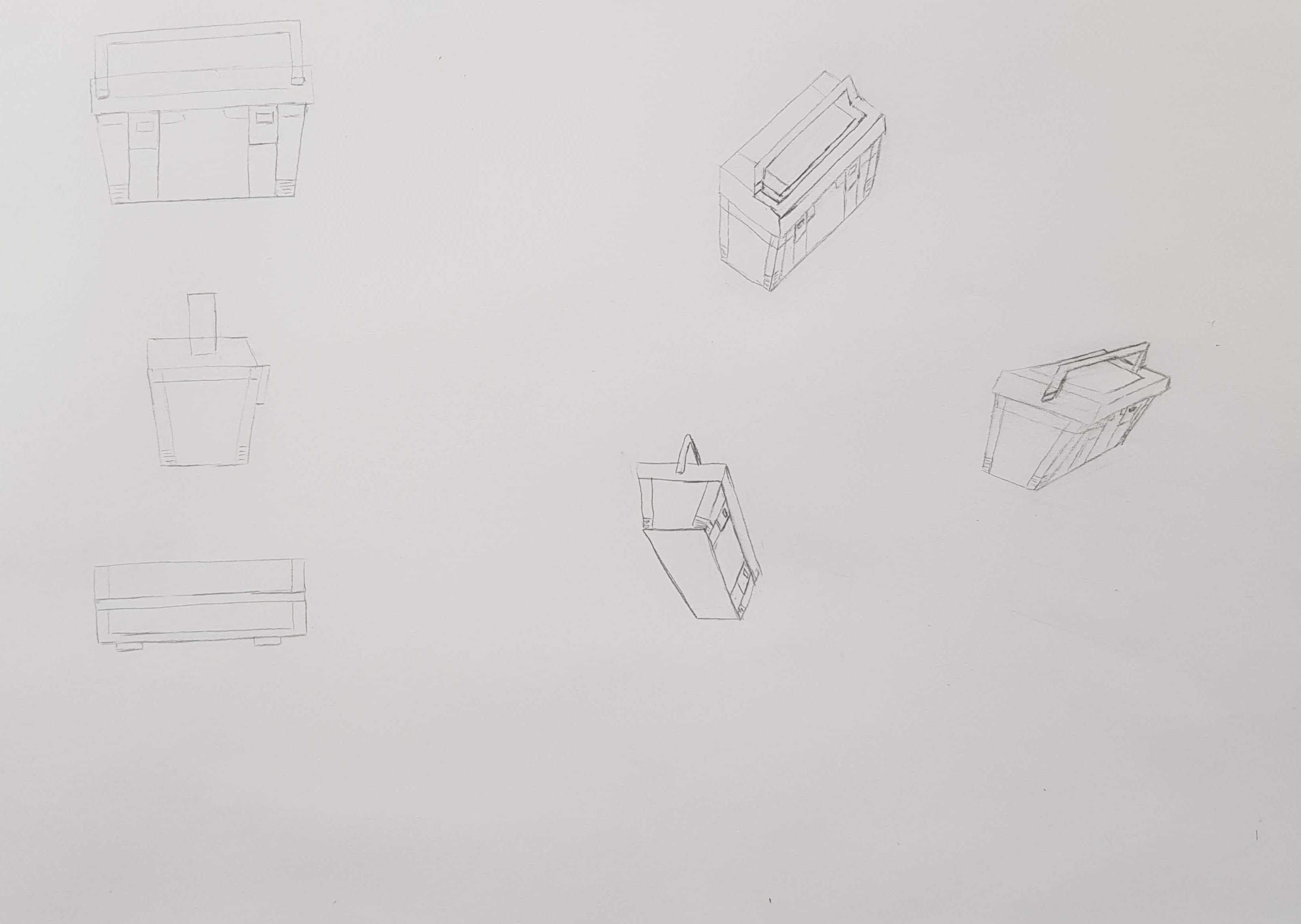 Je trouve que ta caméra est très chouette. Ta caisse à outils est pas mal aussi, mais je vois un détail qui ne semble pas tout à fait juste : la poignée. De face tu nous montres un certain volume, mais qui ne dépasse pas de la caisse. Sur toutes les autres vues, la poignée est plate en revanche sur les côtés. Du coup, à revoir à ce niveau-là ^^