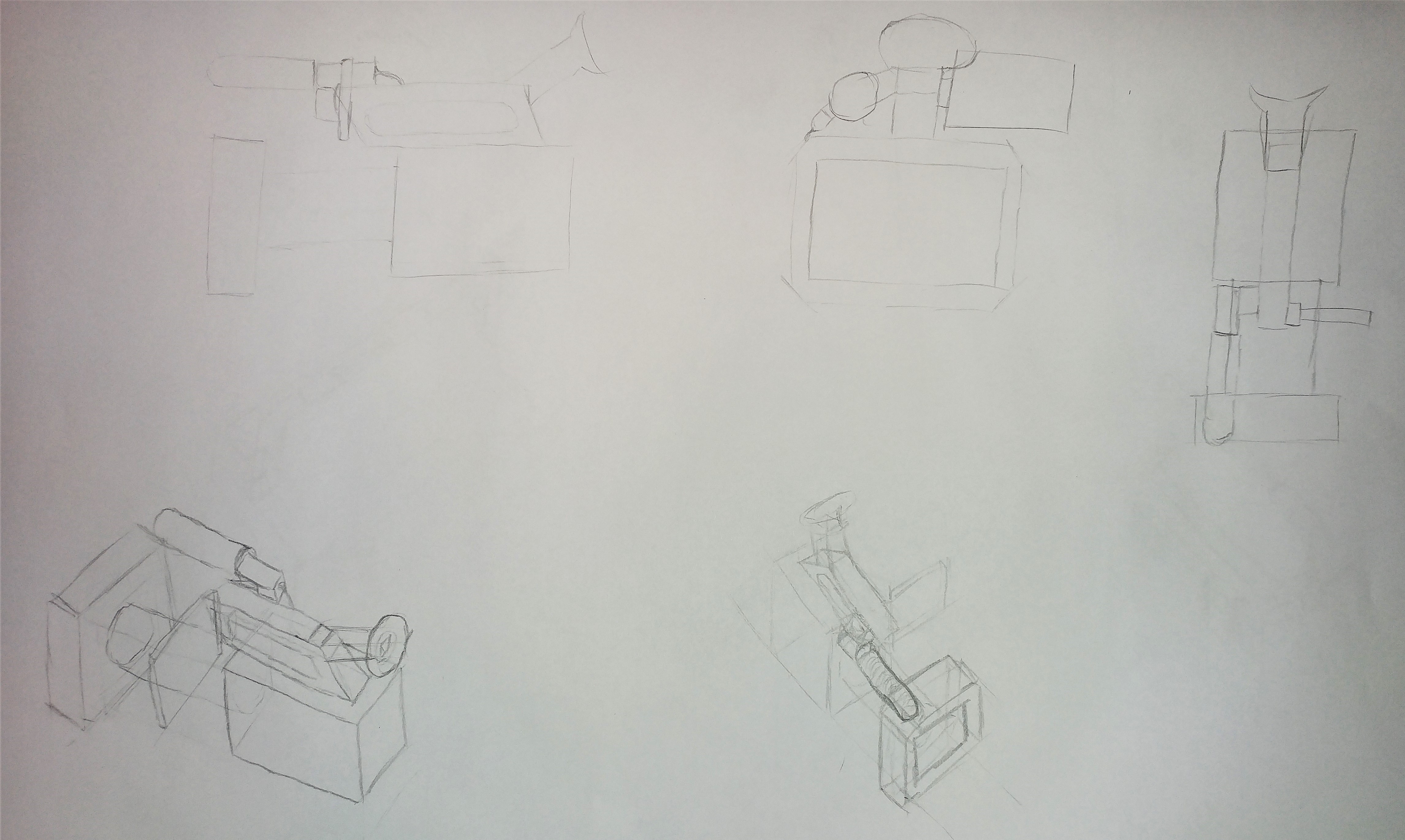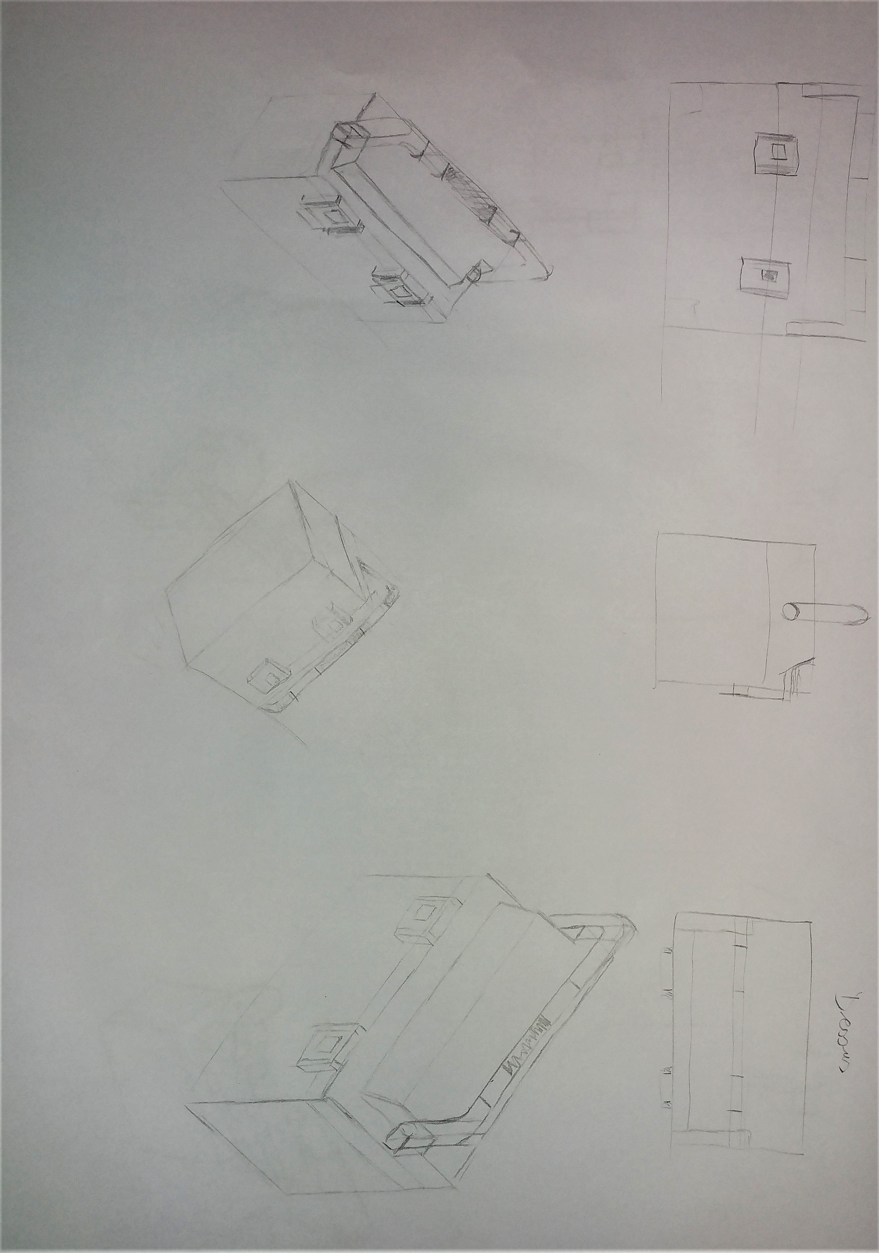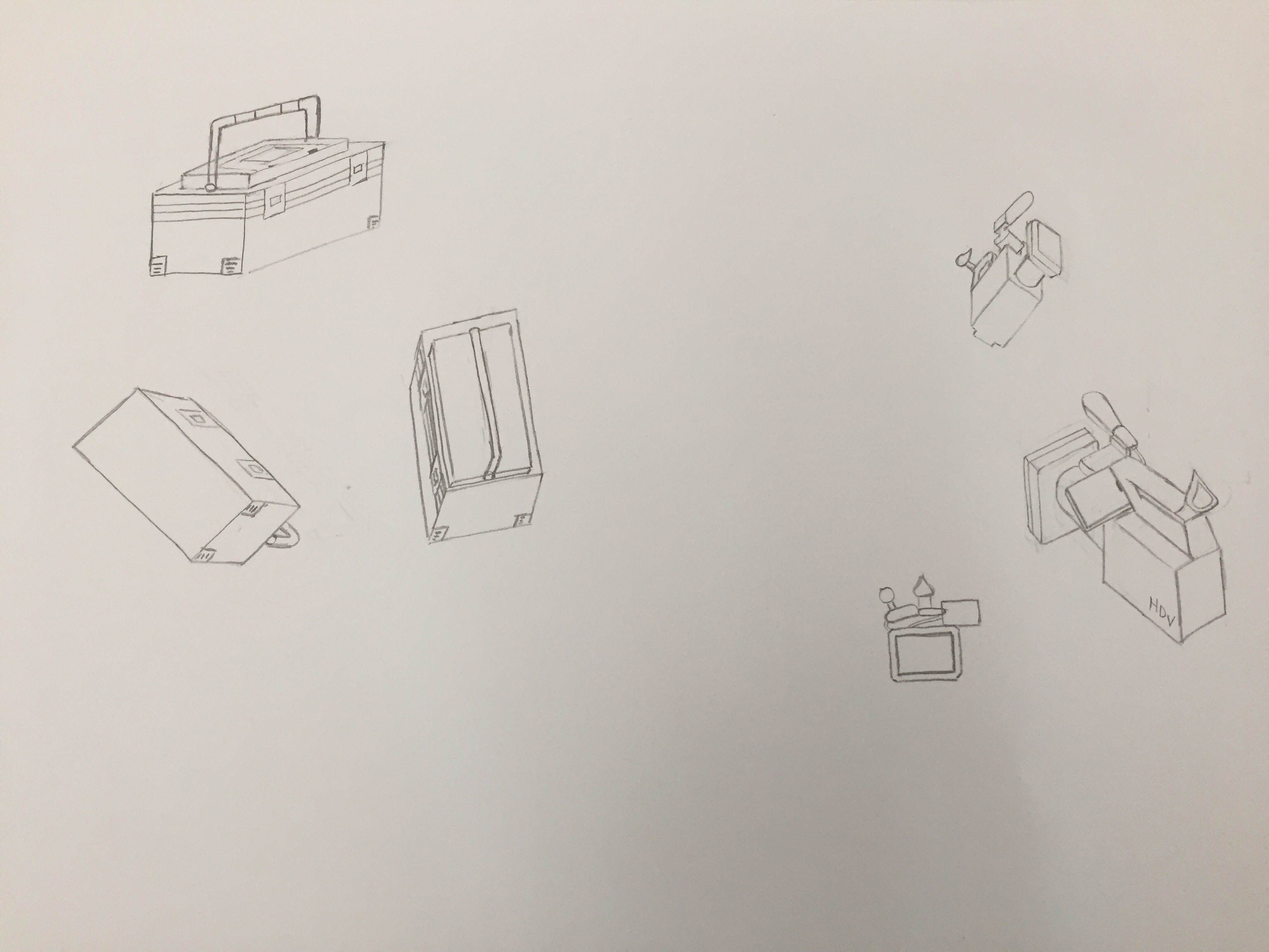 Voici mes croquis en volume de la boîte à outils et de la caméra.
