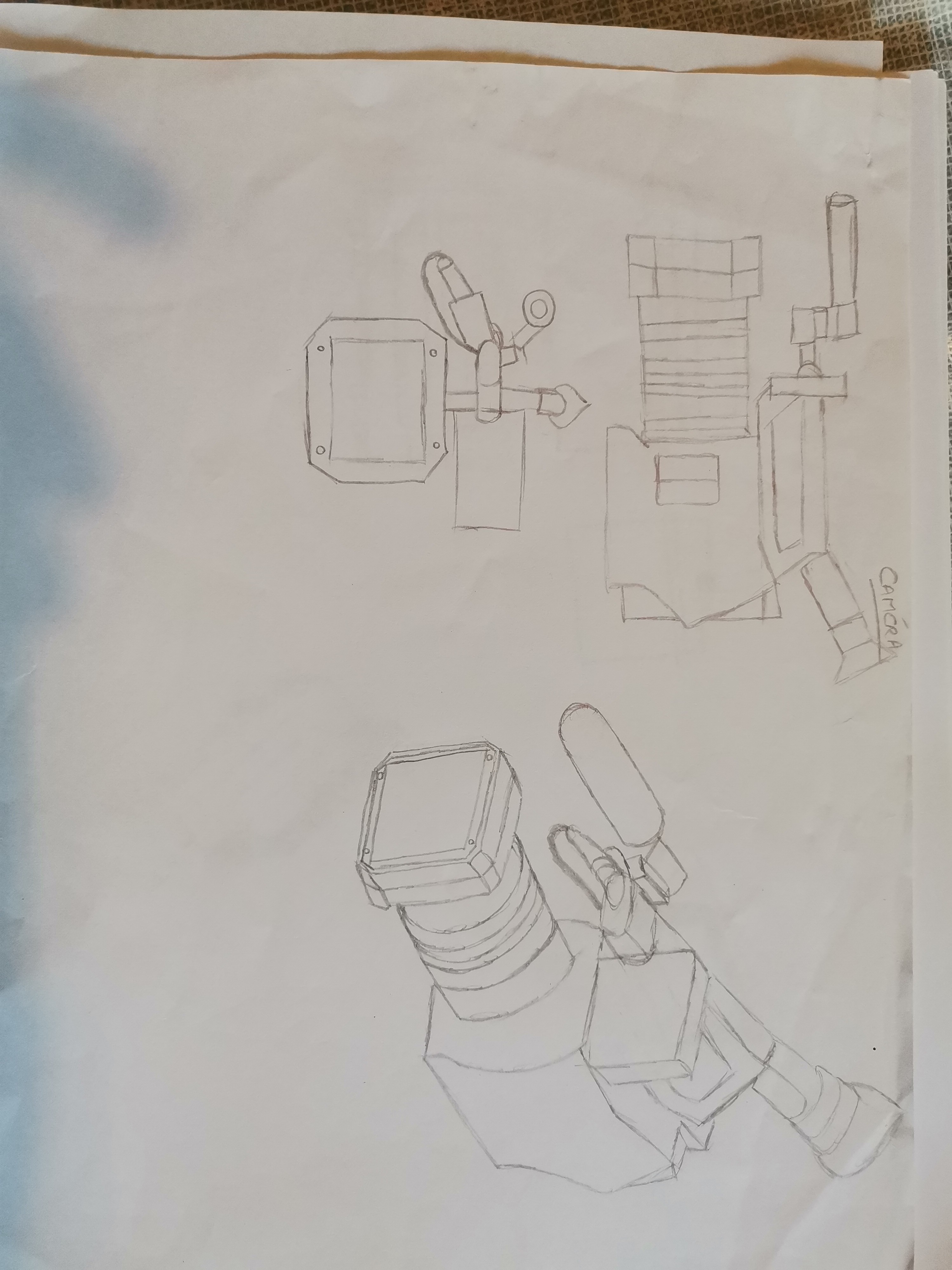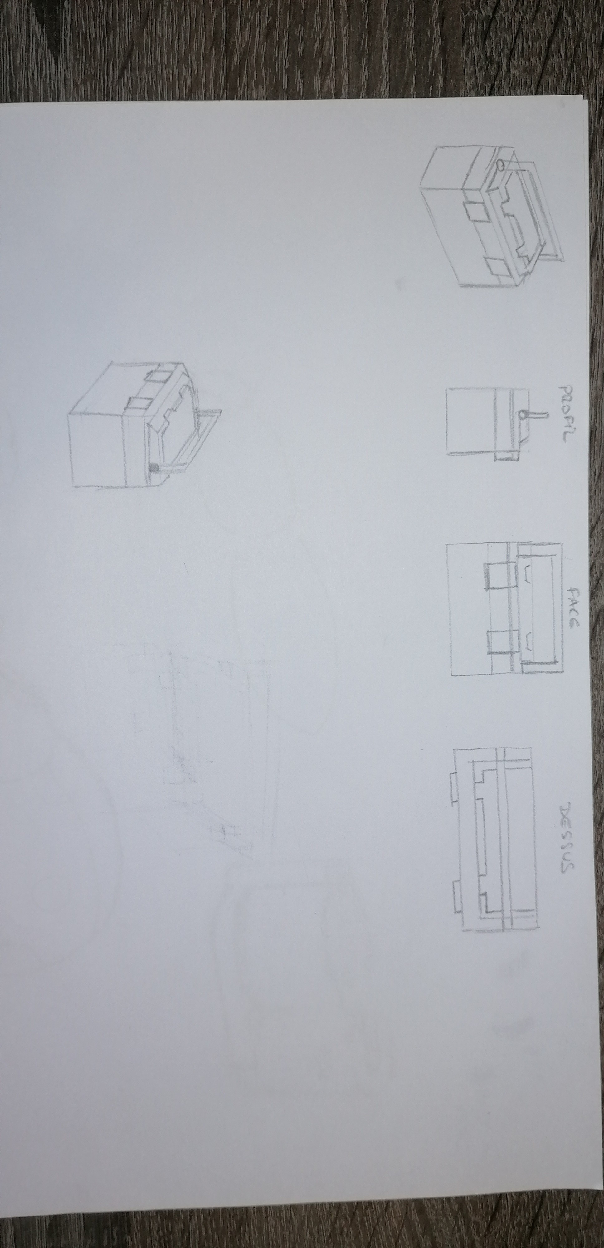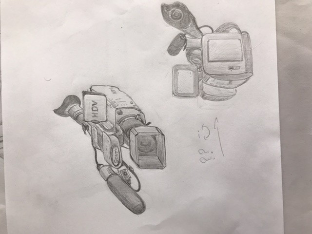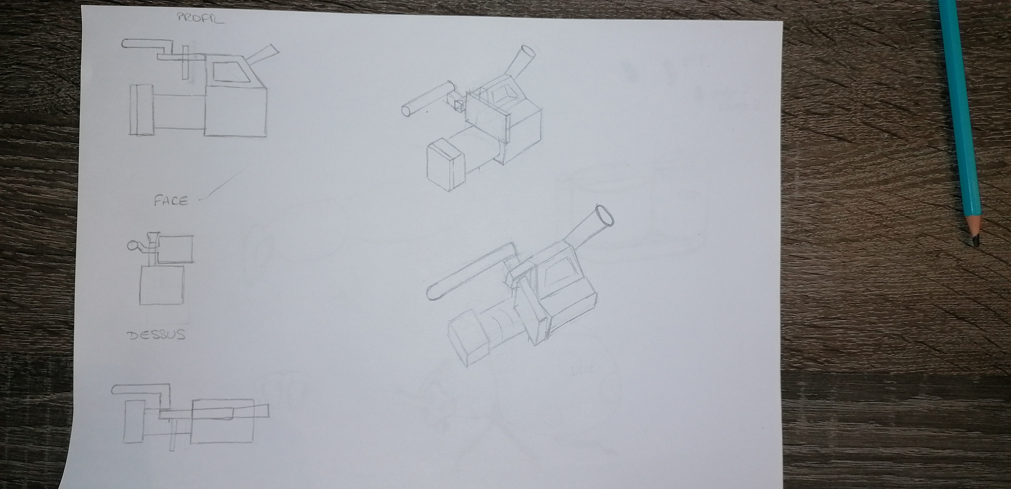Voici mes croquis en volume de la boîte à outils et de la caméra.