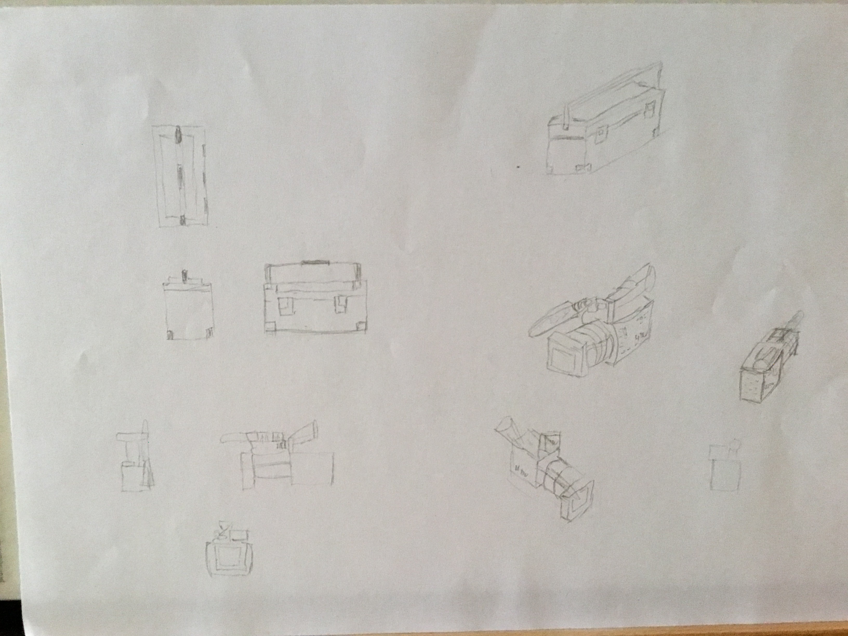 Ich habe Ihnen entschieden, Ihnen das Ergebnis der letzten Übung zu schicken, weil es mich sehr frustriert hat. Ich fühlte mich nicht äußerst schwierig, die Objekte darzustellen, die in zwei Dimensionen angeboten werden sollen, andererseits, sobald ich versuche, ihnen ein Volumen zu geben, ist es die Katastrophe, sogar von einem einfachen Parallepiped. Ich verliere mich in der Perspektive, die ich mit der Toolbox erstelle, wie bei der Kamera. Ich habe versucht, meine Skizze so gut wie möglich zu beenden, aber ich fühlte meine Mängel während der gesamten Übung wirklich. Sollte es mit einfacheren Objekten versuchen?
