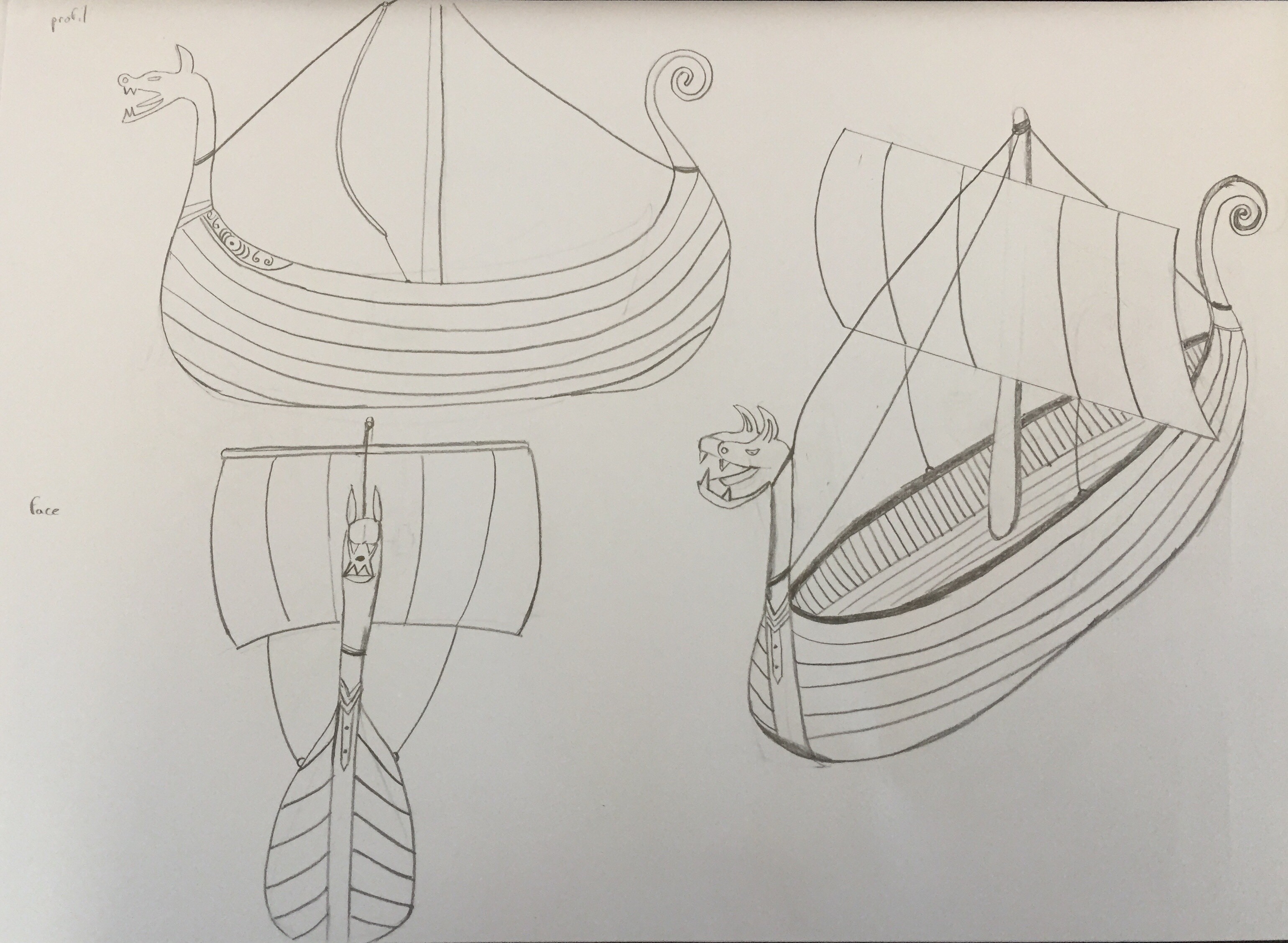 Also die Boote, die ich nie viel gezeichnet habe und ich habe keine Referenz. Also ging ich ein Drakkar -Modell, um ein wenig zu sehen. Insgesamt habe ich die folgenden Punkte festgestellt: