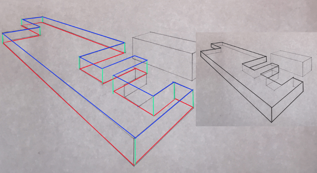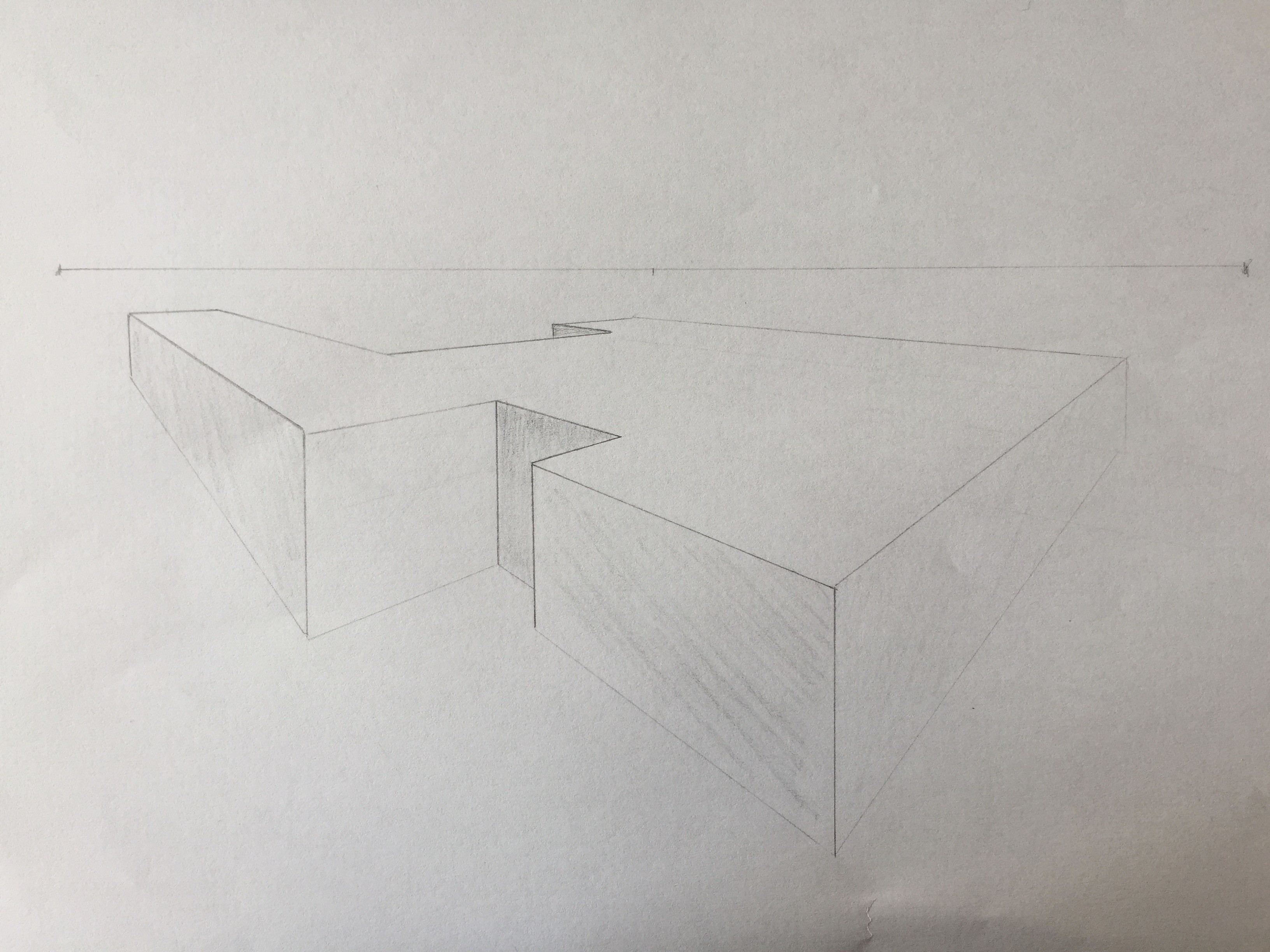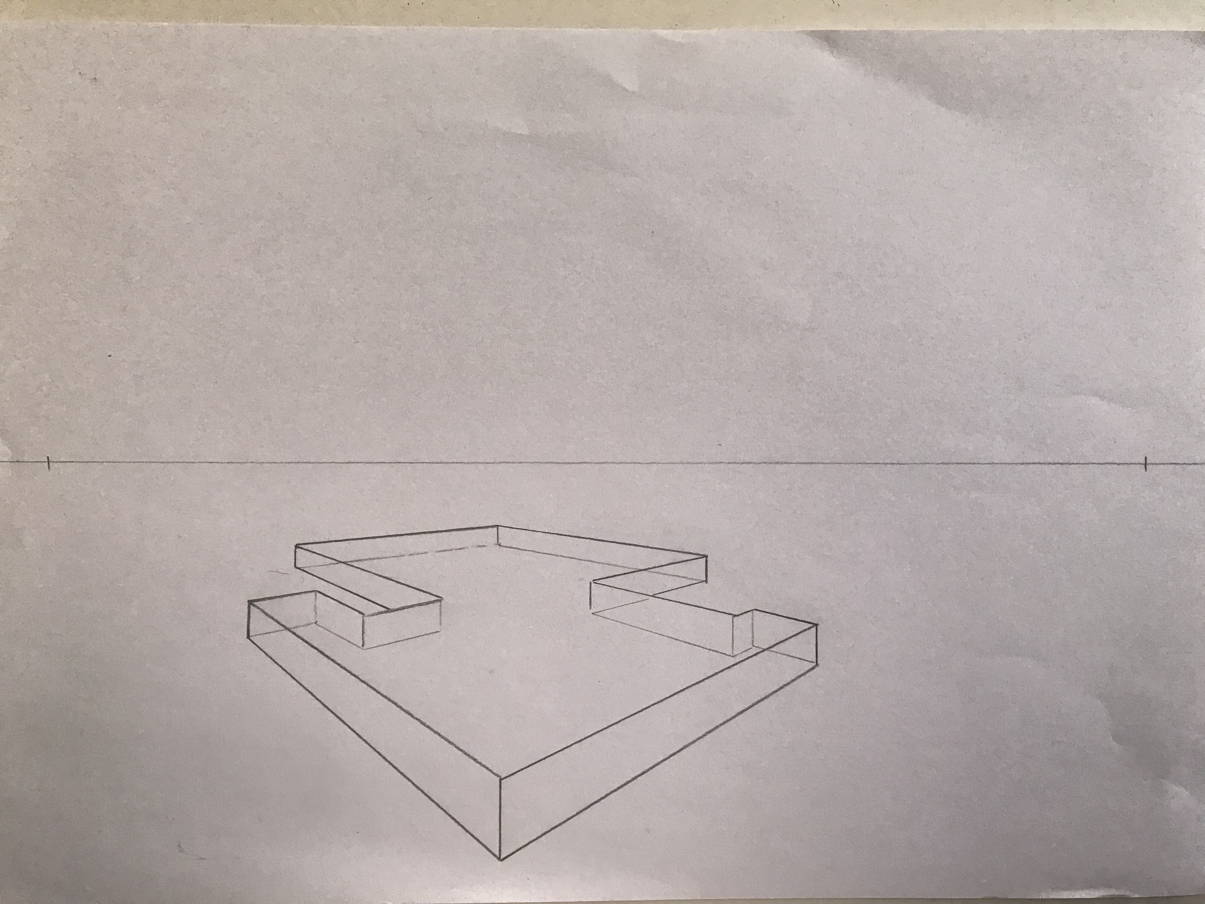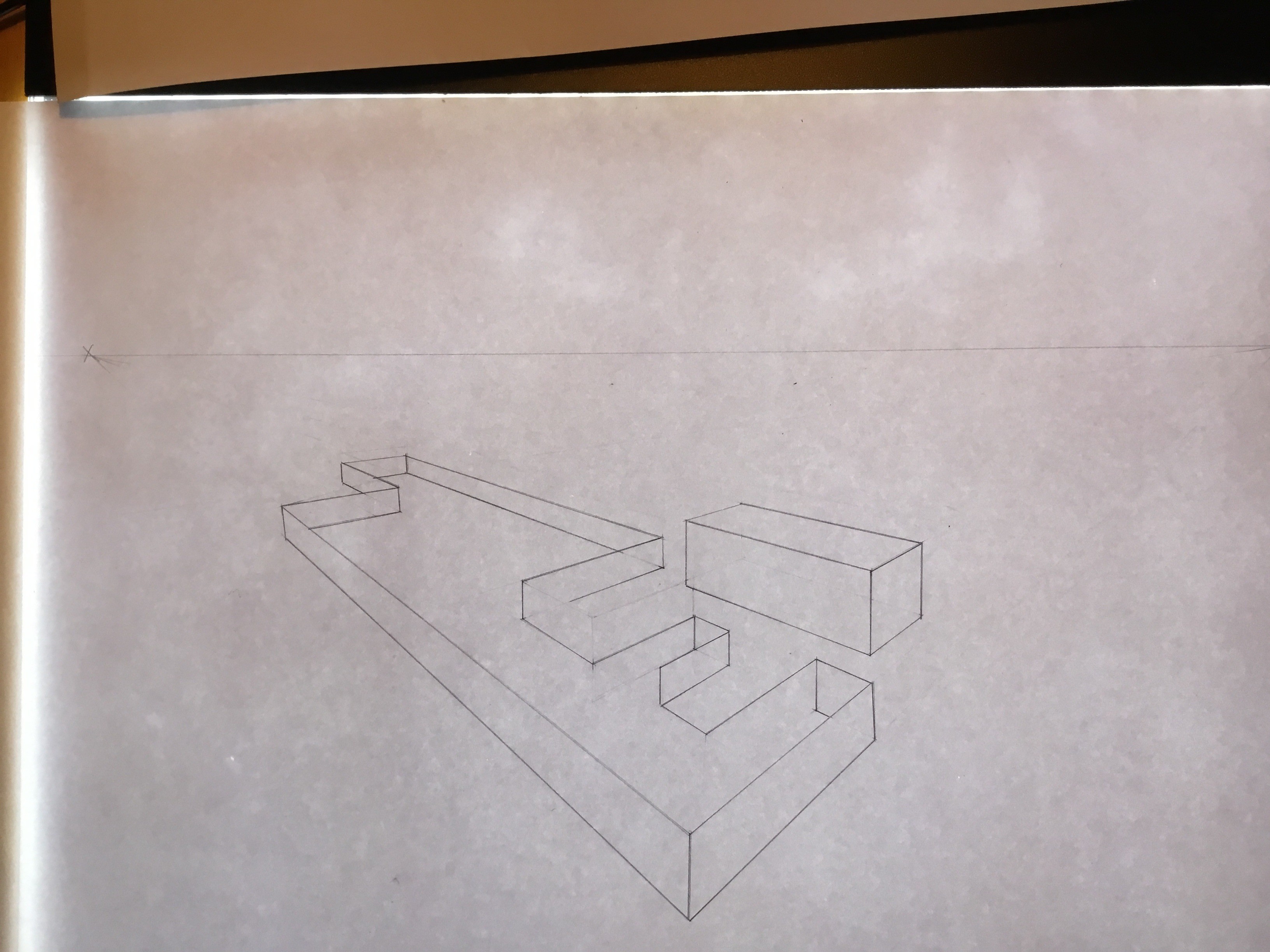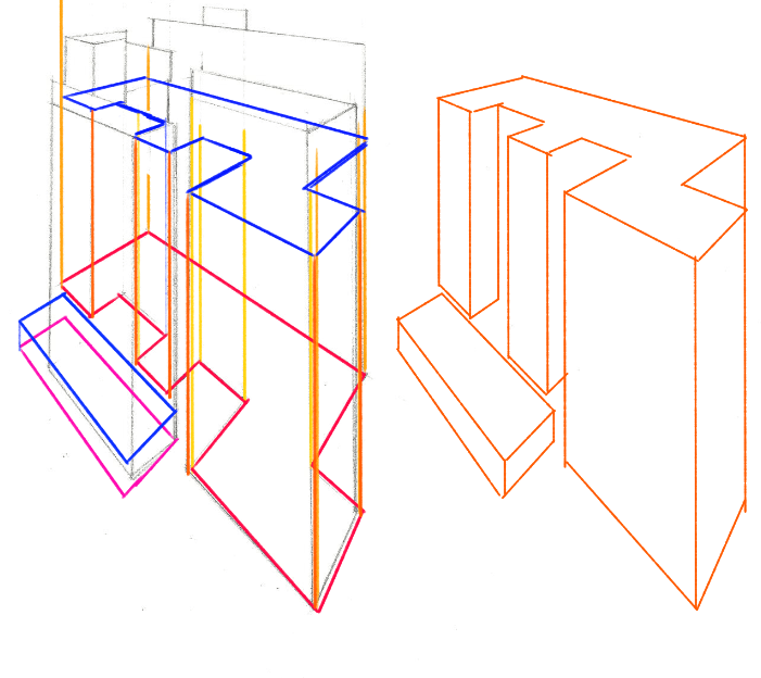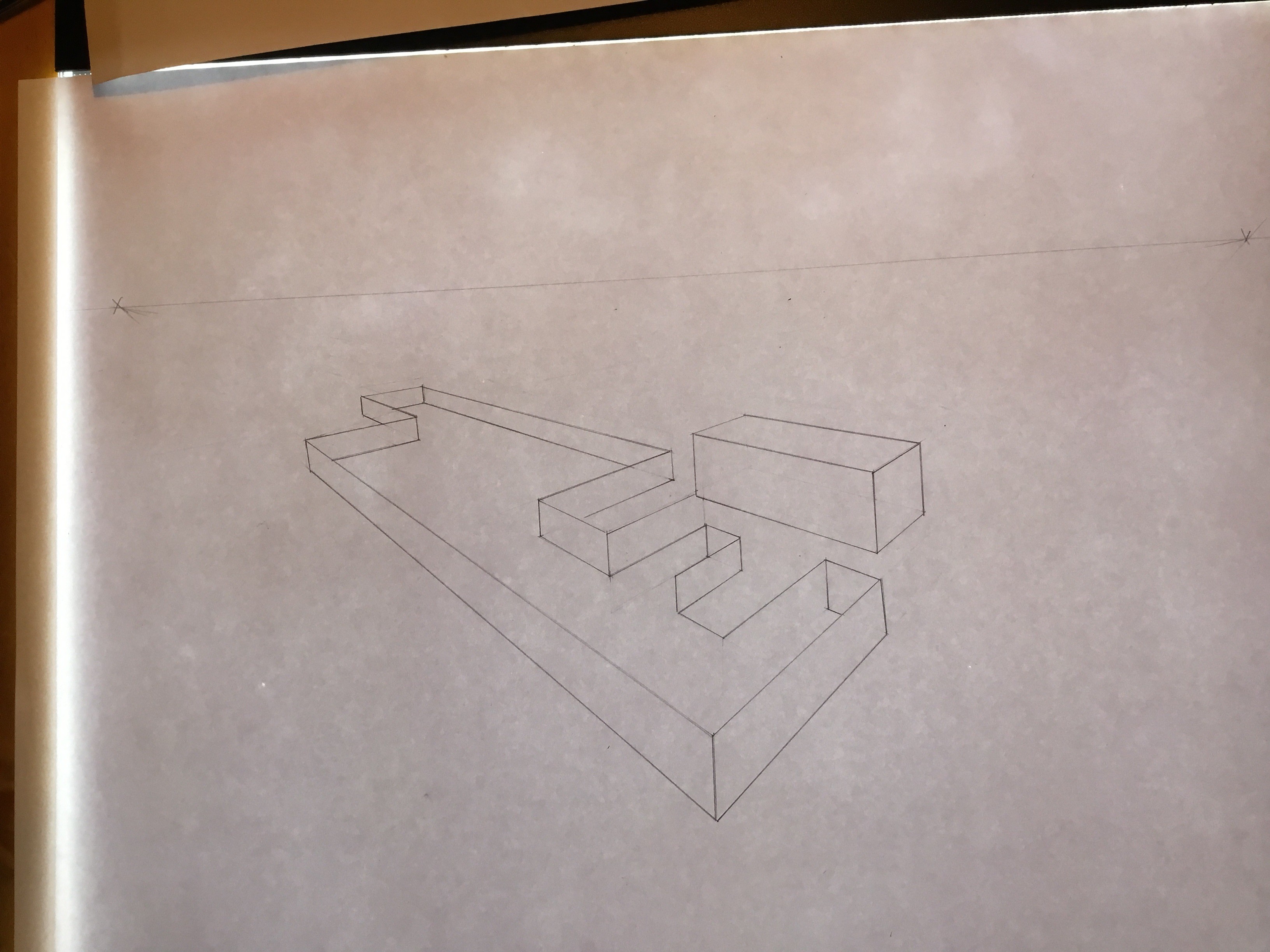 Je te conseille de t'appliquer à reporter la forme de base telle qu'elle plsu en hauteur et ensuite seulement d'essayer de relier les verticales visibles ^^