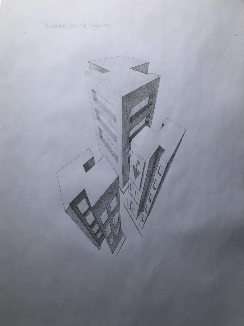 voici les 2 figures de l'exo #2. Je les ai dessiné avec plus de 2 points de fuites. Merci beaucoup pour tous les commentaires précédents sur les exercices, c'est très apprécié!