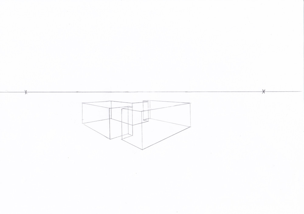 Pour que ce soit plus lisible, renforce les arrêtes visibles (à l'encre par exemple ou avec un crayon plus gras) et laisse les lignes en transparence au crayon.