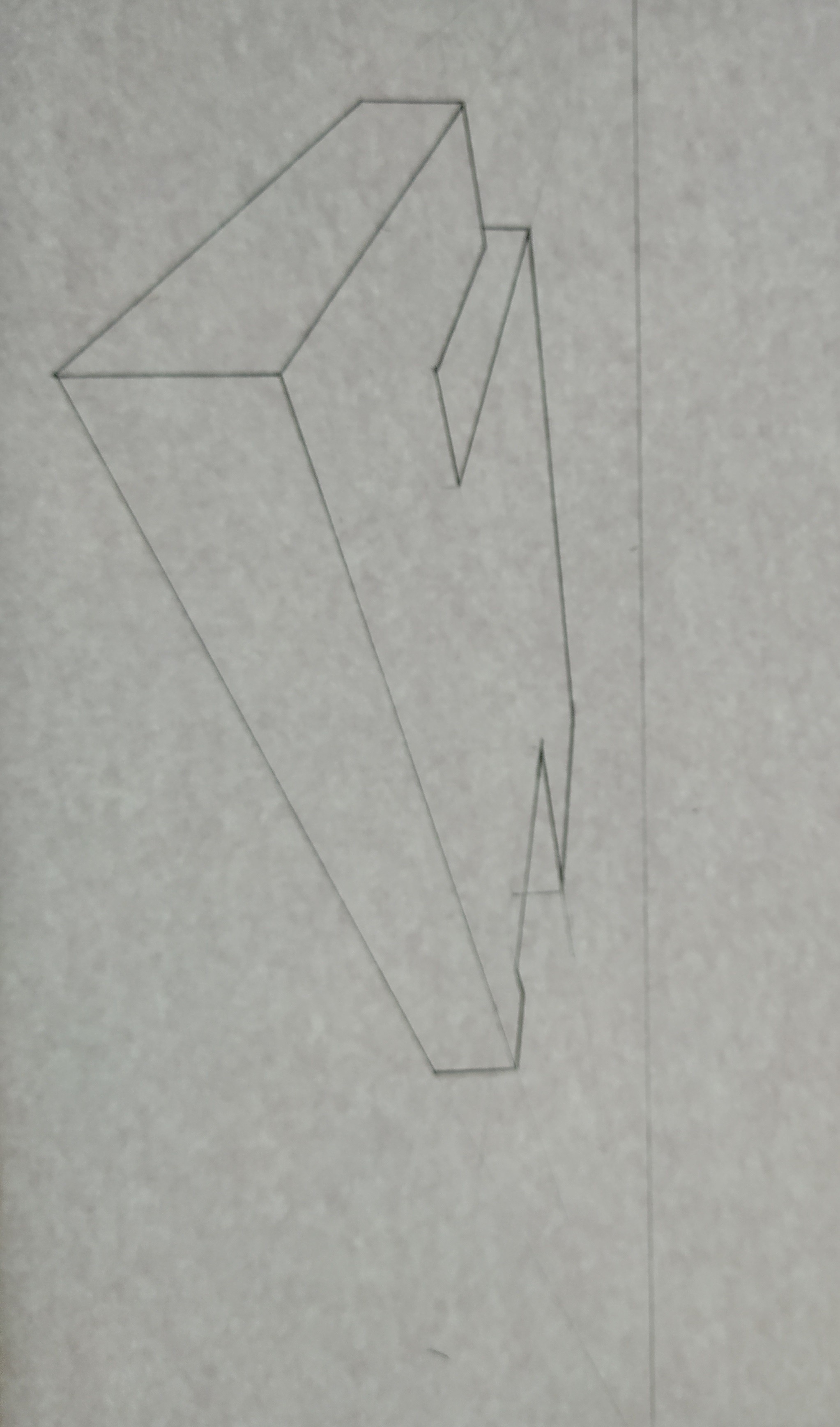 Si je peux me permettre une petite remarque pas grave du tout mais qui pourra peut-être te servir par la suite: Dans les consignes de l'exercice, Grégoire explique que les proportions ne sont pas "capitales" mais garde en tête qu'en perspective à 3 points de fuites, les "verticales" aussi sont déformées , et que donc tu ne peux pas reporter une longueur telle quelle pour avoir les proportions des choses. En plus ici ton point de fuite des verticales n'est pas très loin de la fin de ton objet, ce qui veut dire que la perspective est très forte et que le bas de l'objet est très très écrasé. Je t'ai griffonné rapidement ce à quoi ça aurait eu plus de chances de ressembler, et à gauche je t'ai mis très grosso modo l'équivalent de la forme que tu as dessiné (même si en vrai je pense que ce serait encore plus exagéré comme différence mais c'est pour te donner l'idée !)