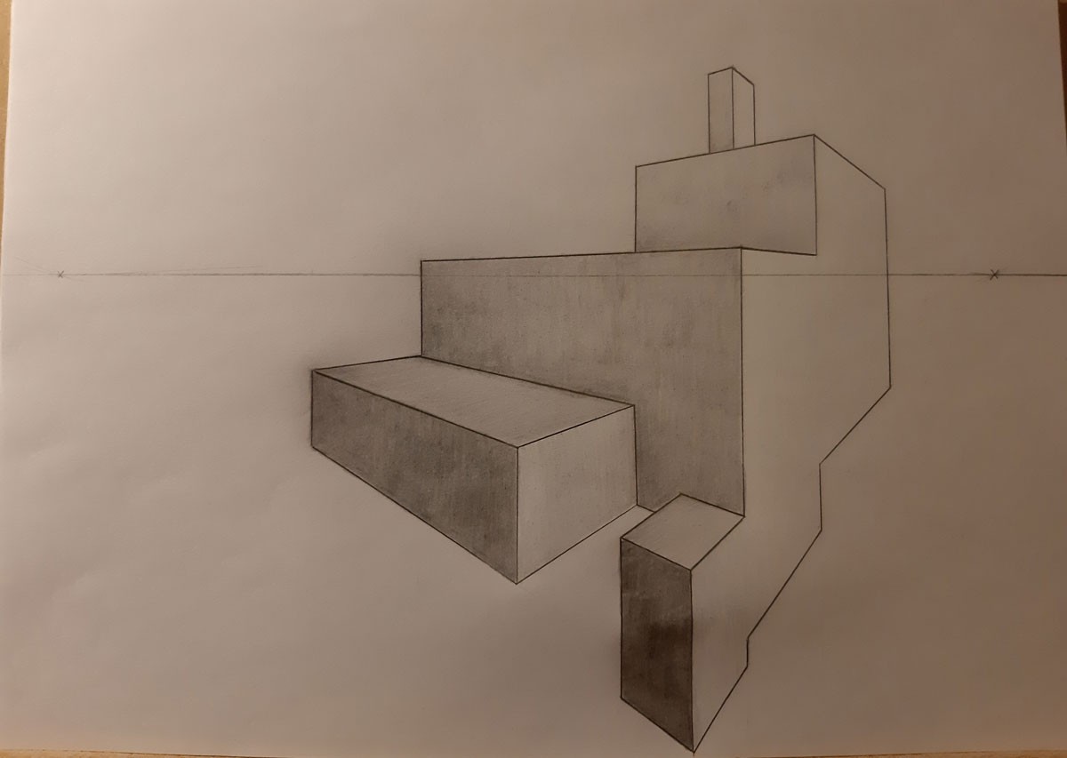La perspective est nickel et les valeurs au crayon fonctionnent très bien ! Beau travail ( ´ ▽ ` )b