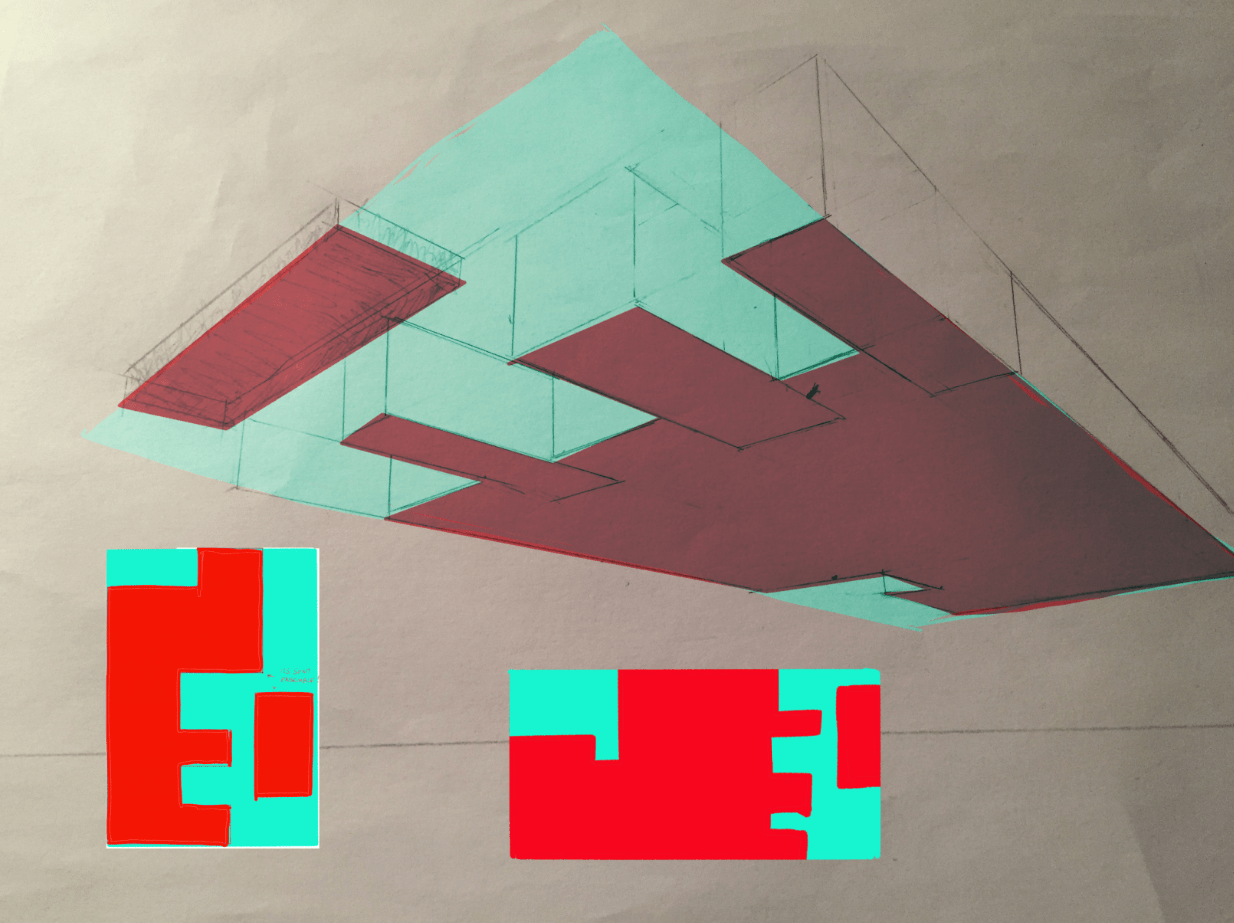 Tes deux blocs me semblent justes, par contre j'ai l'impression que tu les as fait en 1 point de fuite, je me trompe ? L'exercice demandait au moins 2 points de fuite !