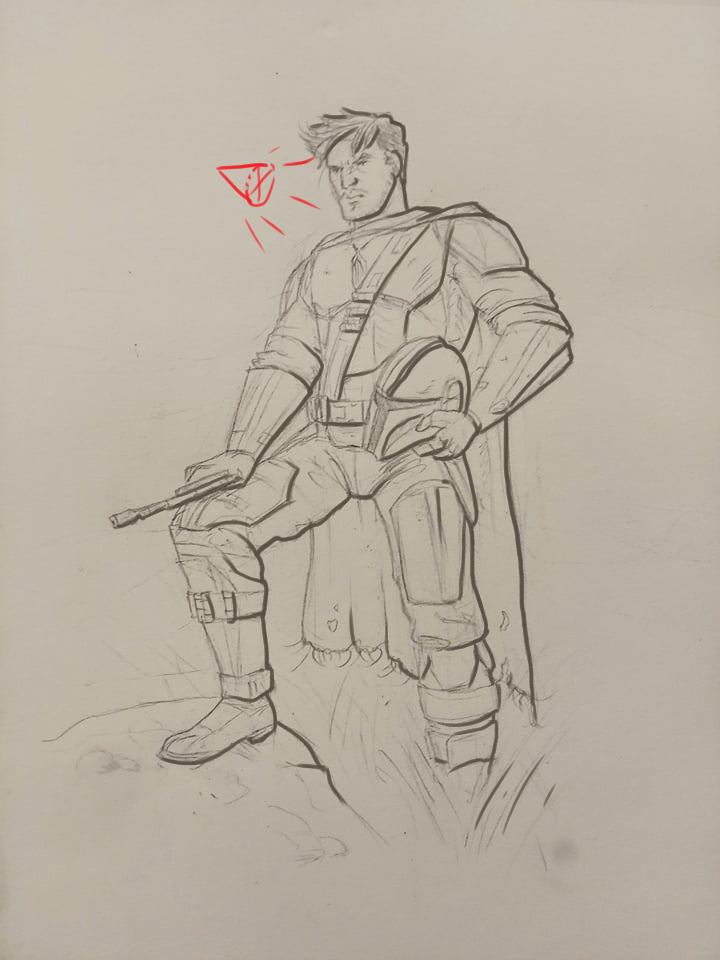 In meiner Zeichnung startete ich von dem Prinzip, dass das Licht von links kam (außerdem merke ich, dass ich in 2D denke, wenn ich sagen konnte, dass das Licht von links und aus dem Charakter kommt)