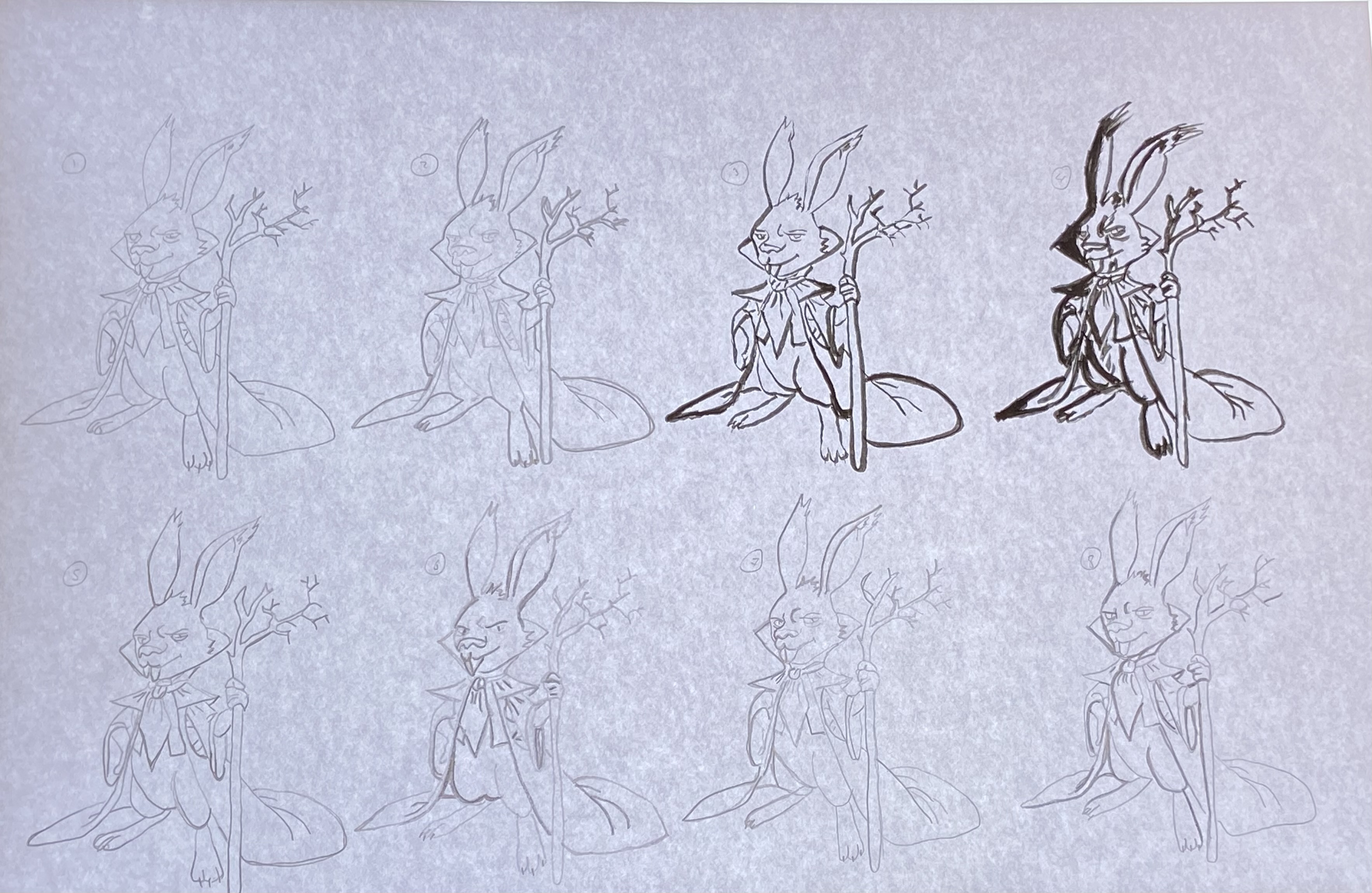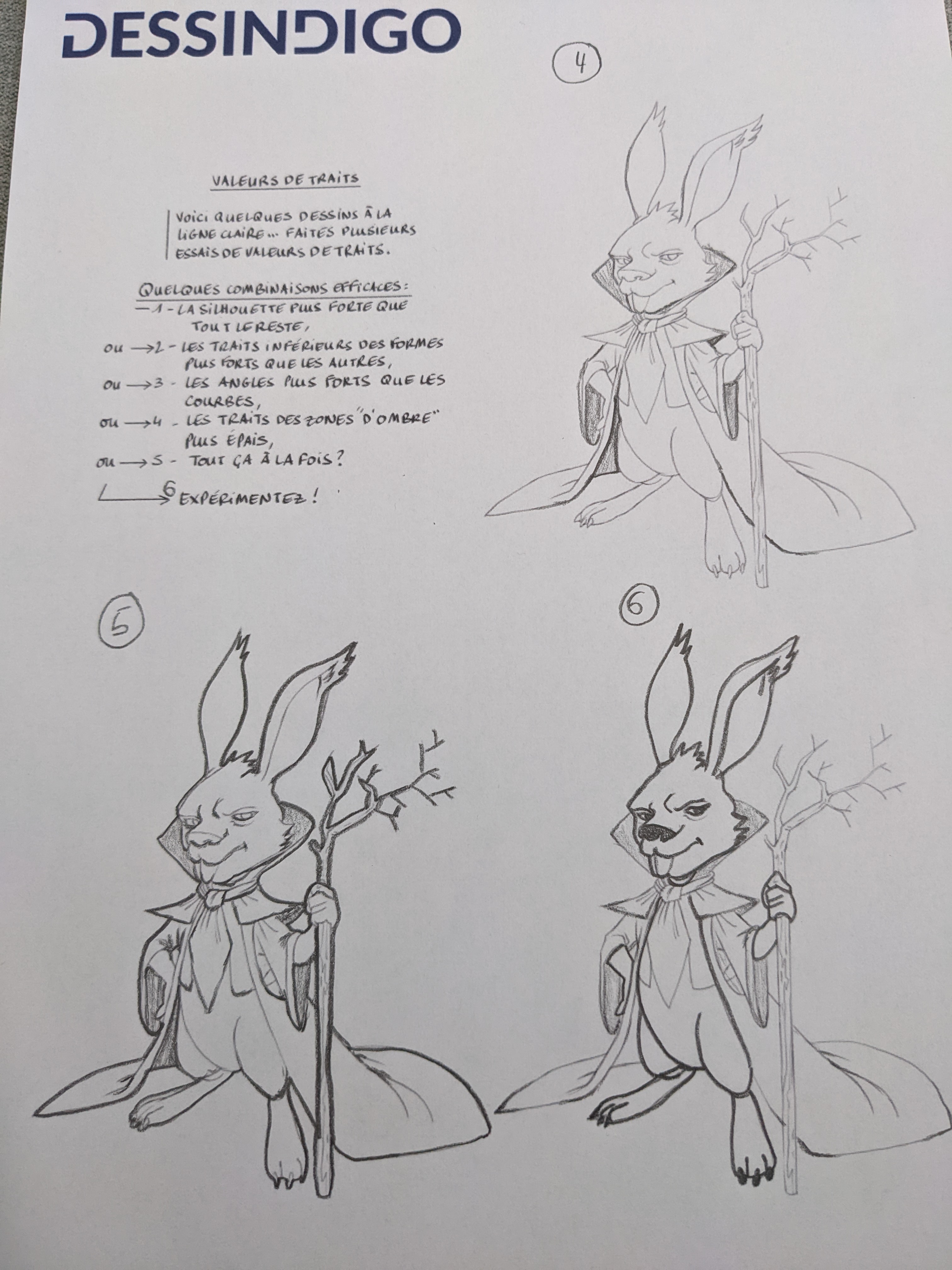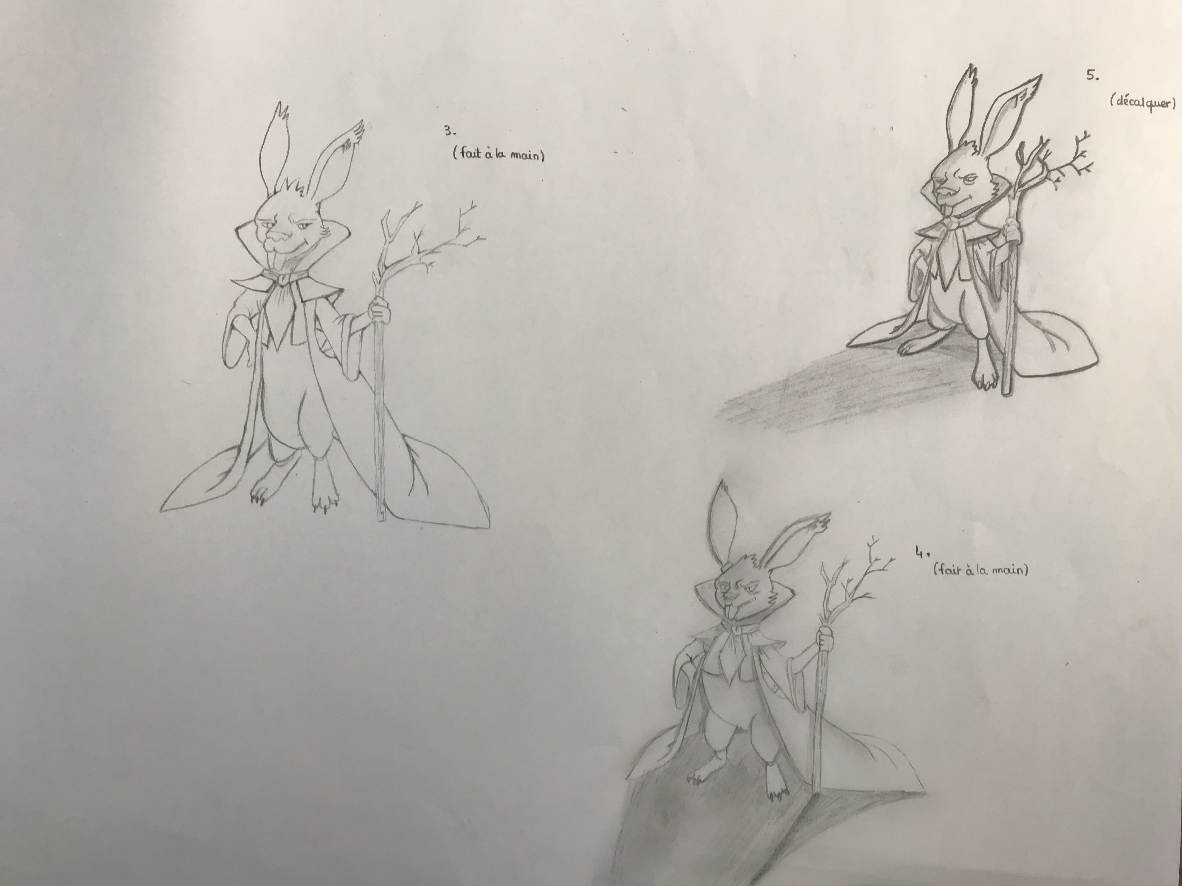 Merci de ton retour Nayala, le 6 et le 7 etait vraiment des test sans intention réel (le 7 c'etait marquer les traits que d'un coté du lapin comme si la lumiere venait exclusivement de la droite et le 6 je ne sais plus :-) ).