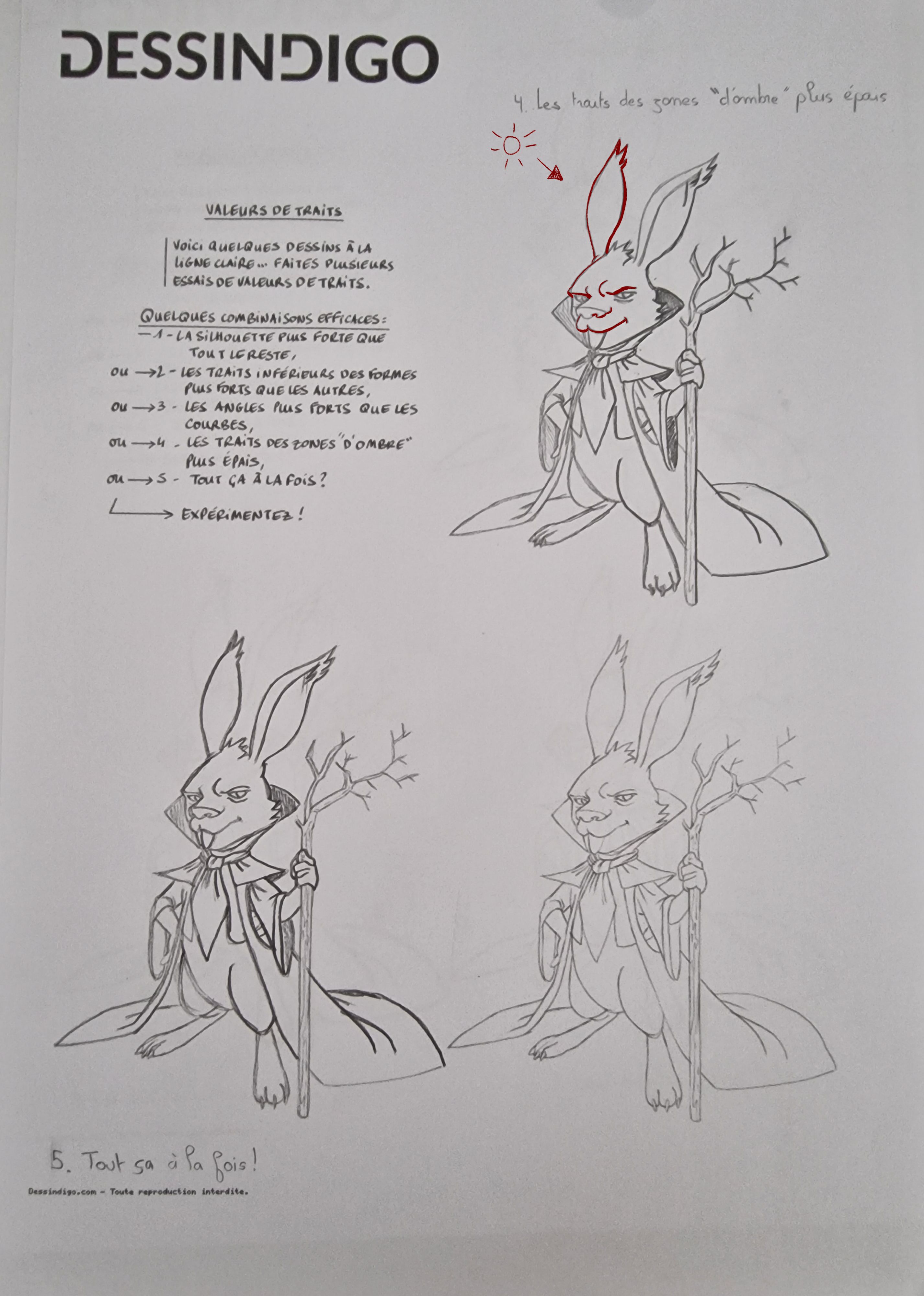 Très bien! Même remarque que précédemment, vas-y plus franchement sur les variations. Pour le 4 définis bien ta source de lumière pour bien travailler les différences d'épaisseur.