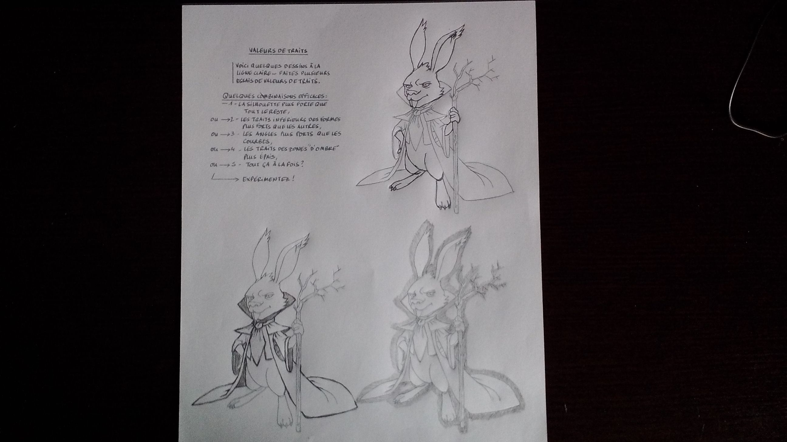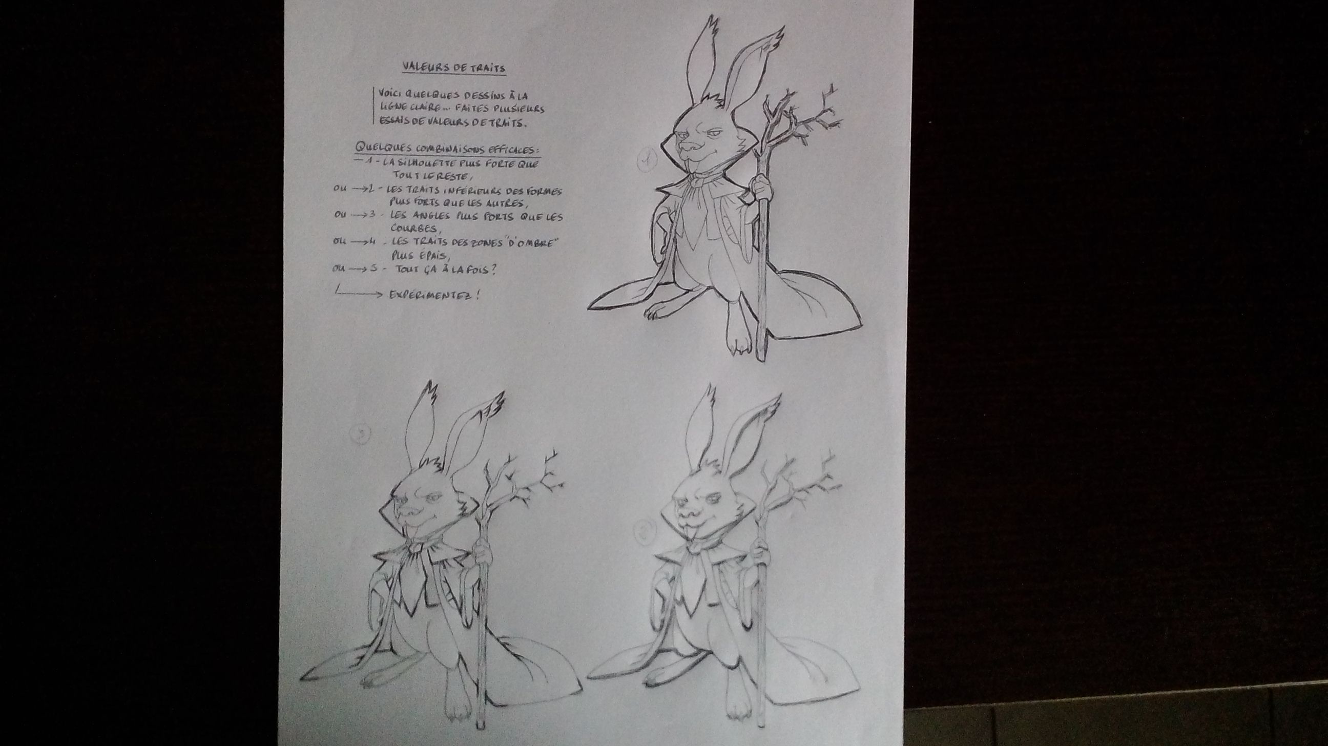 Bonjour JeanMichel, C'est très bien tout ça! Je pense que tu peux davantage accentuer les différentes valeurs de trait, et ce sera parfait!