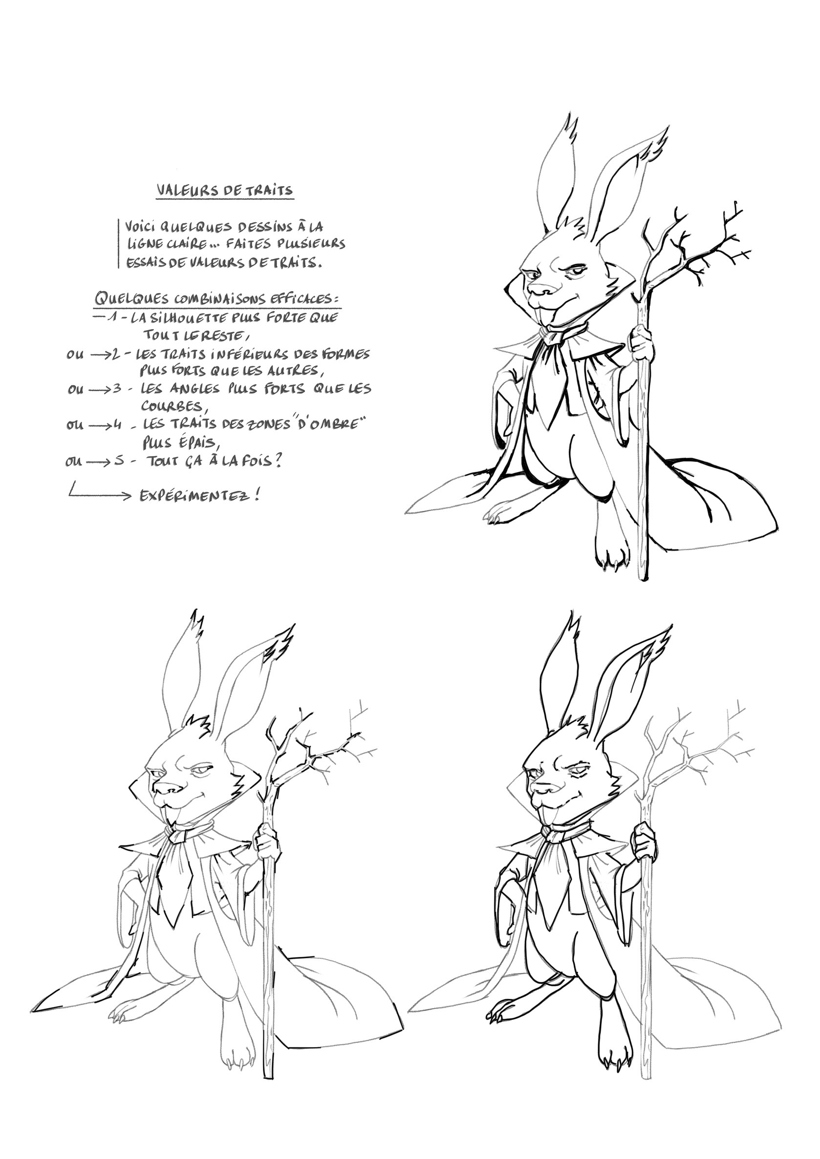 Sur le premier, tu as épaissi certaines zones intérieurs ! Essaie d'accentuer davantage les différentes épaisseurs de traits sur le second et tu obtiendras un super rendu! Pareil pour le dernier, en faisant attention de tenir compte d'une source lumineuse pour le choix d'épaisseur de ton trait.