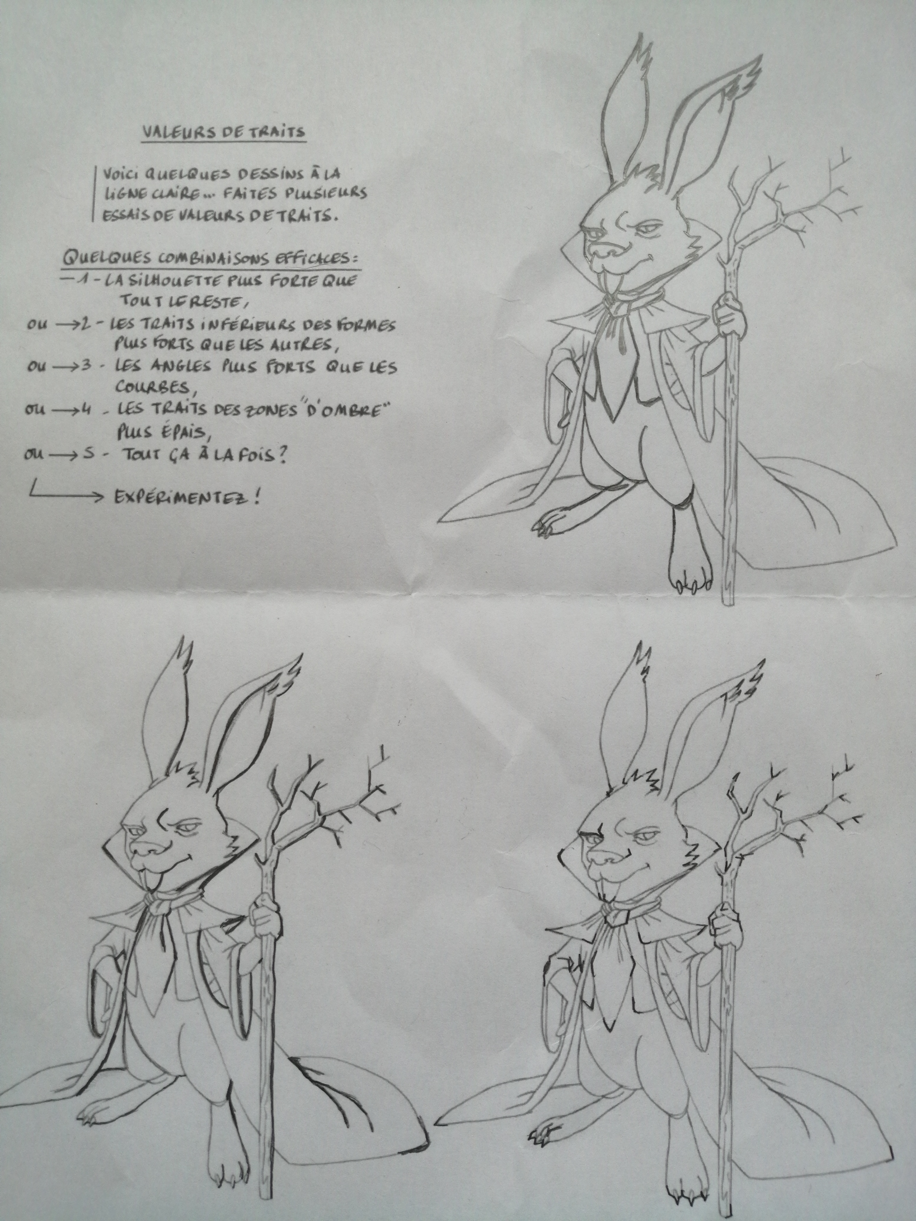 Bonsoir Sylvia! C'est du beau boulot tout, et tu as bien varié les différentes valeur de traits sur tes exercices. Pour celui avec le contour épais, je dirais juste que tu aurais pu l'appliquer à la cape et à tout le contour, ça aurait bien fait ressortir le tout. Bref, c'est super, je n'ai pas grand chose à redire. :)