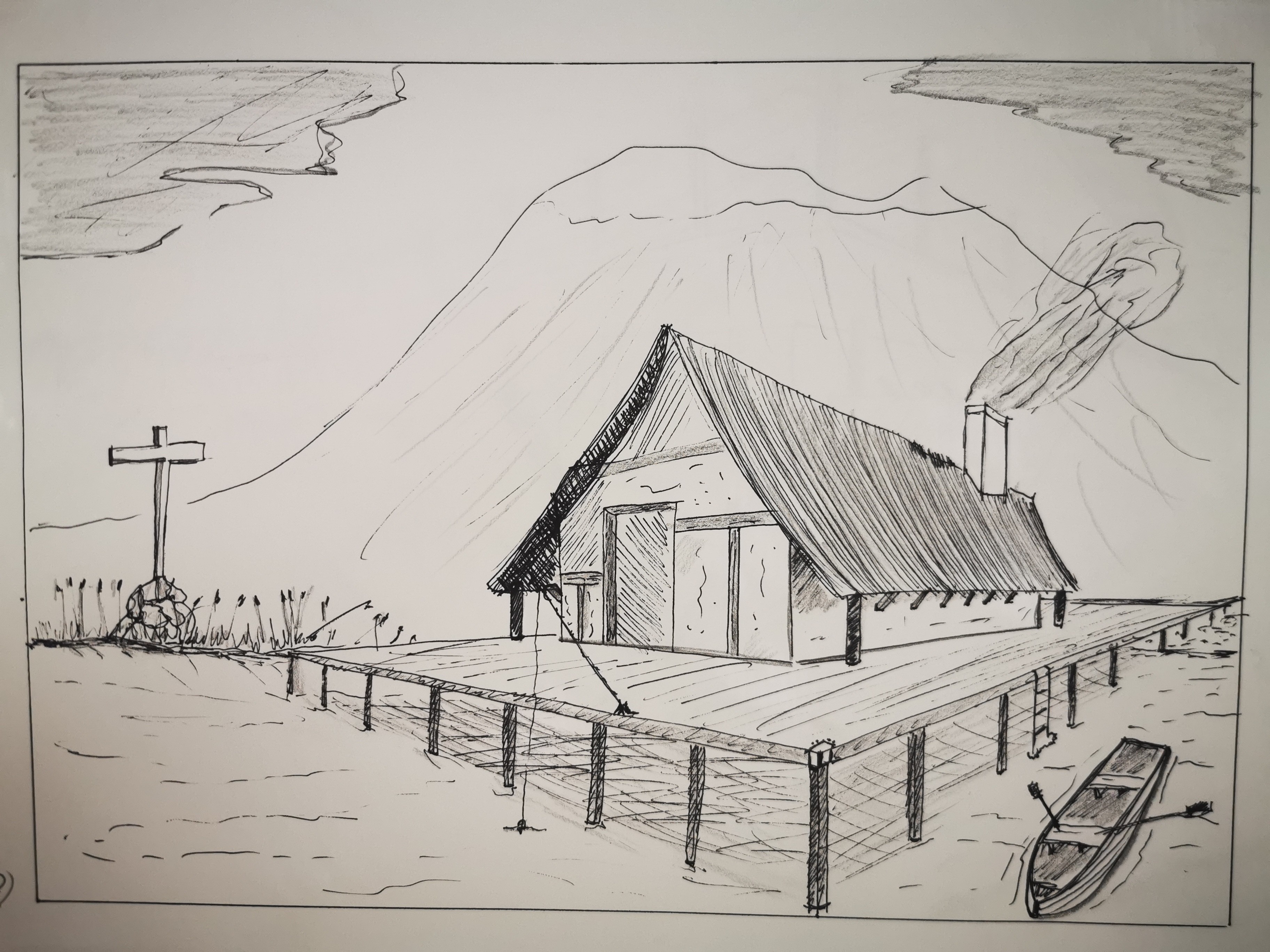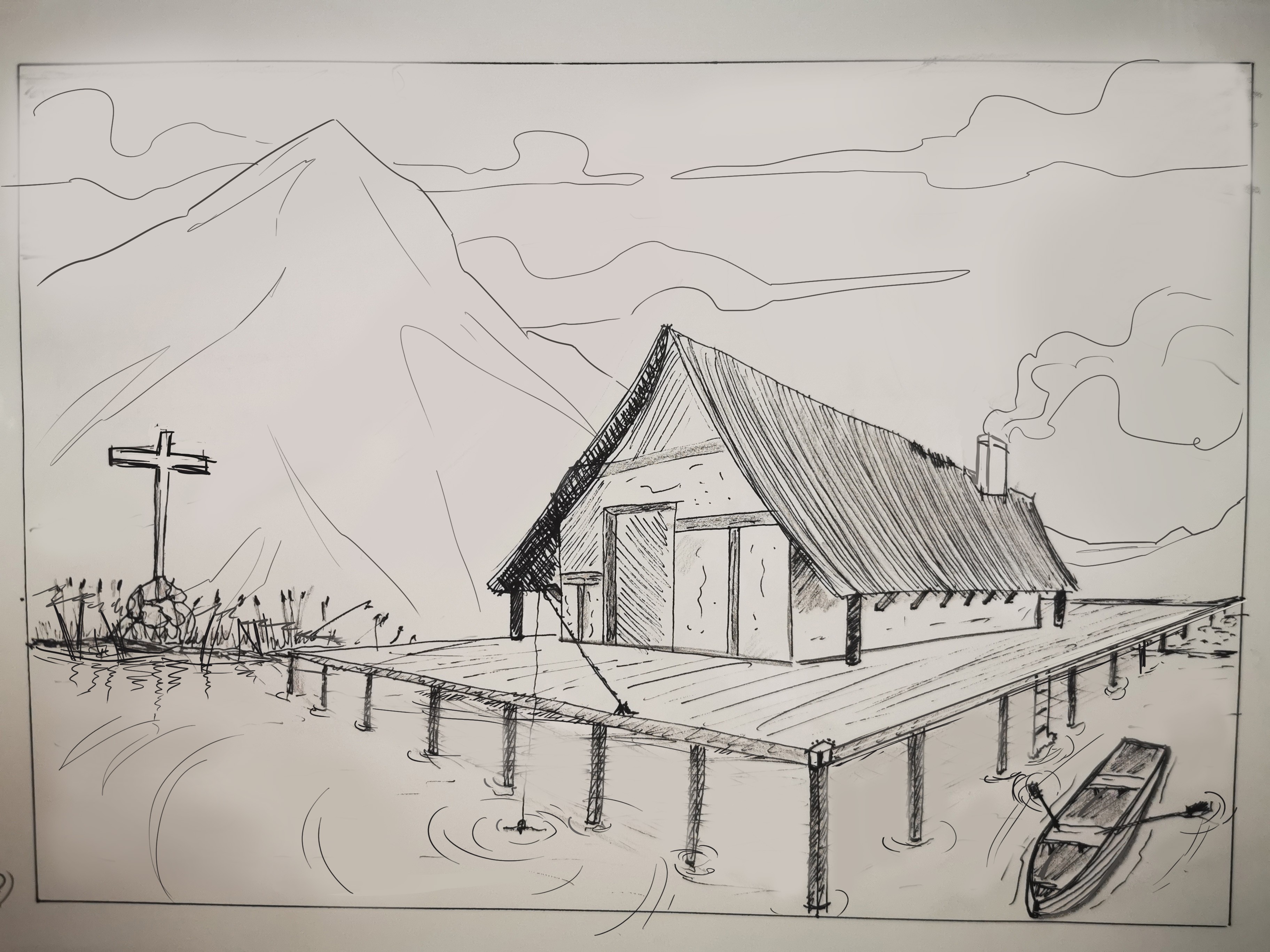 Déjà je vois un problème de perspective entre le sol de la maison et le ponton sur lequel elle est posée, et la maison qui a une cheminée énooooooorme. La barque est plutôt bien je trouve ^^ C'est dommage que tu aies mis une grosses montagne qui englobe totalement ta maison, ça aurait été plus intéressant de la décaler légèrement. Idem, tu n'as pas appliqué la perspective sur la croix. Je vois des zigouigoui sombres dans le ciel, je table sur des nuages, positionnés presque de manière symétrique. Il y a un article dans la partie blog du site concernant les nuages, n'hésite pas à aller y jeter un œil :D