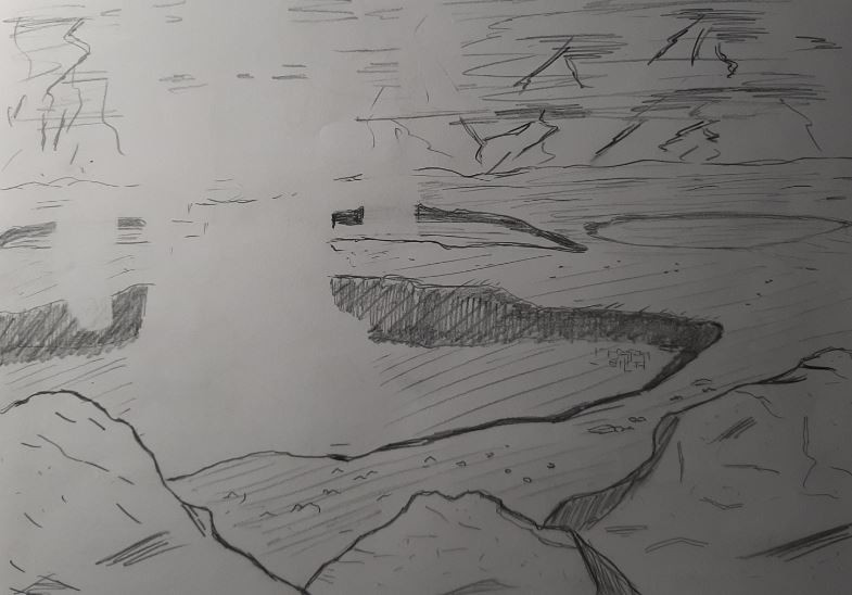 Ich machte dann Pochades, um herauszufinden, wie ich meine Zeichnung aufbauen würde, und ich gebe zu, dass die Ideen wenig zu wenig kamen, ich kannte diese Methode nicht und ich freue mich, sie gelernt zu haben.