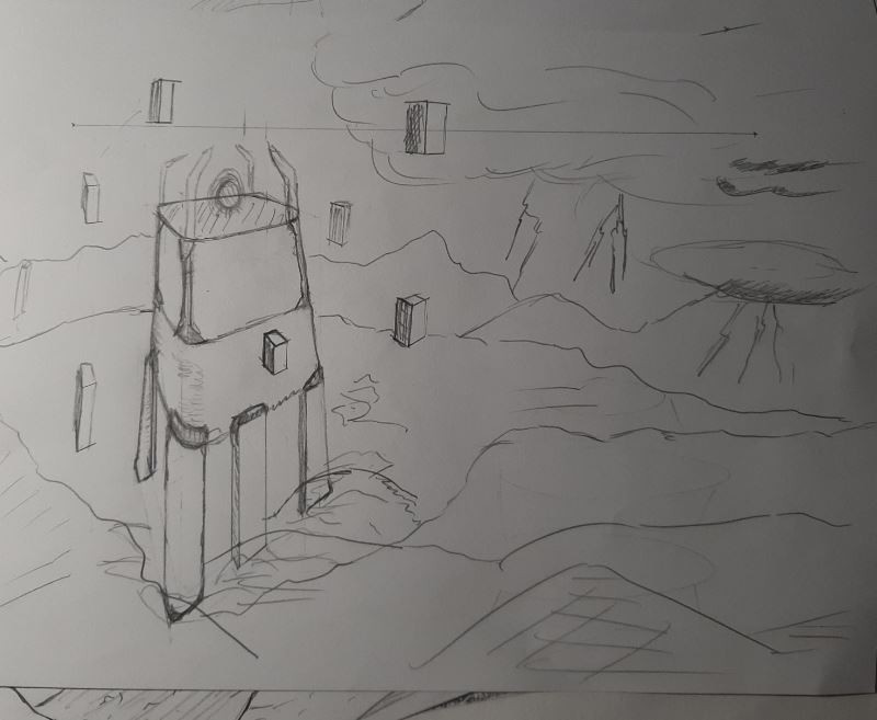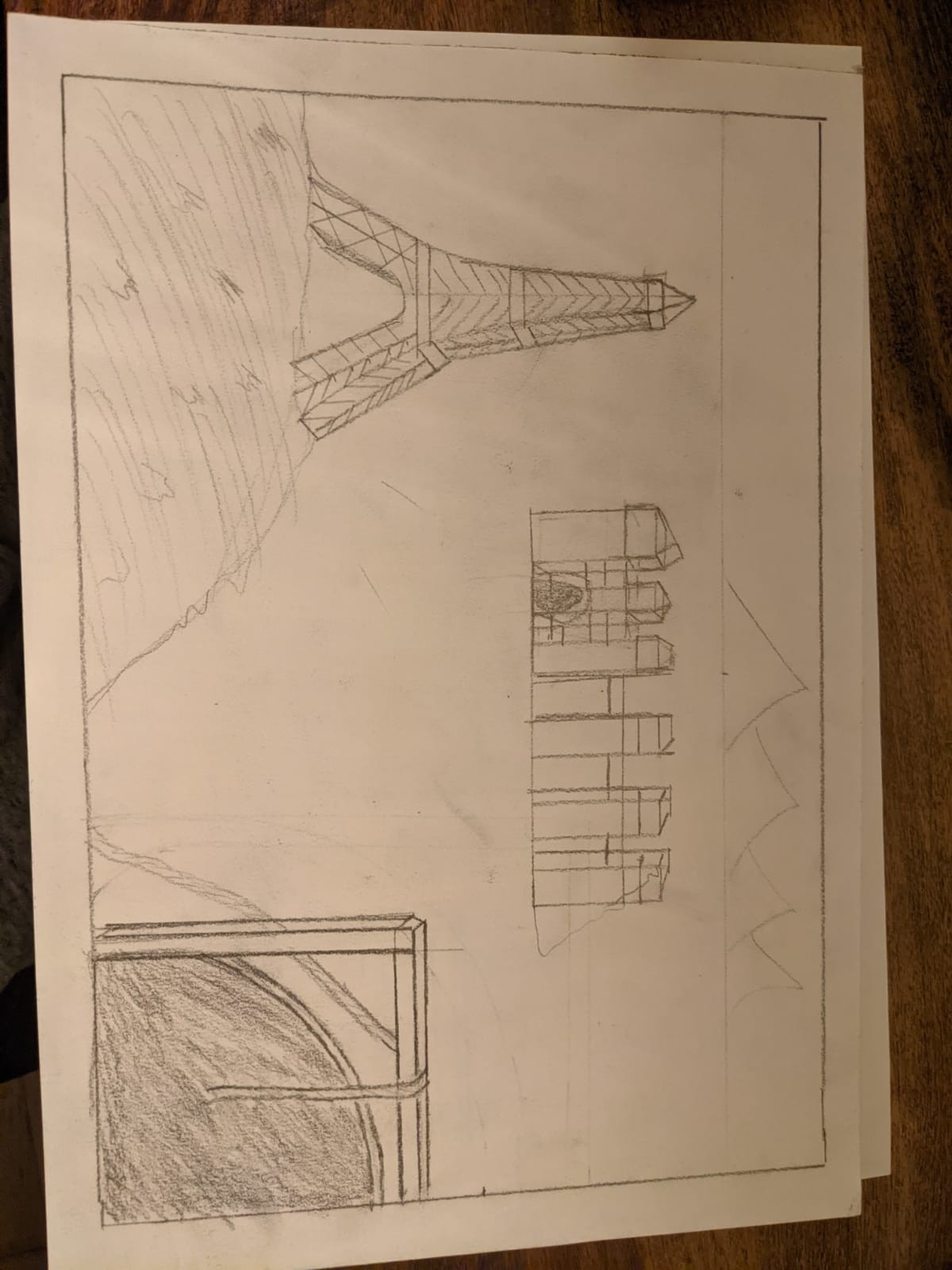 Je ne l'ai pas joint mais avant ce dessin final jai étudier la pyramide dans toute ses formes (de côté, de dessus etc..) comme vu sur les cours précédents.