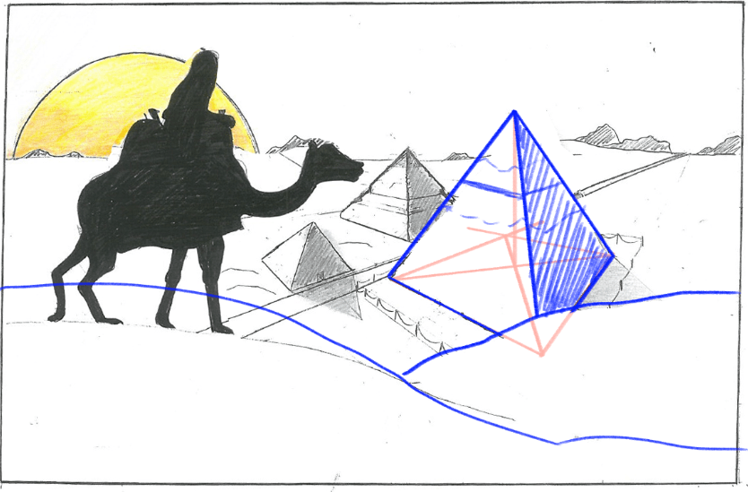 Ich habe es nicht angehängt, aber vor dieser endgültigen Zeichnung studiere ich die Pyramide in all ihren Formen (Seite, oben usw.), wie es in früheren Lektionen zu sehen ist.