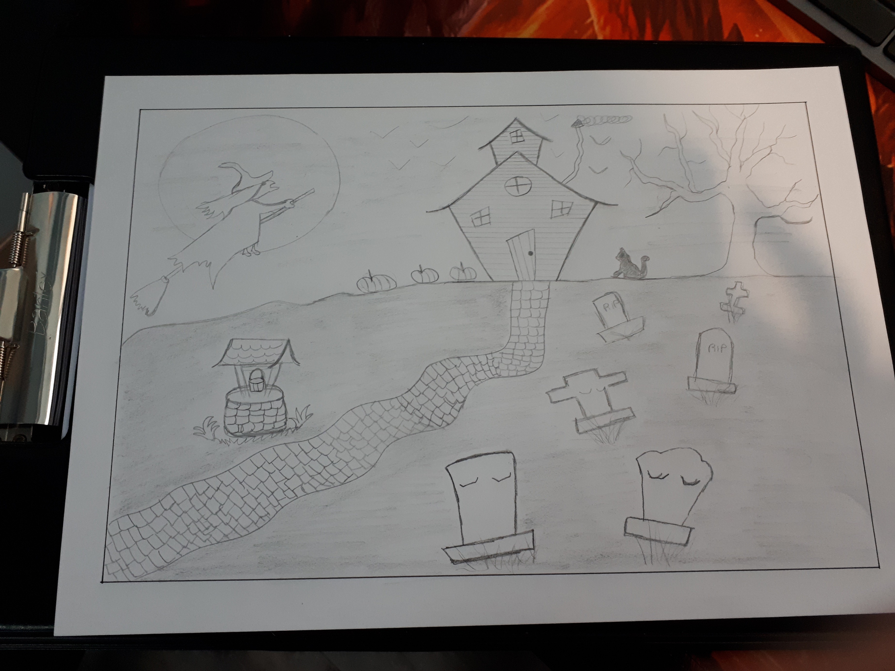 Gute Arbeit an dieser Zeichnung! Die Komposition ist erfolgreich :) Deine Häuser sind sehr süß, ich mag es sehr. Wir sehen, dass Sie sich bei der gesamten Zeichnung gut beworben haben.