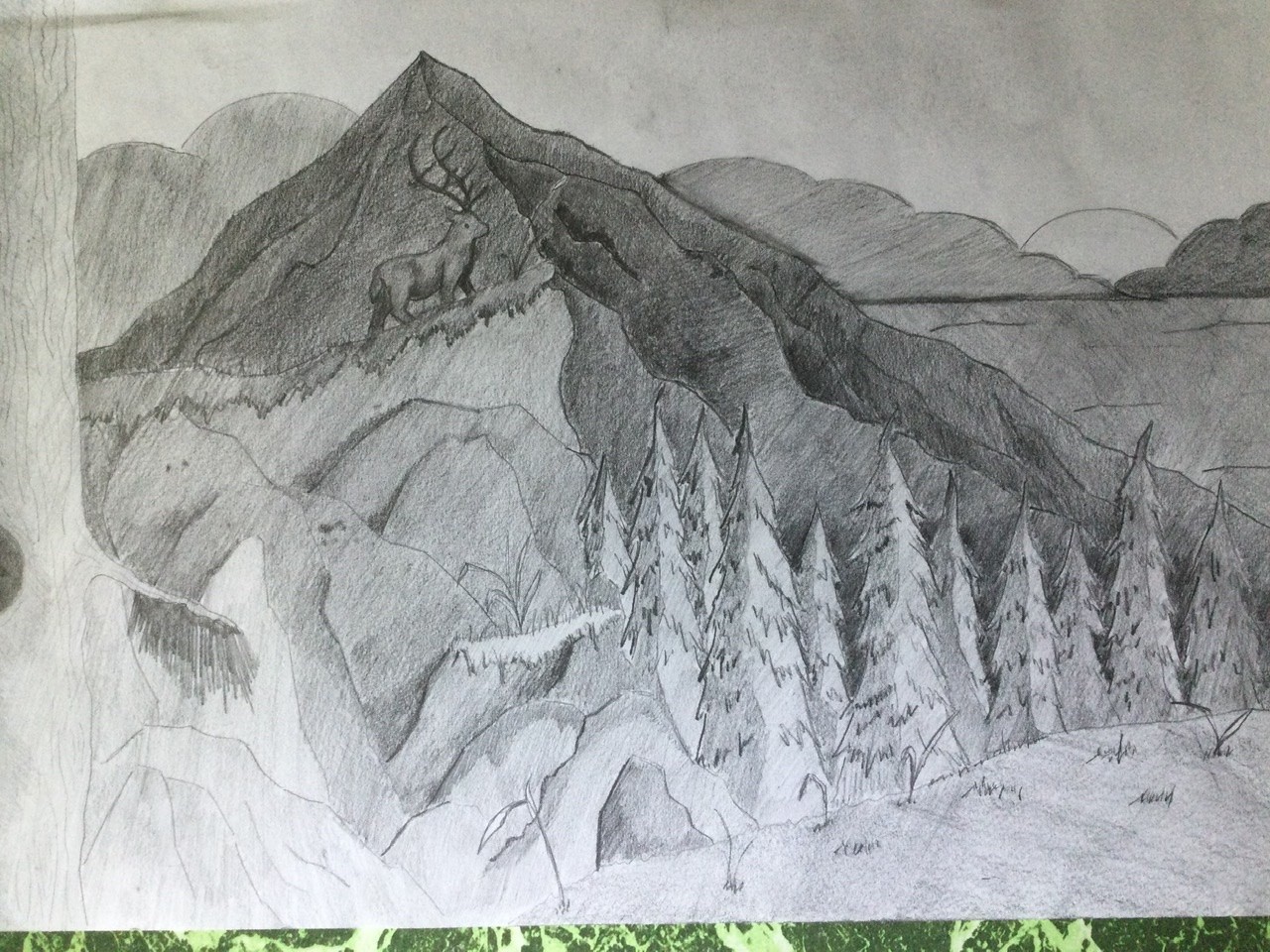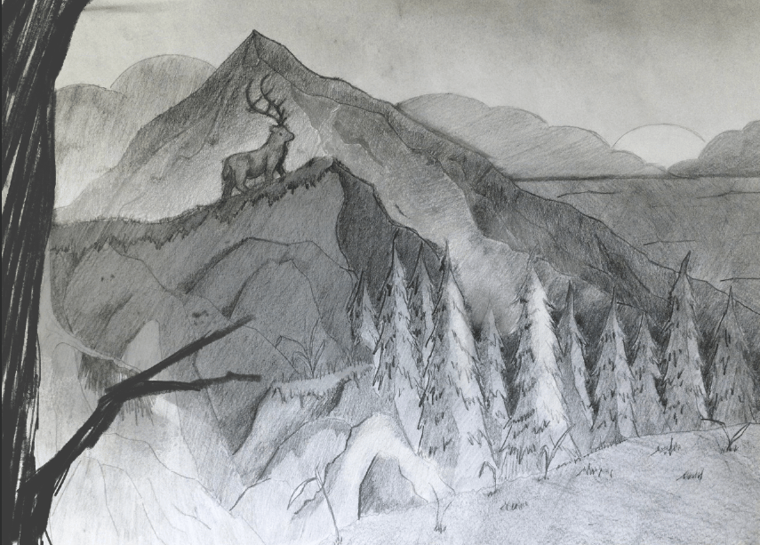 Es ist auch eine Schande, dass Ihr Hirsch in Bezug auf die Werte sehr stark vom Berg aussticht, bis zu dem Punkt, dass wir es kaum auf der Miniatur sehen. (Tipp für das Wissen, ob wir eine Zeichnung haben, die in Bezug auf Komposition/Werte funktioniert: Wenn wir sie in allen Piti betrachten!) Hätte sich das verbessert, ein wenig hinter ihm, was klarer ist, dies verbessert hätte