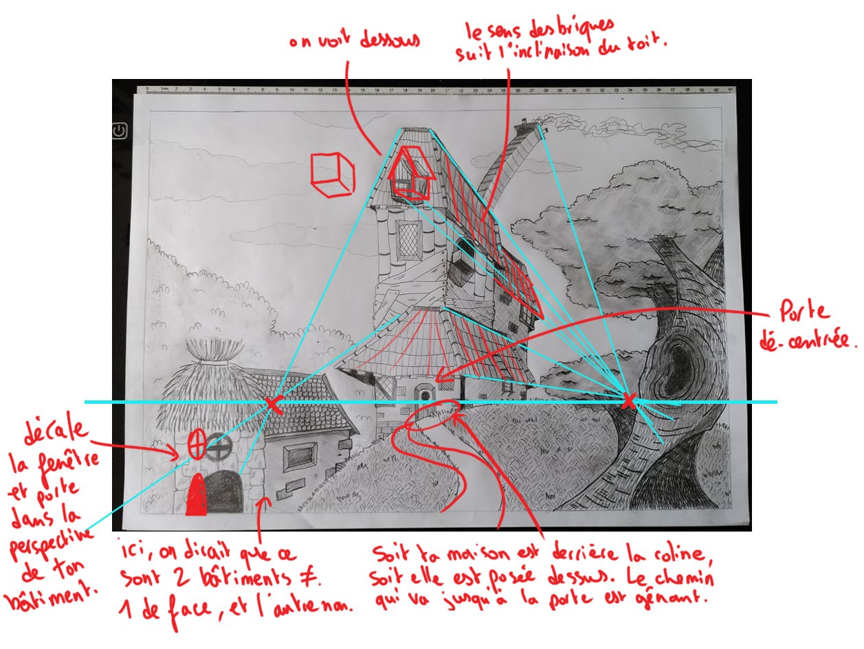 Ton dessin est très réussi dans l'ensemble. Voici quelques mins corrections que j'ai à t'apporter.