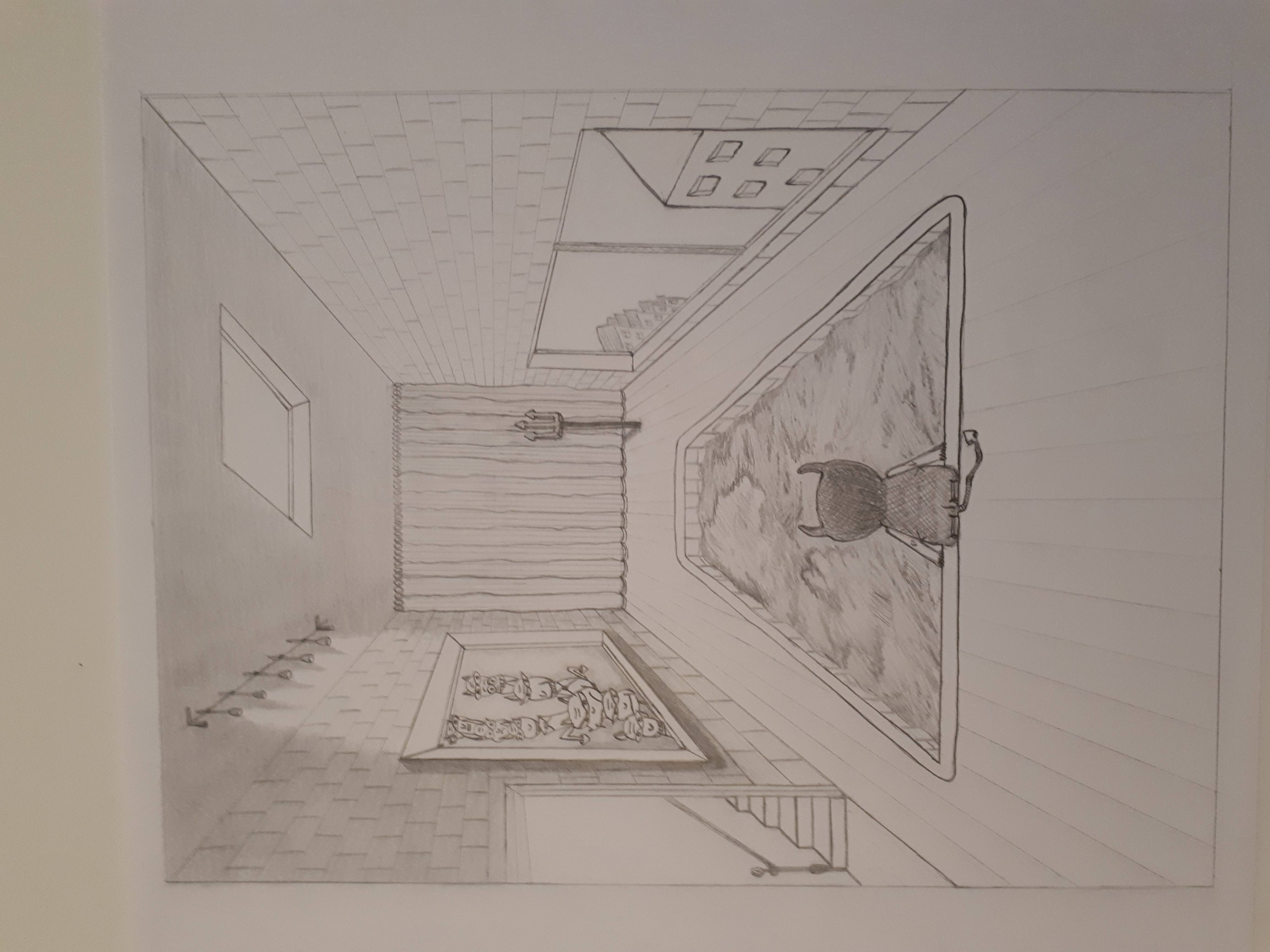 Bonjour Nanoue ! C'est vraiment un dessin très sympa bravo ! Plusieurs points à corriger cependant, ta piscine et ta fenêtre en haut ne sont pas dans la même perspective que le sol ! J'aurais aussi assombri et ombré la pièce à côté et la fenêtre sur l'extérieur, et travaillé mes valeurs d'ombrages pour faire ressortir ce qui importe vraiment dans l'image.