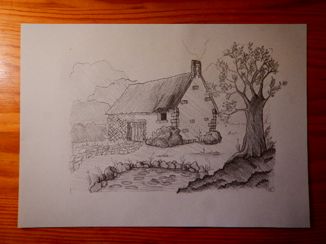 Meine erste Illustration. Keine Kopie, ich ließ mich von der Legende der Follet -Brände (Kinder nicht getauft/Reisende der Hilfe) inspirieren und das Gebäude ist nicht in Trümmern der Dunlewey -Kirche. Ich folgte Schritt für Schritt, als mir das Ergebnis hinten, aber ohne Schuldgefühle gefiel. Diese beiden Videos sind in Bezug auf die Pädagogik einfach unglaublich. Danke