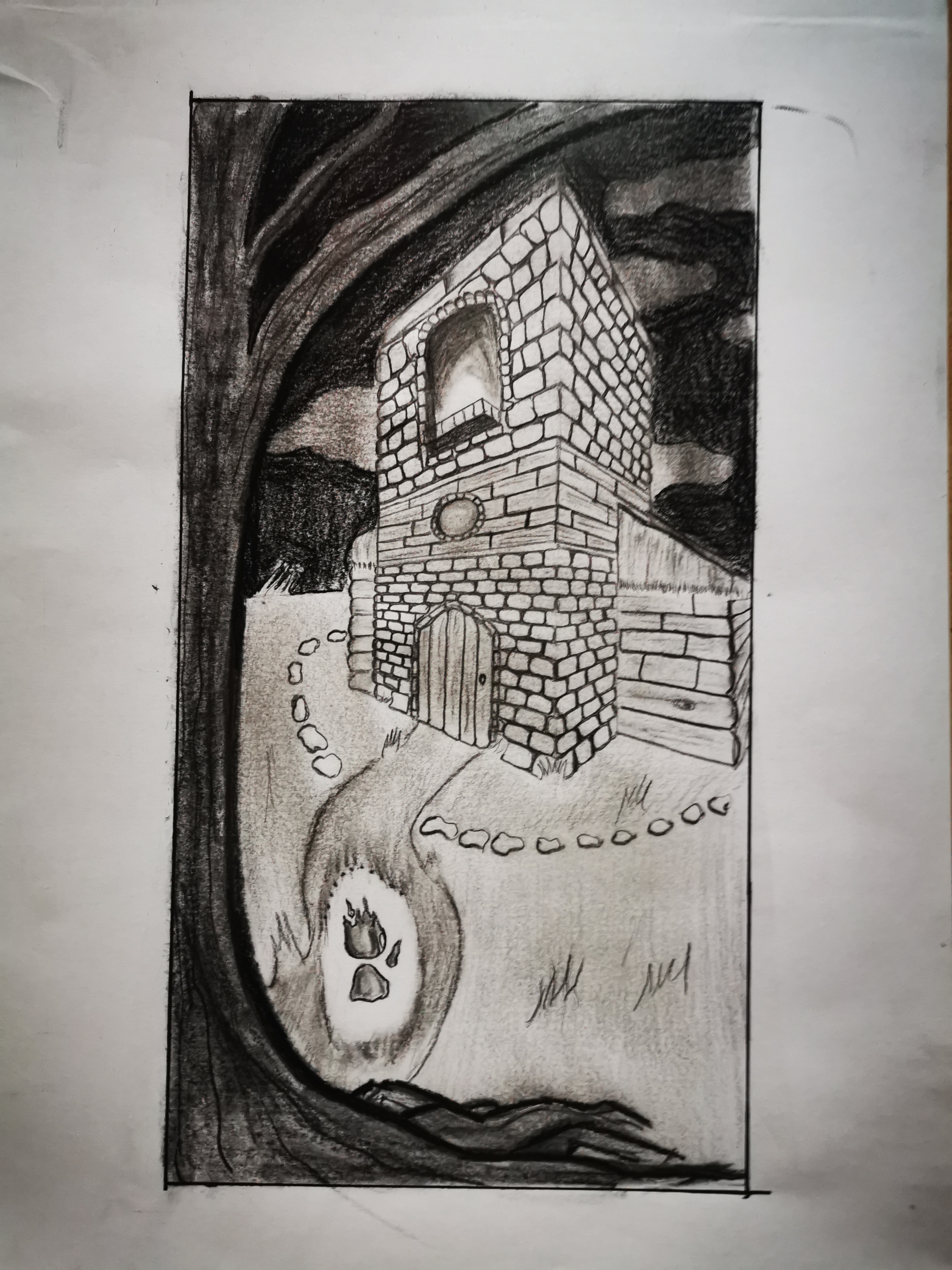 Bonjour Grenatique ! Ton dessin est plutôt réussi, bravo à toi ! J'aurais cependant utilisé un outil moins gras pour tes ombrages. Là, ça fait un peu "sali" et tu n'as pas d'ombrages sur ton élément principal (le bâtiment) Le feu follet quand à lui, aurait pu justement être entouré d'ombres et laissé blanc (le blanc de la feuille) pour paraître lumineux :) Voilà j'espère que mes remarques t'aideront à progresser !