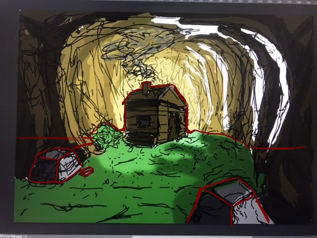 Pour les blocs de terre je pensais qu'il fallait que je les fasses n'en fonction de mon point de fuite c'est pour ça qu'ils ont cette forme. Merci nde l'astuce pour l'herbe 😀😀😀