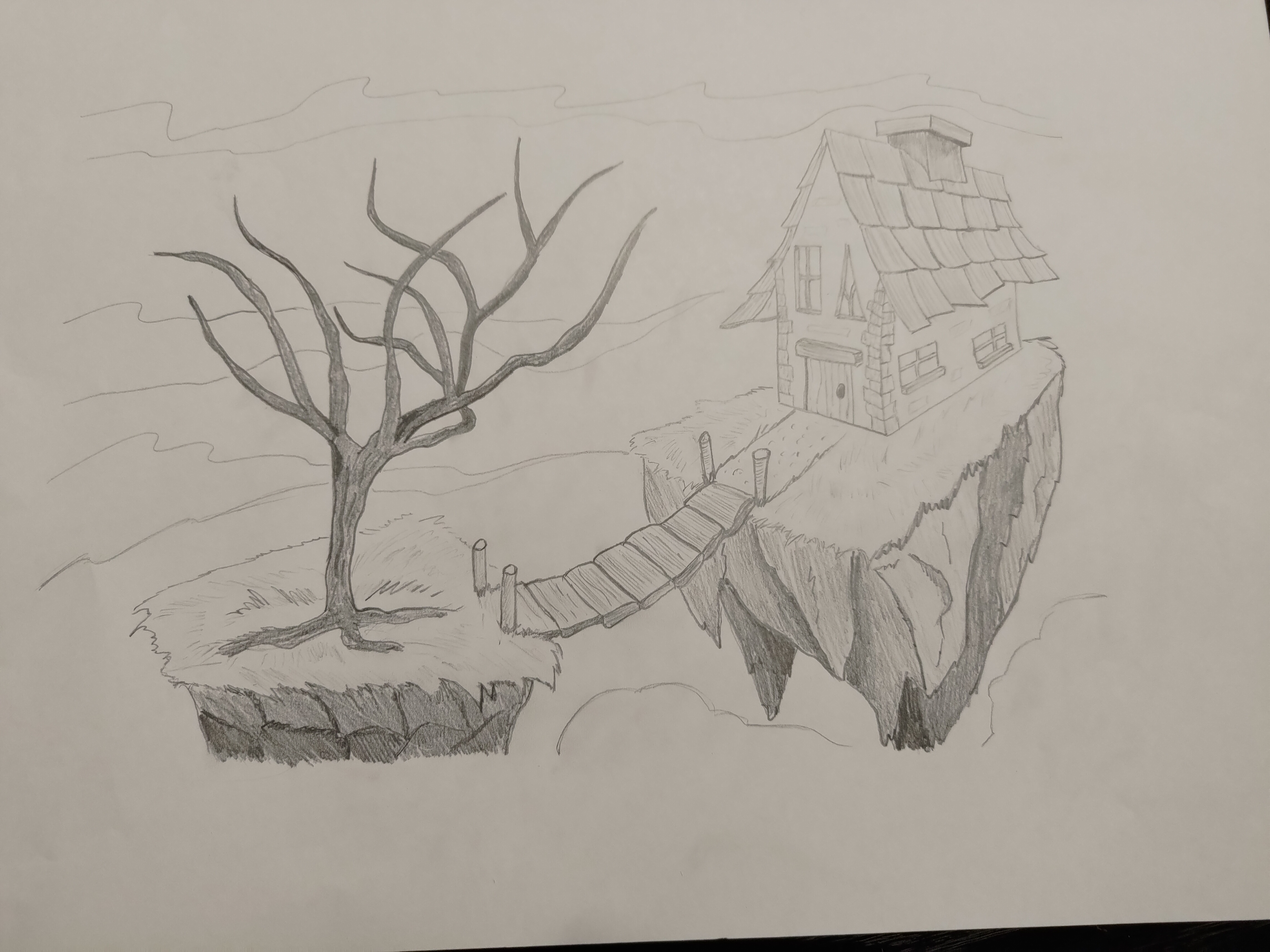 Versuchen Sie für die Wiedergabe des Gras, nicht zu viele Details, vereinfacht die Gesamtform und dekoriert ein paar Bereiche mit Krämenten, die hier und da Stränge sind ... Sie werden klarer sehen. Achten Sie darauf, die Formen Ihrer Landblöcke in der Levitation in Ihrer Perspektive zu visualisieren.