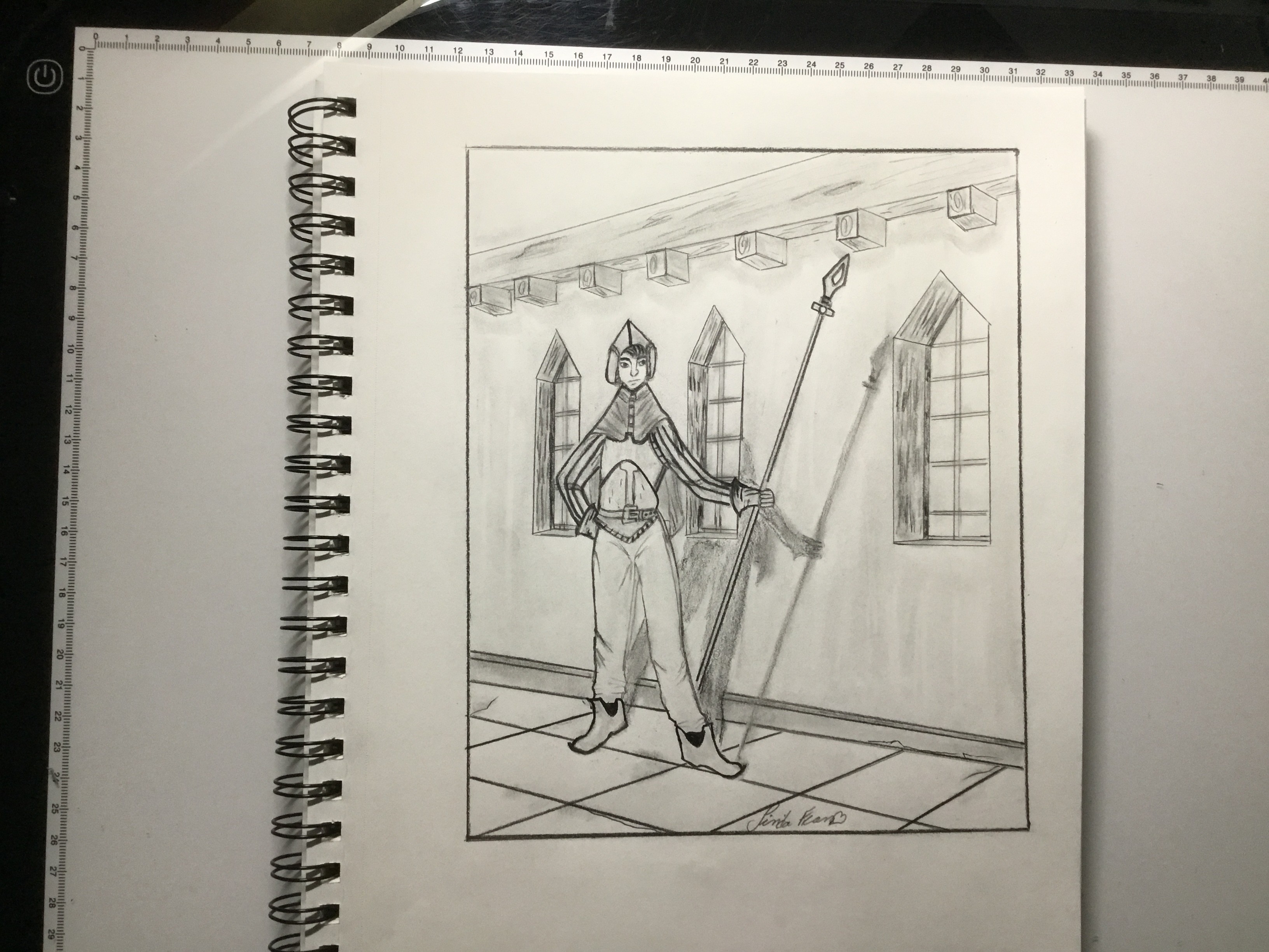 Bonjour Rakjah j’en ai fait un autre j’ai tellement pratiqué ce dessin tu vois surement une amelioration sur mon personnage enték j’espère se sont mes premiers perso. Pas facile mais je pratique énormément j’ai refais ce dessin au moins 4 fois si ce nest pas plus cette fois ci j’ai essayé de le faire plus vieillot, Il nest pas encore parfait mon gros gros défaut je suis perfectionniste et un gros manque de confiance en moi cela se peut il que la botte de droite est un peu plus grosse je ne suis pas sur il y’a quelque chose qui cloche le bras gauche je n’arrive pas faire mes lignes droite je ne sais pas si ma perspective de tout mon dessin est bonne mais j’ai bien hâte d’avoir tes conseils il y’a surement bcp de défauts. Je pratique bcp bcp.