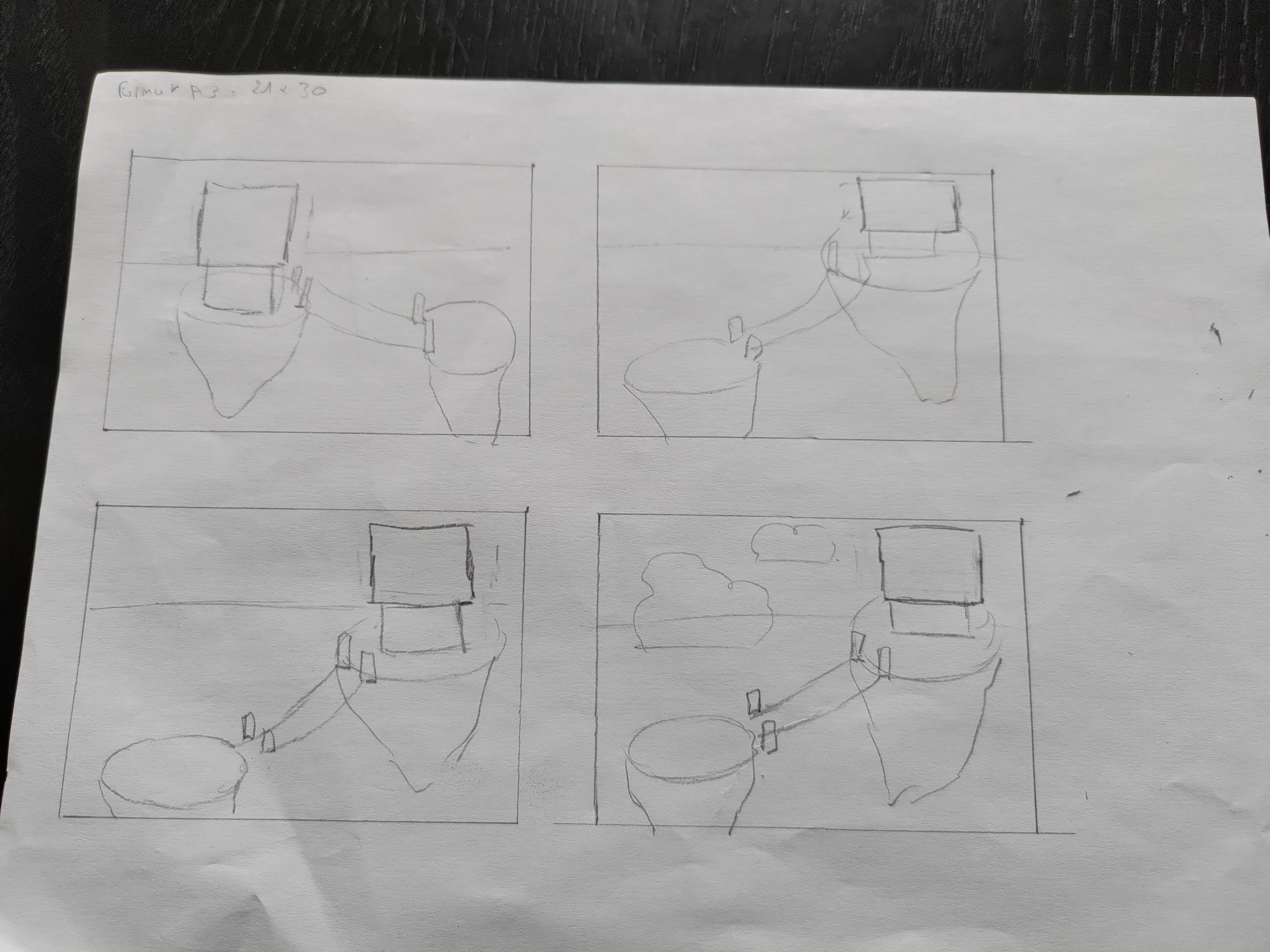 Super Ihre Idee der Illustration, und Sie haben Ihre verschiedenen Elemente gut studiert, es ist cool! Ich denke, Sie können mehr Spaß an der Komposition Ihres Bildes und seiner Inszenierung haben. Bei einem solchen Thema wird eine eintreffende Sichtweise (wie Sie in Ihrer neuesten Studie begonnen haben) oder in einer Gegeneinry eine bessere Darstellung. Aber Sie können andere Winkel und Platzierung testen. Ihre ersten Pochades haben wenig Unterschiede voneinander, versucht andere Winkel, fügt Elemente hinzu (wie andere Formen, die zum Beispiel schweben).