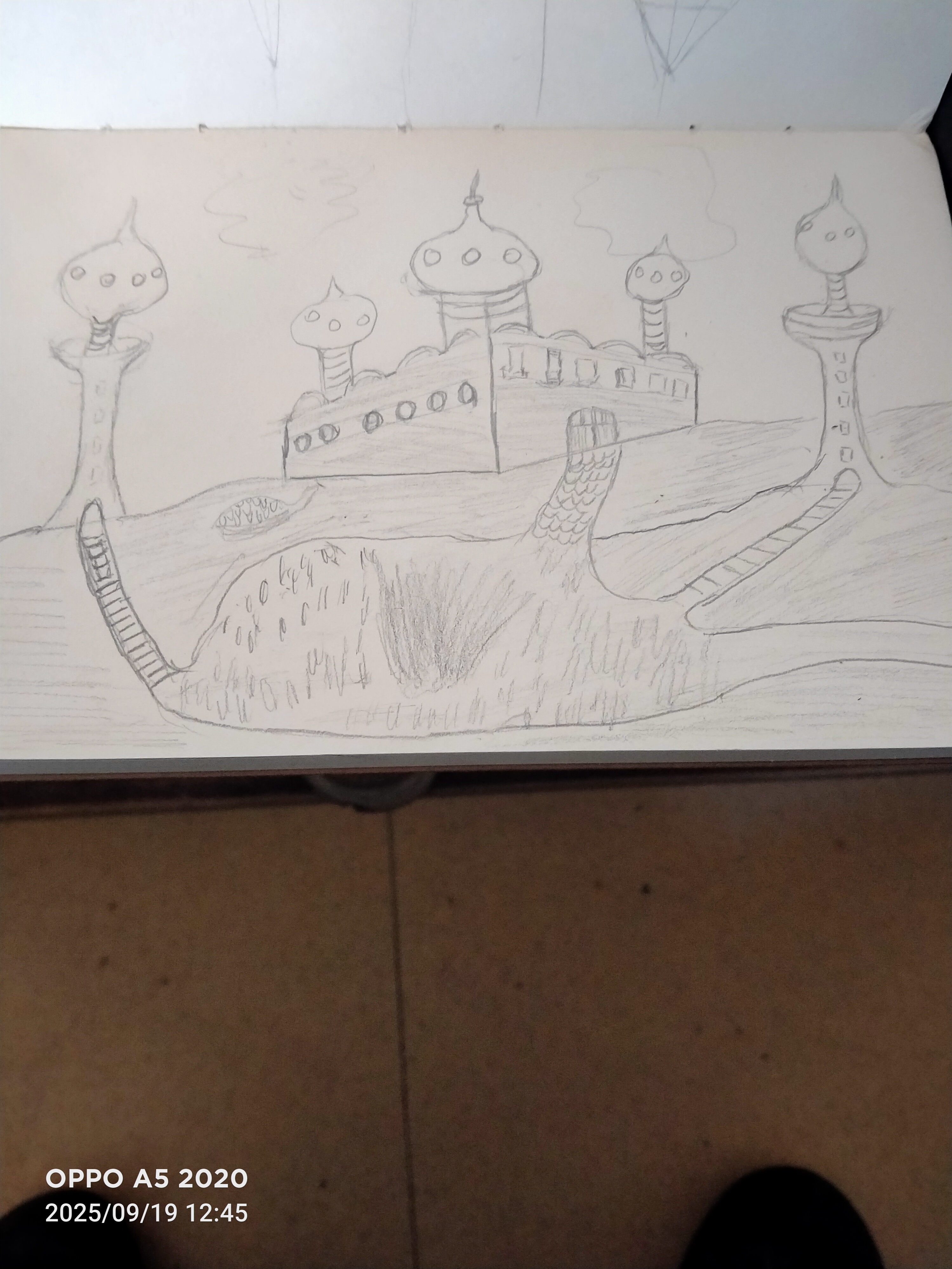 Es ist ein Vorschlag voller Fantasie. Ohne Zweifel ist es nicht einfach, ein solches amblerisches Projekt in die reale Welt zu bringen. Um sich zu verbessern, können Sie Ihr Image jedoch mit vielen sekundären Elementen fördern, da es sich um eine Landschaft handelt. So können Sie Steine und Sträucher hinzufügen, um etwas im Weltraum in die Türme und in das Schloss zu füllen. Sie können auch einige Tränen an den Wänden zeichnen und den Fenstern Rahmen hinzufügen. Im Allgemeinen besteht der nächste Schritt darin, die Details einzugeben, als hätten Sie Ihre Zeichnung dekoriert.